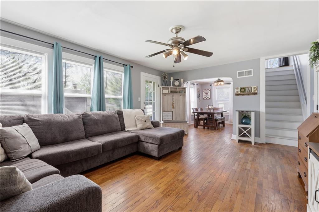 Perched at the top of a hill on a spacious lot, this charming Kansas City home offers the perfect blend of character and convenience. Freshly painted and move-in ready, the main living area features beautiful hardwood floors that add warmth and timeless appeal. Enjoy morning coffee on the inviting front porch, or unwind in the evening around the outdoor fire pit. Inside, you’ll find three bedrooms and two bathrooms, including a spacious upstairs primary suite designed for comfort and flexibility. This private retreat features a three-quarter bath, generous walk-in closet space, and an additional bonus room that is perfect for a home office, nursery, or creative space. The unfinished basement provides excellent additional storage space. Convenient highway access makes commuting a breeze while keeping you close to everything Kansas City has to offer. This is a must see! Schedule your showing now!