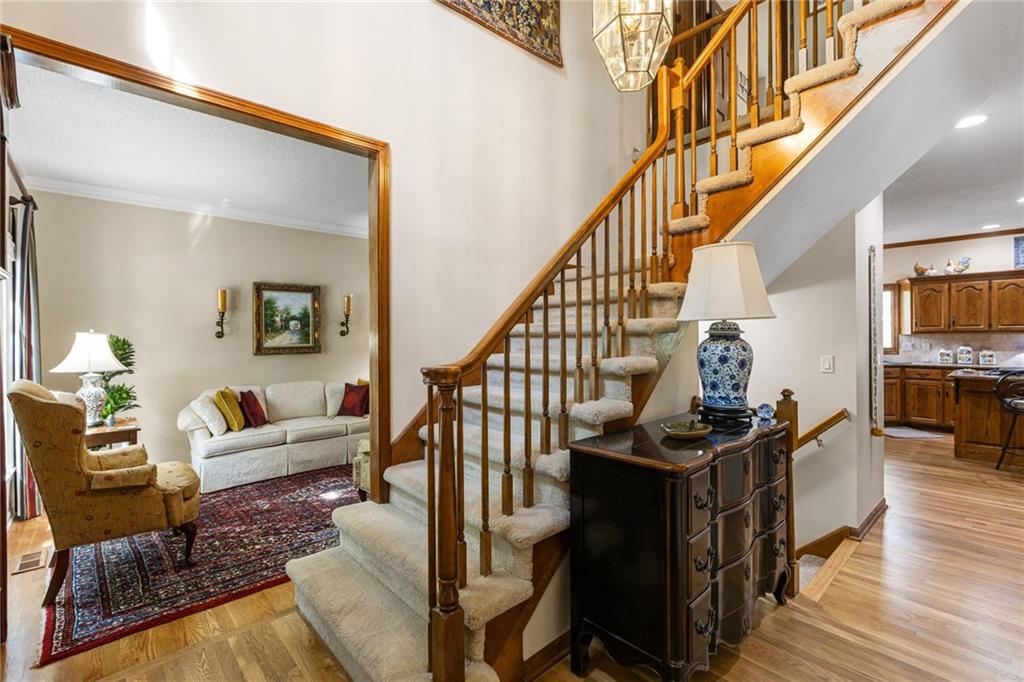 Discover the perfect blend of timeless elegance and modern peace of mind in this Carriage Crossing two-story, perfectly situated on a quiet cul-de-sac in one of Leawood’s premier subdivisions. From the moment you arrive, the meticulous maintenance and superior curb appeal are evident, featuring high-end James Hardie siding, newer windows, a newer roof with high impact shingles and a newer high-efficiency HVAC system, ensuring comfort and durability for years to come. Step inside to find an exceptionally inviting and welcoming floor plan that flows naturally from one living space to the next, making it ideal for both lively entertaining and cozy everyday moments. The heart of the home is designed for connection, offering a layout that feels both grand and intimate. Upstairs, the master suite serves as a true private sanctuary, boasting a spectacular, completely renovated bathroom that rivals a luxury spa with its tasteful finishes and thoughtful design. With four spacious bedrooms, three full baths, and two convenient half baths, there is room for everyone to thrive. Located in a top-tier, award-winning school district and surrounded by the best shopping and dining Leawood has to offer, this home is a rare find that combines "big-ticket" mechanical updates with sophisticated interior style. Don’t miss your chance to own a meticulously cared-for gem in one of the area’s most sought-after neighborhoods.