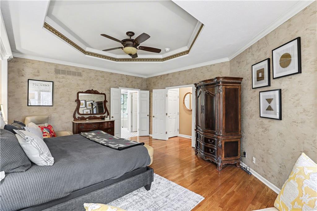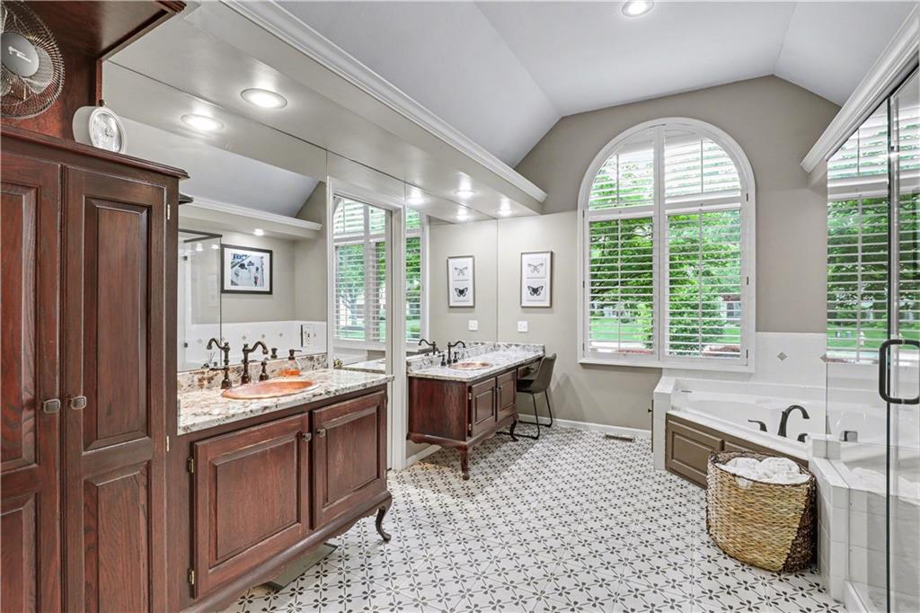 Welcome to this stunning 1.5-story residence nestled in the prestigious Lakewood Shores community, where luxury living meets an unmatched lifestyle. Boasting just under 5,500 square feet, this beautifully maintained home offers 4 bedrooms, 4 full baths, 1 half bath, a 3-car garage, and a fully finished lower level—all set on a beautifully landscaped lot with a spacious patio perfect for outdoor entertaining. From the moment you step inside, you’re greeted by soaring ceilings, dramatic floor-to-ceiling windows, and a grand staircase that sets the tone for the elegance throughout. The expansive living room features a gas fireplace, custom built-ins, and flows seamlessly into the formal dining space. At the front of the home, a private office or sitting room provides a quiet retreat. The updated kitchen is a true showstopper, complete with granite countertops, a center island, gas cooktop, stainless steel appliances, abundant cabinetry, and additional built-ins. The kitchen opens into the hearth room with a second fireplace and casual dining area. Perfect for entertaining! Step outside to the generous patio and enjoy peaceful views of the beautifully maintained backyard. Mudroom and laundry area just off the kitchen. The main-level primary suite is a luxurious retreat, offering a large walk-in closet and a beautifully updated spa-like bath featuring dual vanities, a soaking tub, separate shower, and private water closet. Upstairs, you’ll find three spacious bedrooms—all with walk-in closets—and two full bathrooms. The finished lower level is an entertainer’s dream, featuring a wet bar, full bath, game area, fitness room, office space, family room, and an abundance of storage. Enjoy the incredible amenities that Lakewood community has to offer, including two scenic lakes, swimming beach, pools, tennis and pickleball courts, a golf course, walking trails, and a vibrant calendar of community events. This is more than just a home—it’s a lifestyle.