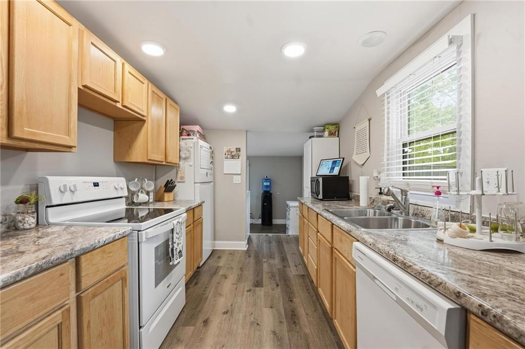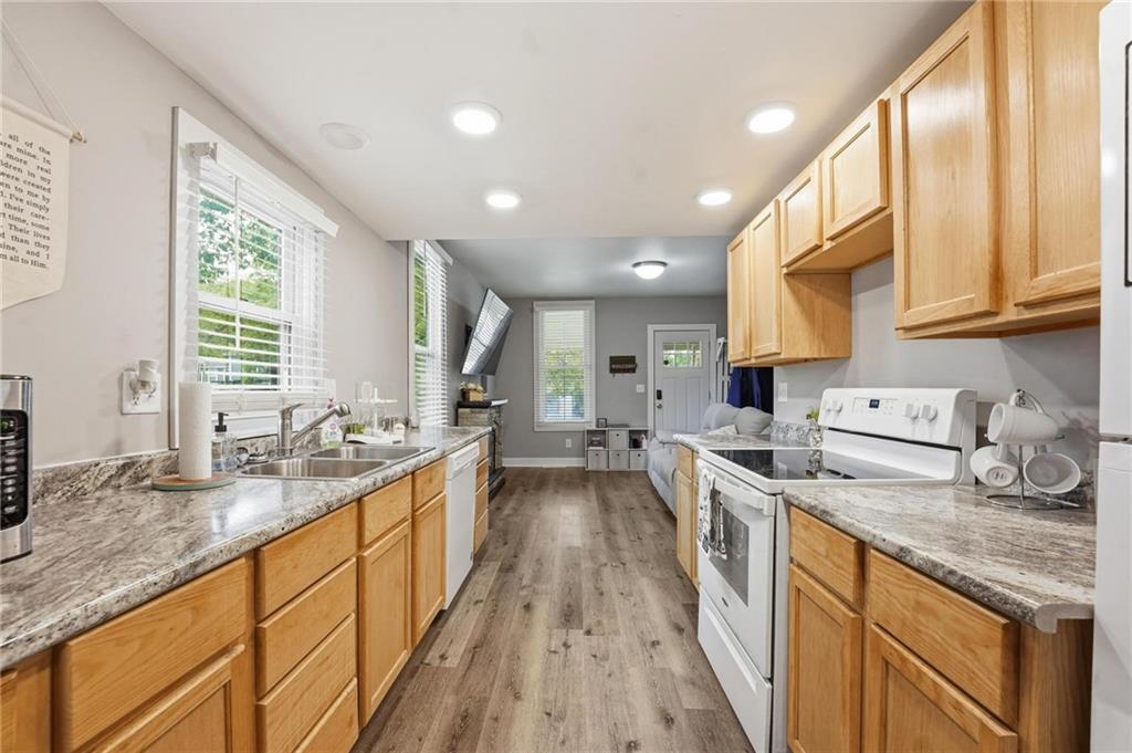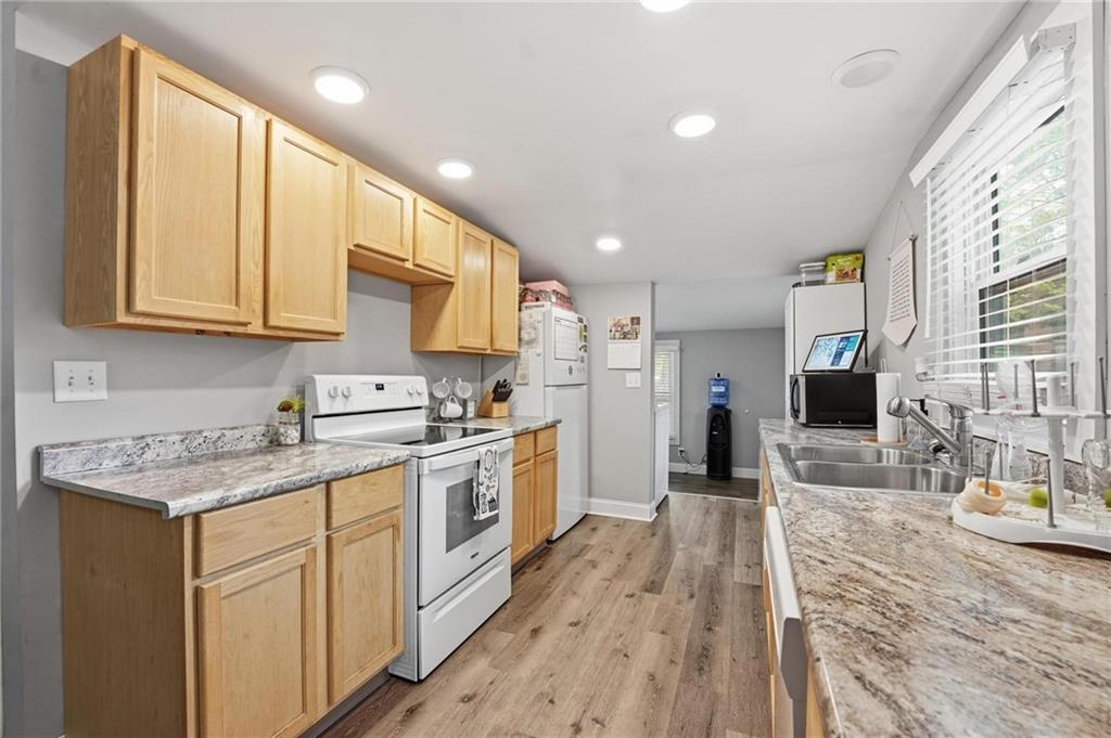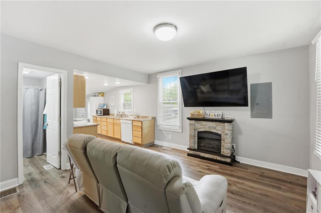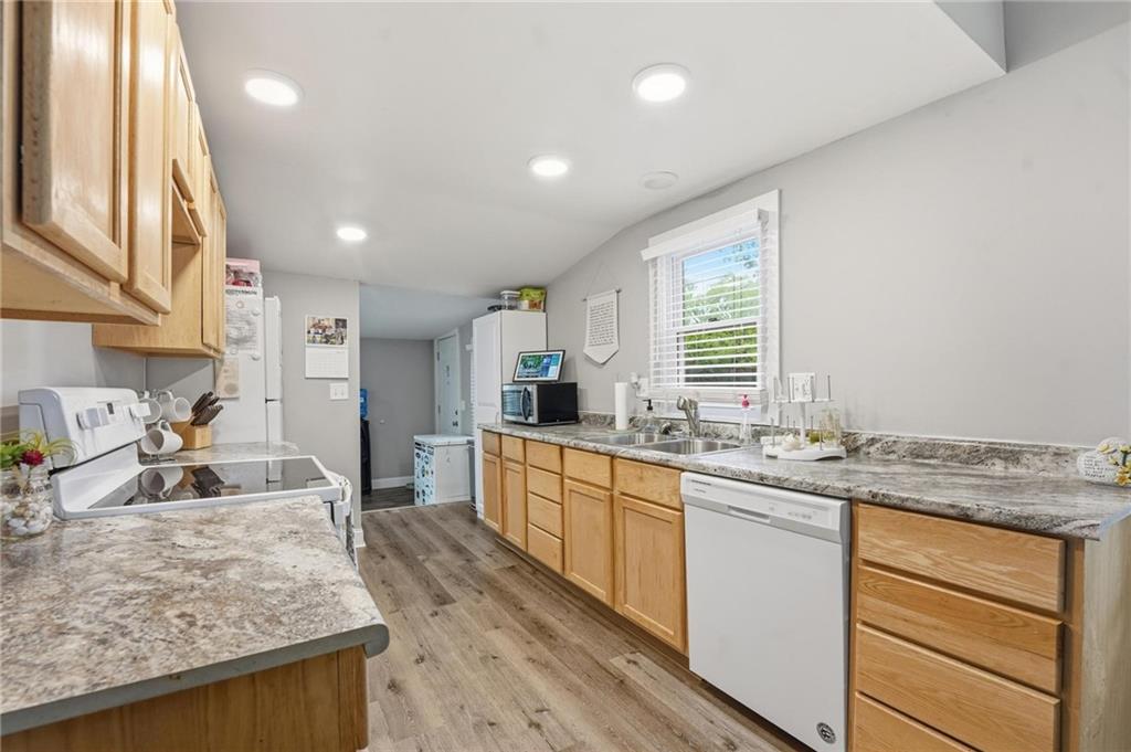 Welcome home to this adorable, updated home in the heart of Olathe! This great home has been updated from head to toe! Sellers have just replaced the flooring on the entire main level. The home has newer exterior paint and interior paint. The light, bright kitchen has newer cabinets and plenty of counter space. There are two bedrooms on the main level. Sellers converted a room to a bedroom. It can easily be converted back into an extra living space, office, game/media room, or formal living room! Two additional bedrooms are on the second level. A 6 foot privacy fence has been added to the HUGE backyard (almost 1/2 acre!) There is also a spacious patio area in the back. Many items are staying with the home. Including: refrigerator, backyard patio furniture & umbrella, pantry cabinet, coat rack/shoe bench, storage cabinet in utility room, and twin bed frame! Nothing to do but move in!