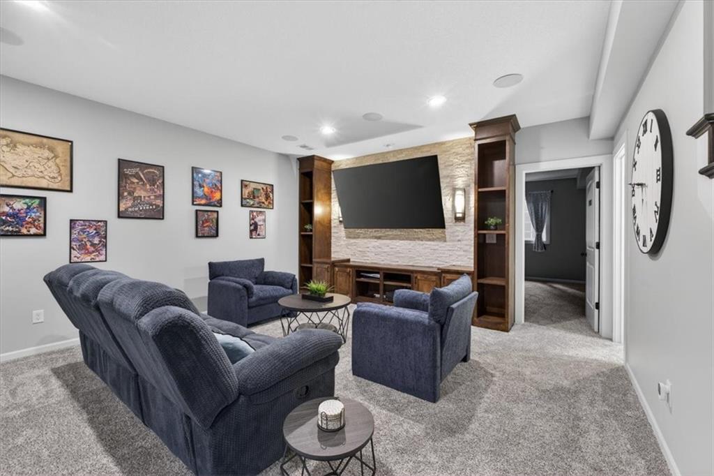 Welcome to 19104 W 100th Ter in the highly sought after Falcon Valley community, where thoughtful upgrades and quality craftsmanship shine throughout. From the inviting covered front porch to the extensive landscaping, retaining wall, wrought iron fence, and exterior downlighting, the curb appeal is unmatched on this large corner lot. Inside, abundant natural light highlights the open and engaging floor plan, featuring extensive trim, crown molding, wainscoting, and a beautifully trimmed fireplace in the family room that flows seamlessly into the kitchen with a large island, modern backsplash, gas stove, and walk-in pantry. The main-level primary suite offers a spacious retreat with a tray ceiling, spa-like bath with soaking tub and walk-in shower, and a large closet with direct access to the laundry room. You’ll love the versatile front den, which could also serve as a formal dining space or playroom, while the breakfast area and island seating provide ample room to gather. Upstairs includes three oversized bedrooms, all with walk-in closets. One bedroom features a private bath, while the others share a Jack and Jill bathroom. The finished basement expands your living space with built-ins, a wet bar with wine fridge, full bath, large fifth bedroom with egress window, PLUS an 85” TV and surround sound for a truly immersive experience AND a new pool/game table that will convey with the property. Step outside to a covered patio with ceiling fan, outdoor kitchen, and professionally landscaped yard designed for entertaining. Complete with a heated three-car garage featuring coated floors and an organized storage system, plus NEW HVAC system and newer carpet throughout, this property offers the perfect blend of style, space, and functionality in a highly desirable Lenexa location.