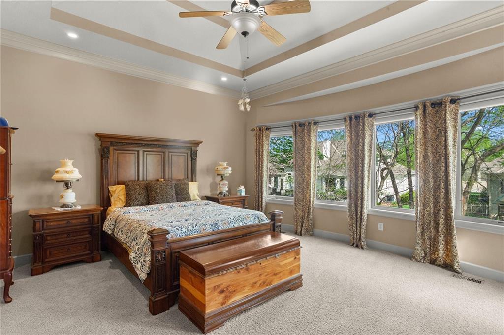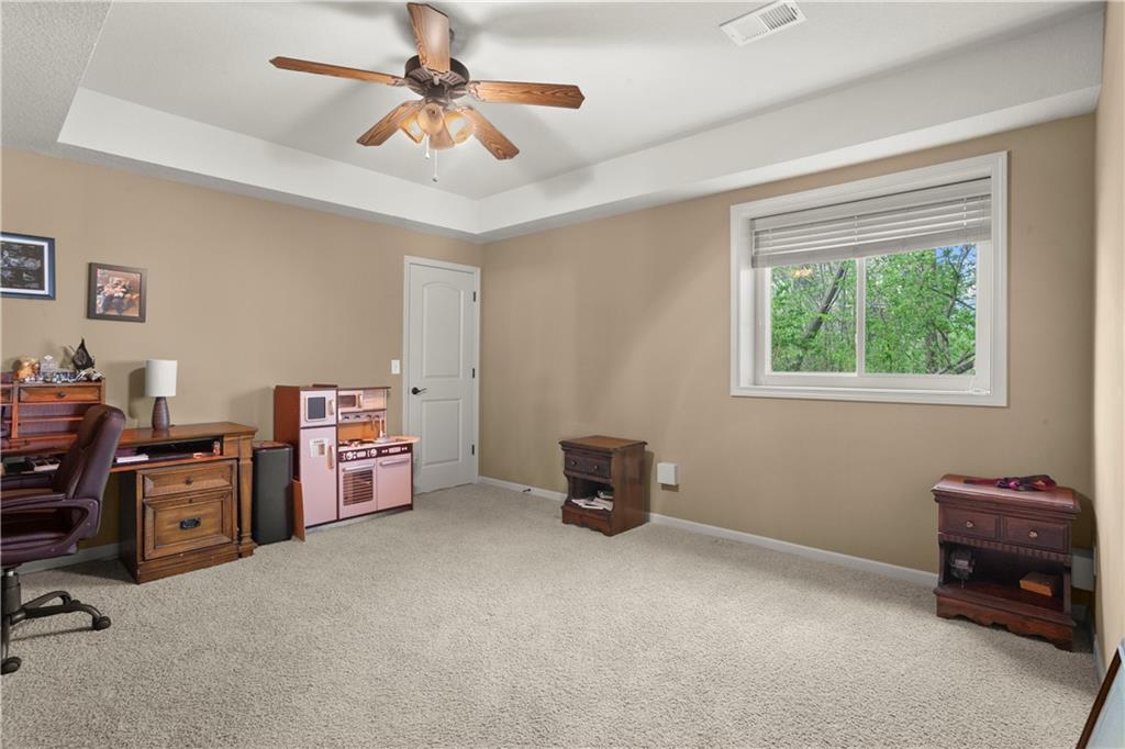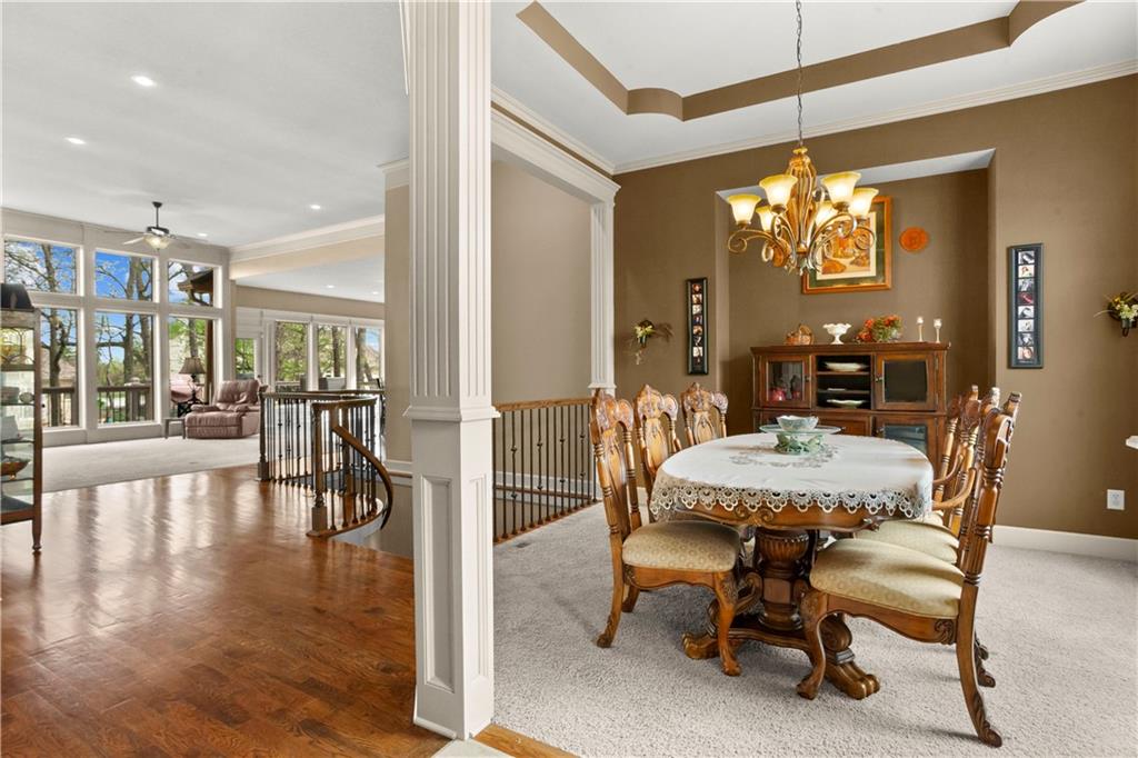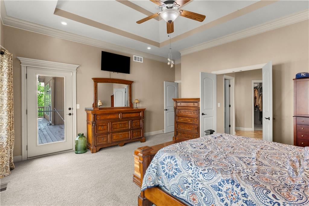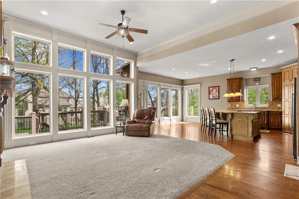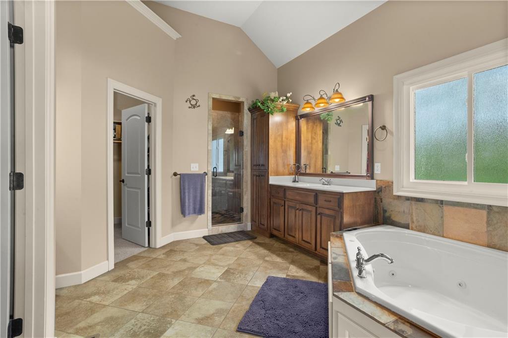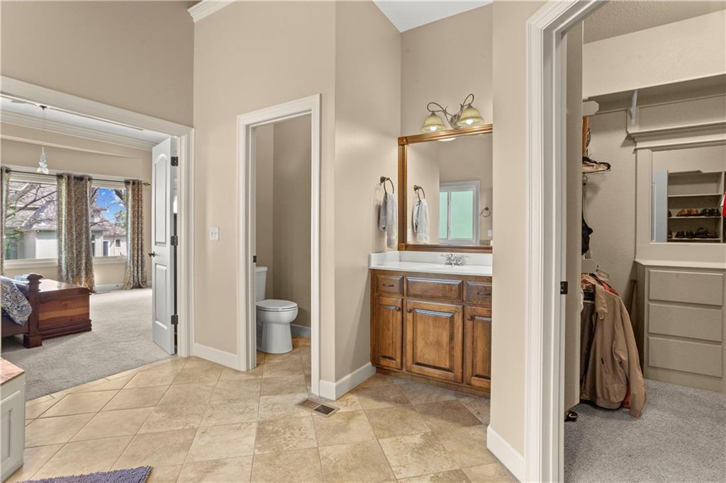 Step inside and feel the difference! This former model home delivers style, space, and thoughtful upgrades throughout with over 2,000 sq ft on the main level alone. Soaring 12-foot ceilings and elegant crown molding set the tone in the bright, inviting great room. The formal dining room offers the perfect setting for gatherings, while a comfortable eat-in kitchen area adds everyday convenience. The kitchen is a standout with solid wood cabinetry, a newer Bosch dishwasher, microwave, smart oven and an oversized pantry designed to handle everything from weeknight dinners to holiday hosting. The primary suite is a true retreat with direct access to the deck, perfect for morning coffee or evening unwinding. The primary bath features split vanities, a jetted tub and a double-headed shower for a spa-like feel at home. The main level also includes another well-appointed bedroom, offering flexibility for guests, an office, or multi-generational living. The lower level expands your living space with a large open area ideal for entertaining or relaxing, complete with a wet bar, two additional bedrooms and a full bath. Major updates offer peace of mind, including a concrete tile roof, newer exterior paint, and HVAC system. A sprinkler system keeps the exterior looking its best with minimal effort. Plenty of extras, plenty of space—this one checks all the boxes!
