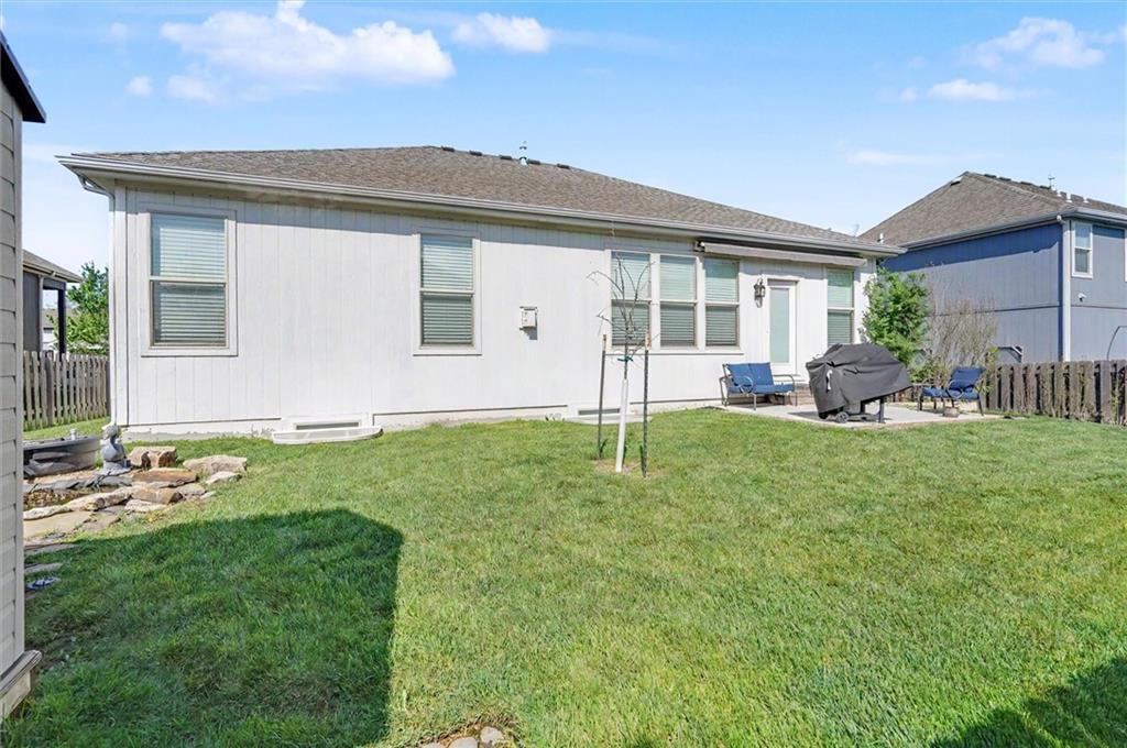 Welcome home to this beautifully maintained 4 bedroom, 3 bathroom ranch home offering the perfect blend of comfort, style, and convenience. An open concept space filled with natural light, showcasing stunning finishes and a seamless flow. The spacious kitchen opens to the main living area, creating a warm and inviting atmosphere. The primary suite offers a private retreat, while the additional bedroom on the main level provides flexibility. Downstairs, the finished basement expands your living space with a large open area, 2 additional bedrooms, 1 bath and unfinished storage space that lines the basement. Outside, enjoy your own backyard oasis complete with a charming koi pond, storage shed, and plenty of room to relax or entertain. The 3-car garage offers ample space for vehicles, tools, and storage. Conveniently located near K-10 and local amenities, this home combines peaceful living with easy access to shopping, dining, and commuting. A must-see!