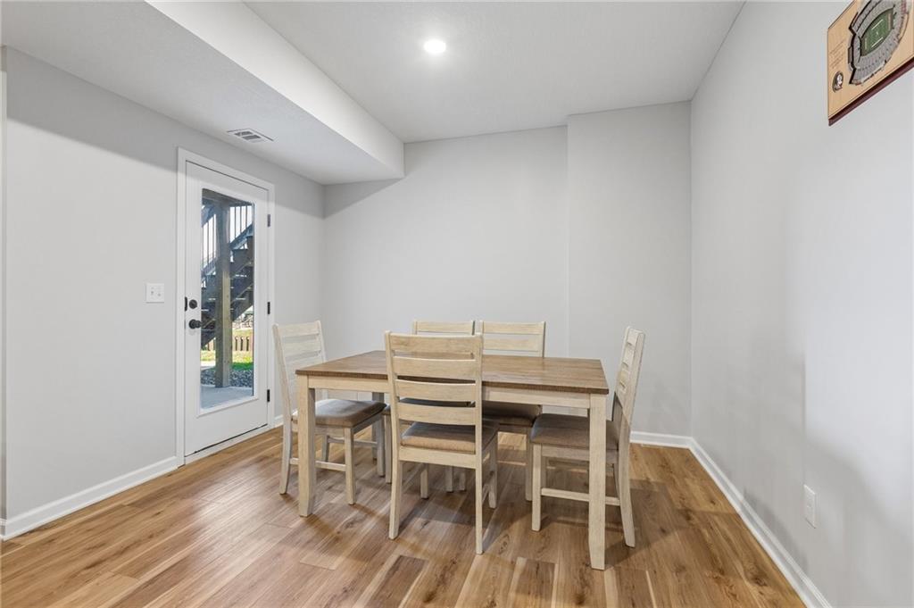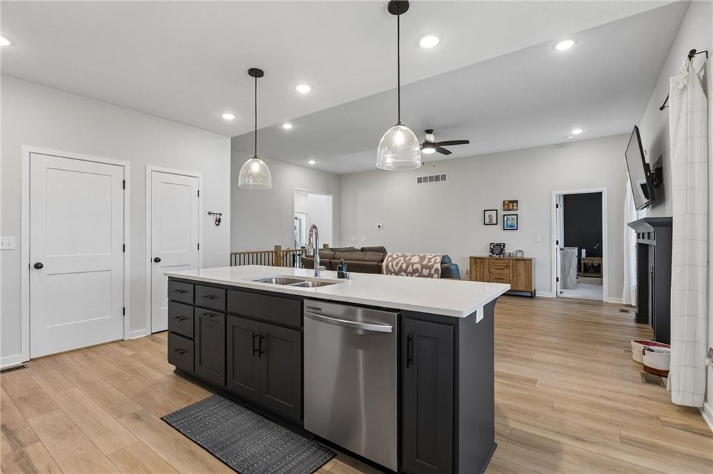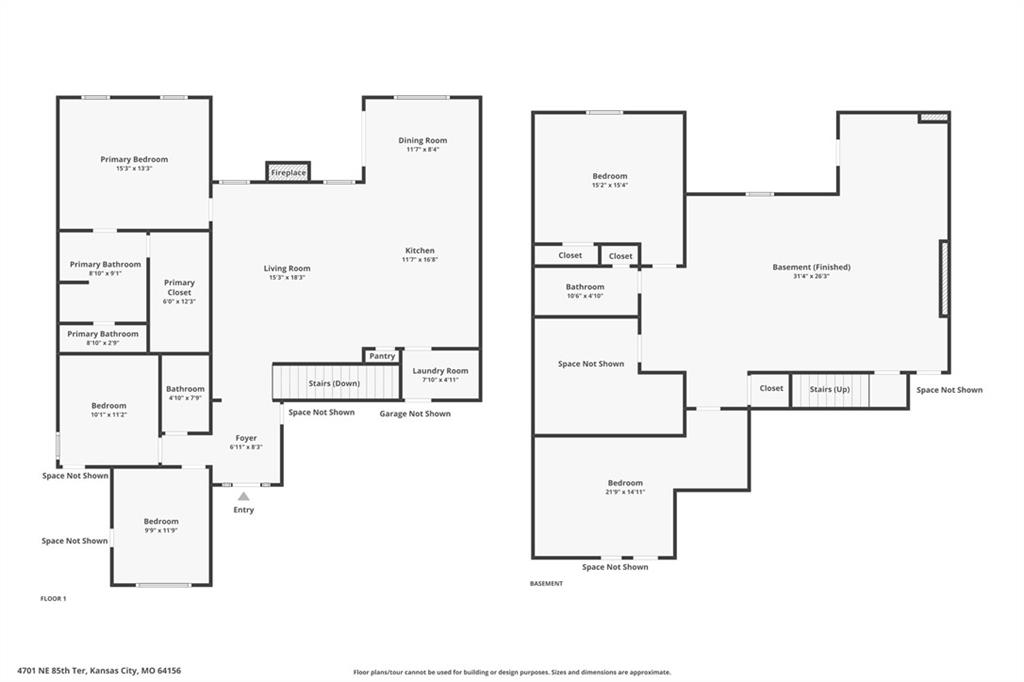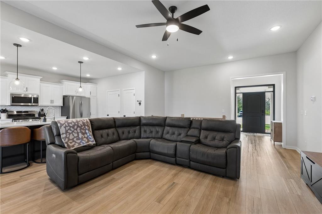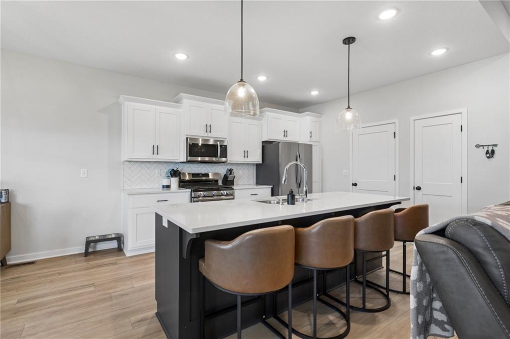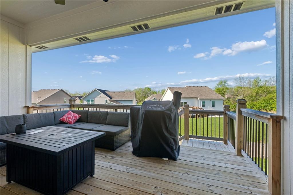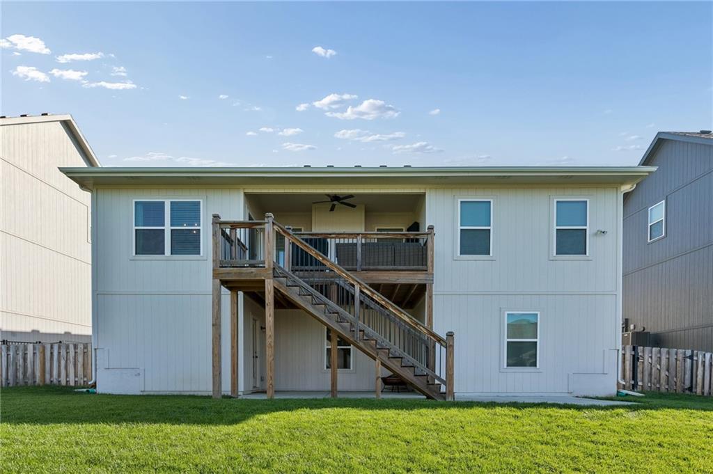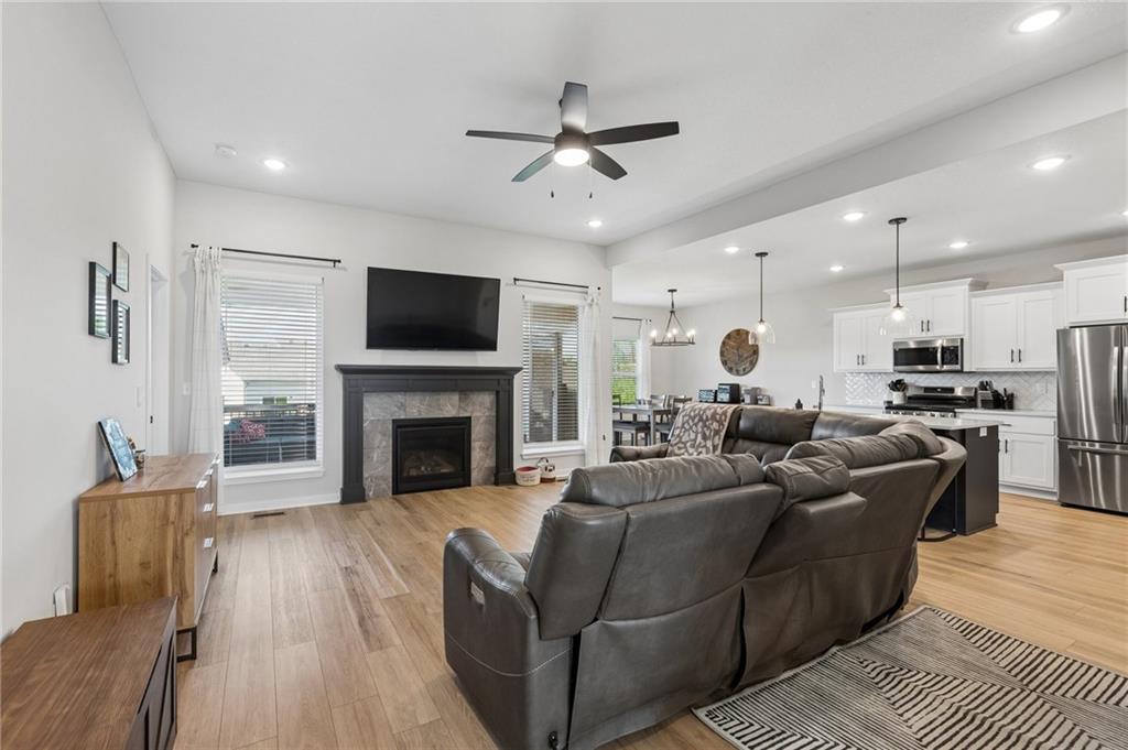 Gorgeous home in a sought-after Northland neighborhood! 4 Bedrooms / 3 Baths + 5th Non-Conforming Bedroom – perfect for office, gym, or guest space Open floor plan with gleaming hardwood floors and vaulted ceilings Two fireplaces – one in living room, one in family room Modern kitchen with quartz countertops, stainless steel appliances, eat-in dining, and large pantry Spacious primary suite with walk-in closet and double vanities Finished basement with family/rec room, full bath, and bedroom and 5th non-conforming bedroom Covered deck overlooks beautifully maintained fenced yard Convenient access to highways, shopping, and top-rated North Kansas City schools Move-in ready with space for everyone to spread out and enjoy!