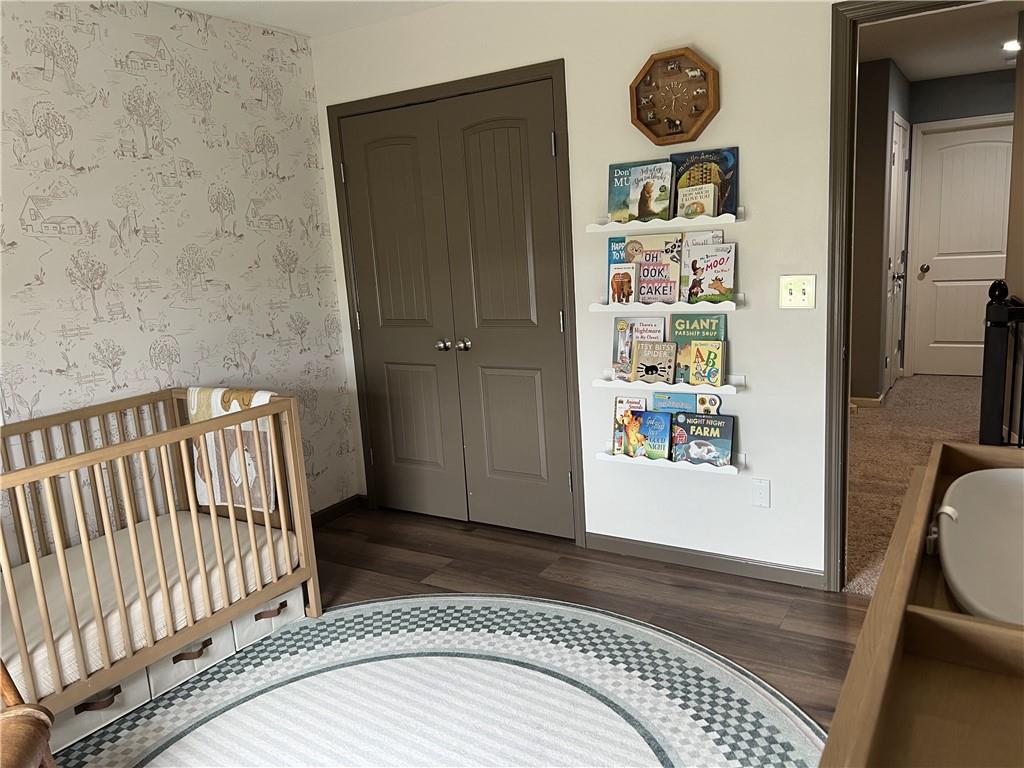 2 story on corner lot with tall wood fence and screened patio. Large covered front porch. Stacked stone trim. 3 car garage. Open main floor living with wood flooring. Kitchen has granite counters, an island, pantry and access to fenced backyard. 4 bedrooms, 2 baths and laundry room on 2nd floor. Primary bedroom features large walkin closet and en suite with jetted tub, double sinks and shower with bench. Unfinished basement with 2 egress windows. Private backyard has tall fence, firepit, patio with screened and unscreened area.