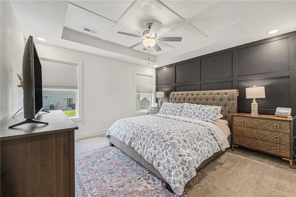 Low-maintenance living in the heart of Parkville. This meticulously kept home offers 3-bedroom and 2.5 bathrooms. Step inside to discover a bright and airy open floor plan, perfect for entertaining. Serene primary suite with custom geometric wall detailing, a large walk-in closet, and a private en-suite bath with dual vanities and elevated finishes and quartz countertops.The sleek kitchen features stainless steel appliances, tile floors, ample counter space, and a stylish island. The spacious living and dining area flows seamlessly to your back patio.