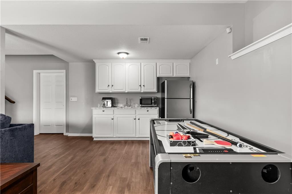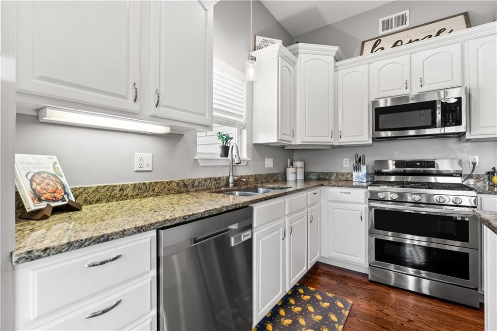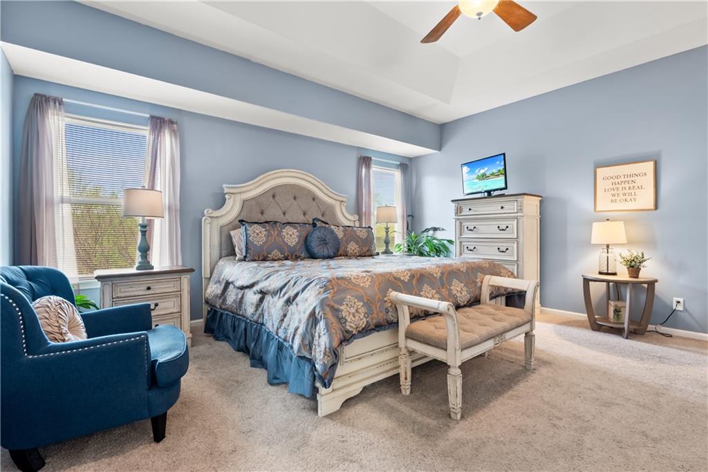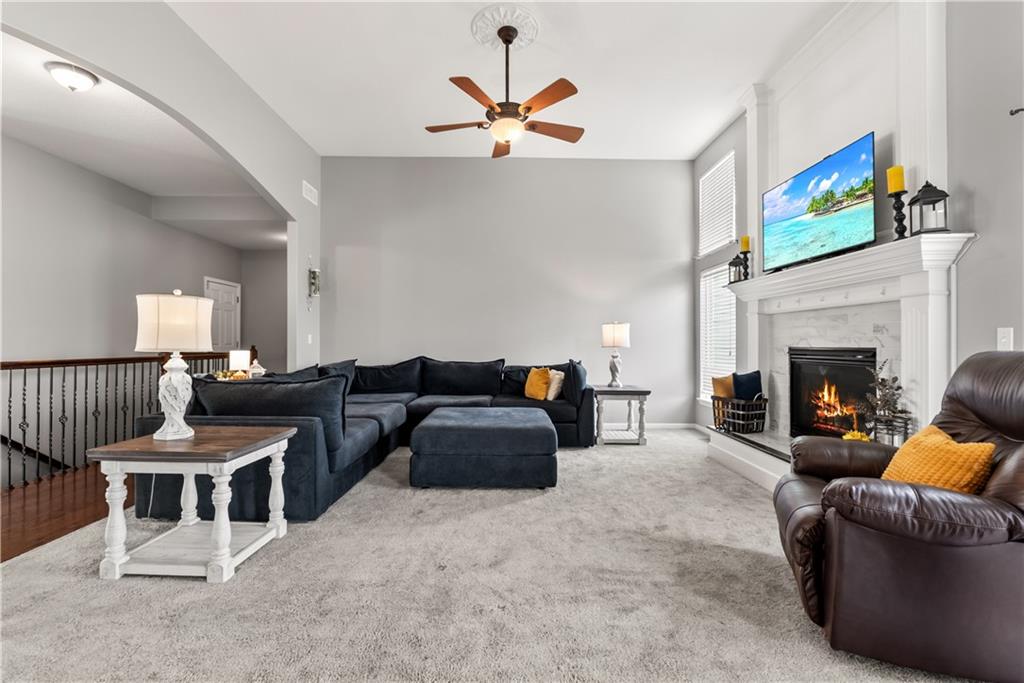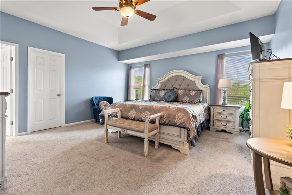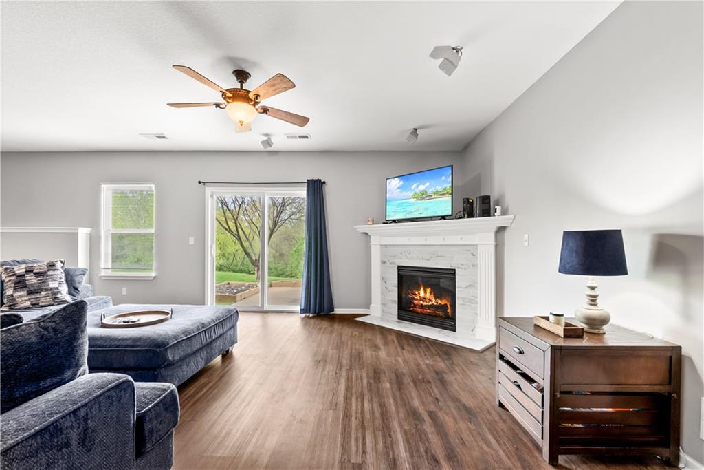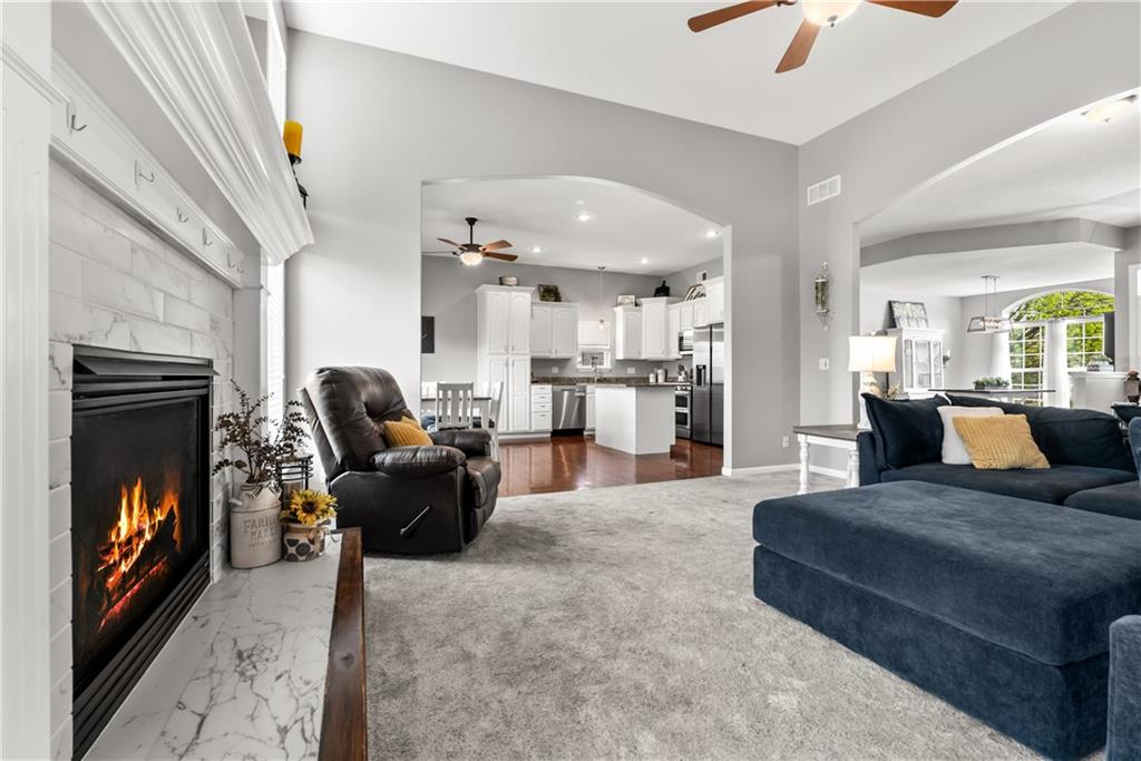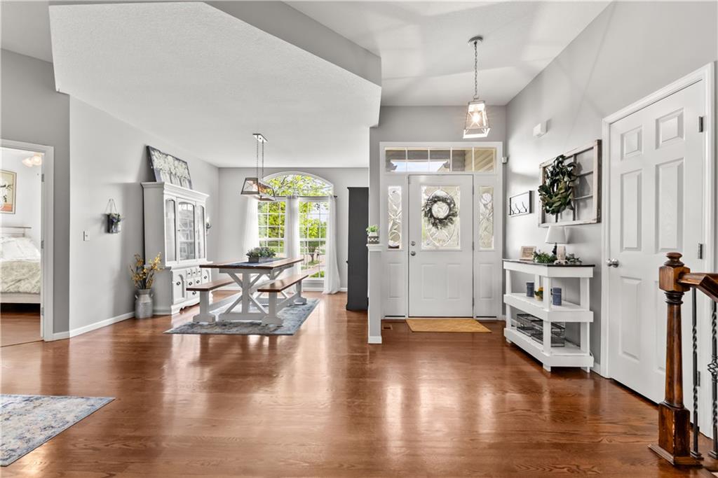Beautifully updated Reversed 1.5 story offering a spacious and functional layout! The main level features 2 bedrooms, including the private primary suite, thoughtfully positioned on opposite sides of the home for added privacy. The kitchen is a standout with an island and painted cabinets, opening to a warm and inviting greatroom with fireplace. A formal dining room provides additional space for entertaining. The covered deck overlooks the large private backyard backing to trees. The finished lower level expands your living space with two additional bedrooms, a full bath and large family room. Ample storage throughout, including excavated space under the garage. Located in the highly desirable Liberty School District-this home has it all!