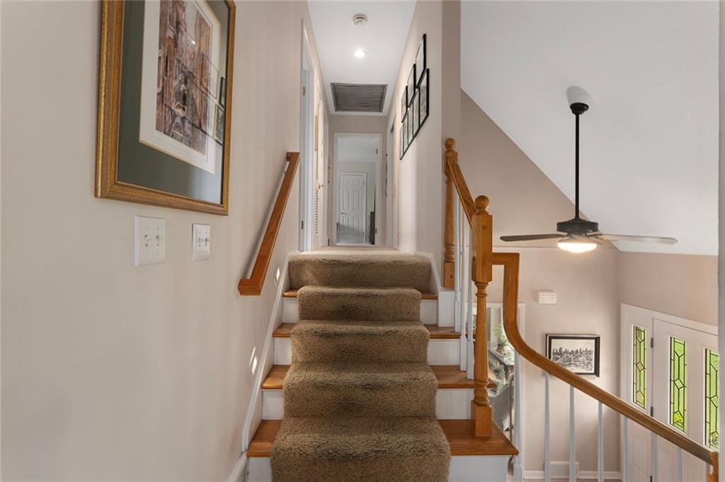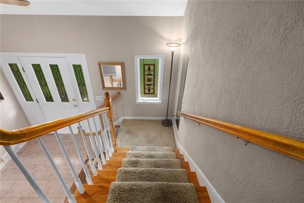 Spacious home in the coveted Bridlespur neighborhood. Newer TIMBERLINE roof and nice landscaping add curb appeal. The large foyer leads into the formal living room featuring a masonry fireplace and a wall of windows that welcome natural light. The kitchen is bright and cheery and equipped with painted cabinets, appliances, and a moveable island that stays with the property. A built-in desk and decorative glass cabinets complete the kitchen. The beautiful dining room offers plenty of space for entertaining, as well as access to the screened porch/deck area. The TREX deck has a ceiling fan/light for those warm summer nights ahead and overlooks so much green space just waiting to be used. Off the kitchen is a large laundry area with storage cabinets, a window, a ceiling fan, a light-up pantry, and an updated half bath. Upstairs are four spacious bedrooms! This two-level upstairs level is fantastic. The upper level has the master bedroom, a large room with an airy feel, spacious walk-in closet, a large en suite with ceiling fan and tub/shower combo. The second bedroom on this tier is also well-sized. The middle floor has two secondary bedrooms with fans and walk-in closets. The hall bath boasts a large, double-sink vanity, shower/tub, and window. The hallway provides great storage with a closet and a linen closet. The oversized garage has plenty of space and an exterior door to the backyard. With the basement, the space just keeps going! Every space has so much storage, both built-in and non-attached; all the shelving all stays. A CARPENTER’S PARADISE! Workbenches stay, and there are so many storage nooks everywhere! Add in a large sink and a nice, tiled half bath, and the potential is unlimited! The backyard is a blank canvas with a privacy wood fence and patio.