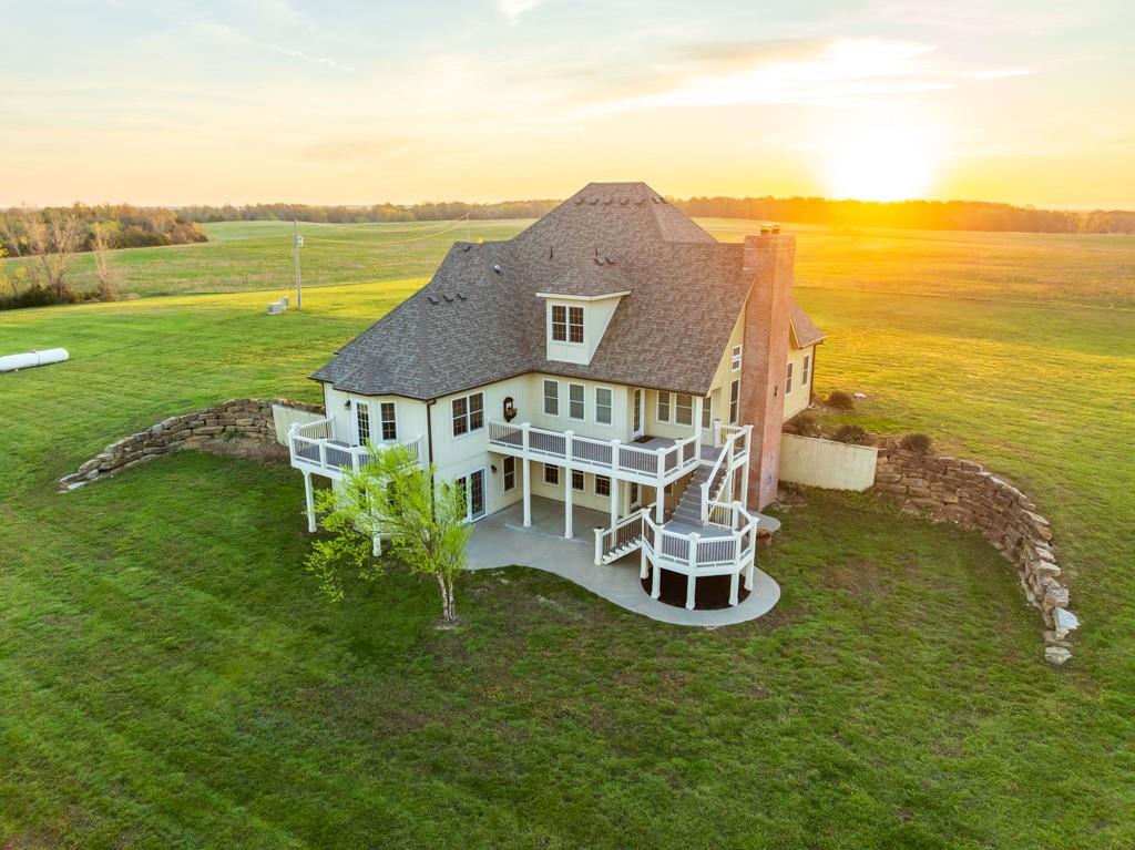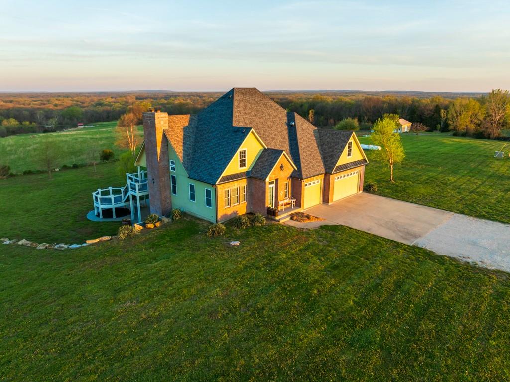 Escape the city life and live on 71.6 +/- acres that looks like a setting from a magazine. You will fall in love with the 1,000+ foot driveway access to the house that sits perfectly overlooking the property. Enjoy the sunrise and sunset views that literally go on for miles. The gently rolling land mainly consists of amazing pasture ground along with a 5 +/- acre patch of timber. It gets even better with a 2.5 +/- acre spring fed pond that is loaded with fish! The land offers it all and the real possibility of making it your very own country homestead. The 5 bedroom, 4.5 bathroom house was built in 2005 and offers plenty of space for the family and entertainment. It’s a must see! The main level features a living room with a fireplace, vaulted ceilings, formal dining room, oversized eat-in kitchen, and a massive master suite. The upstairs includes 4 spacious bedrooms, 2 bathrooms, and an additional large play or storage room. The full walkout basement offers plenty of storage space and is currently framed as a separate studio apartment style living quarters for guests or in-laws. Another awesome feature is the oversized 5 car garage offering plenty of room for vehicles, gear, or a workshop. Don’t forget about the incredible deck off the main level with amazing scenic views. Another bonus is the 30’x50’ outbuilding that will come in handy for storing farm equipment and other fun toys. This property checks all the boxes!