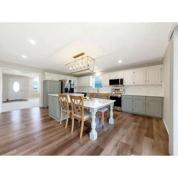 Completely move-in ready and beautifully remodeled, this all-brick home in Warrensburg checks every box! Offering 3 bedrooms, 2 bathrooms, and a spacious 2-car garage, this home features an open and inviting layout perfect for everyday living and entertaining. The stunning kitchen is the heart of the home, highlighted by a massive 8x5 quartz island that doubles as the perfect gathering space, along with new quartz countertops, updated cabinet hardware, modern lighting, fresh paint, and brand-new carpet throughout. The primary suite offers a true retreat with a gorgeous newly tiled walk-in shower, while the rest of the home has been thoughtfully updated from top to bottom. Enjoy peace of mind with all-electric utilities including the HVAC system and water heater. Step outside to a fully fenced backyard complete with a brand-new pergola—ideal for relaxing or hosting friends and family. Located in a great, active neighborhood, this home combines style, comfort, and convenience in one perfect package!