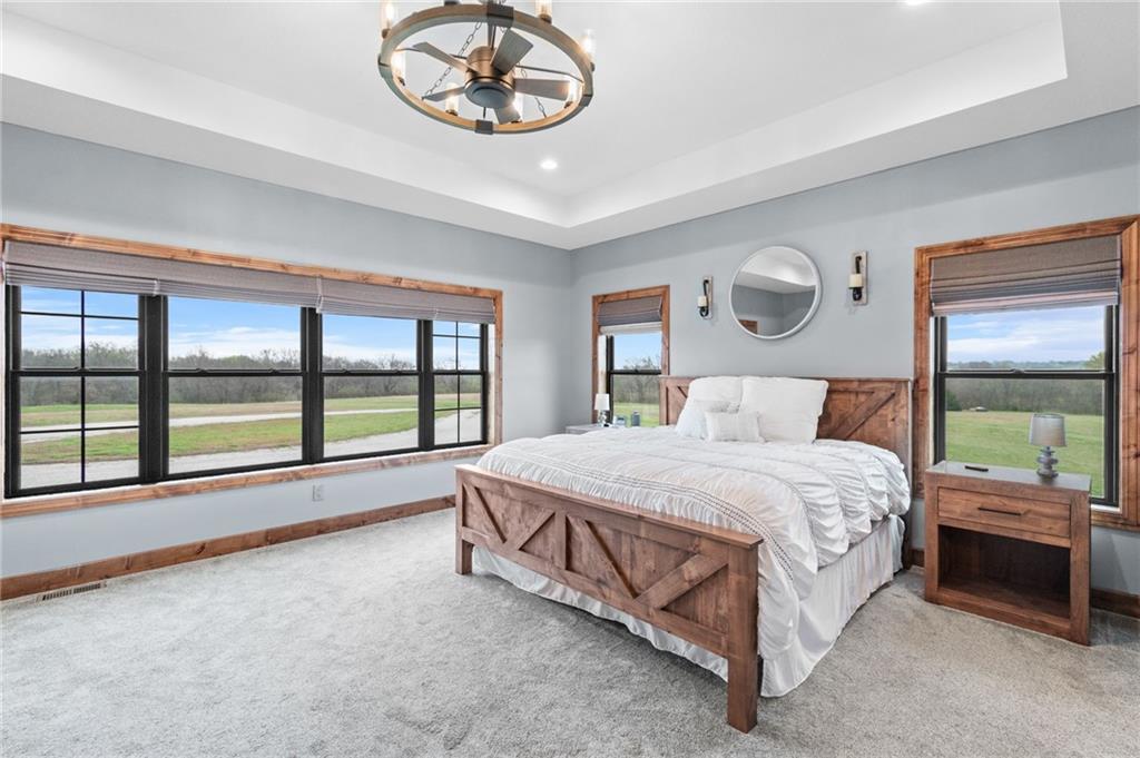 Luxury living meets premier hunting and income-producing land—this one-of-a-kind 189-acre estate offers an unmatched opportunity for the serious outdoorsman or anyone seeking a private rural retreat with the modern comforts this stunning home offers. Meticulously designed with 4,800 square feet of thoughtfully curated living space, where every detail reflects quality and intention. From the moment you step inside, soaring vaulted ceilings and an expansive great room create a striking first impression, seamlessly flowing into a custom chef’s kitchen featuring hand-built cabinetry, quartz countertops, and a spacious walk-in pantry. This home offers 5 bedrooms and 3.5 baths, including a timeless primary suite designed for comfort and relaxation. A fully finished walk-out basement with a wet bar provides the ideal space for entertaining guests or enjoying quiet evenings at home. Function meets convenience with an oversized 3-car attached garage, offering ample room for vehicles, storage, and weekend projects. A whole-house Generac generator ensures uninterrupted comfort and peace of mind, no matter the conditions. Step outside and experience what truly sets this property apart. The 189 acres offer a diverse landscape designed for both recreation and return. With abundant wildlife, this farm is a prime setup for deer and turkey hunting, giving you the chance to build your own trophy legacy right out your back door. A mix of tillable acreage and CRP ground provides consistent income potential while enhancing habitat and land value. Experience the serenity of country living without compromising luxury—this is a property you have to see to believe.