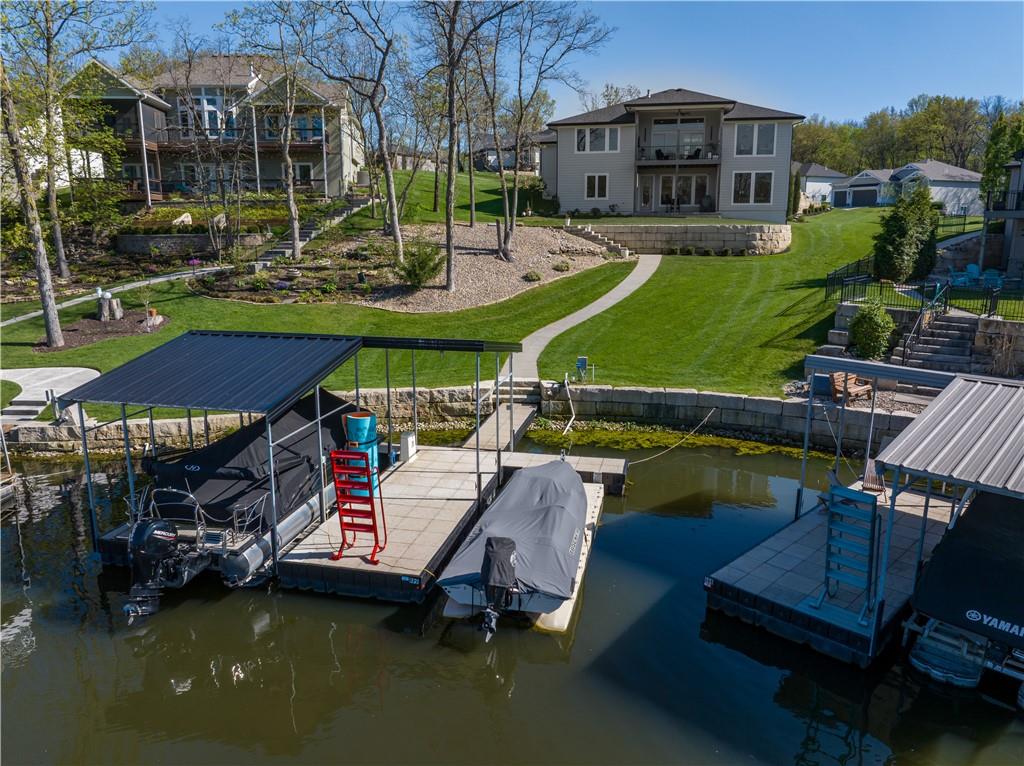 Stunning reverse 1.5 story lakefront home tucked away on a private cul-de-sac lot with awesome water views and direct lake access. This newer 4-bedroom, 3.5-bath home offers an open and spacious layout designed for both everyday living and entertaining. The kitchen is beautiful with custom cabinets, quartz countertops, & Stainless appliances. Enjoy private lake views from the main living areas and step out onto the covered deck to relax or take in the scenery. The finished walkout basement provides additional living space, bedrooms, and easy access to the backyard oasis. Beautifully maintained with extensive landscaping, irrigation system, and a sidewalk leading to your private dock for effortless days on the water. House is located in a cove so perfect for fishing, swimming, and floating with no boat traffic. A rare opportunity to own a move-in ready waterfront home with luxury features, privacy, and incredible outdoor living.