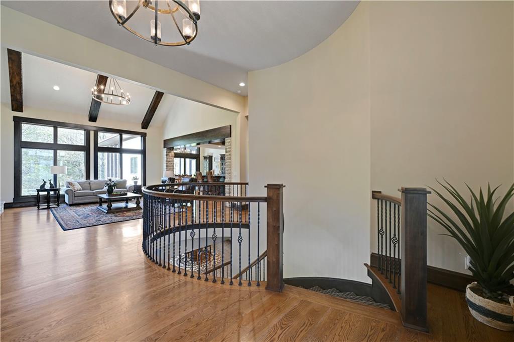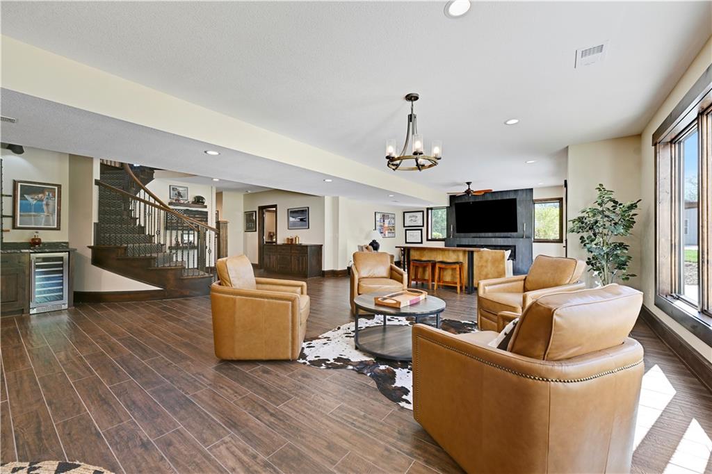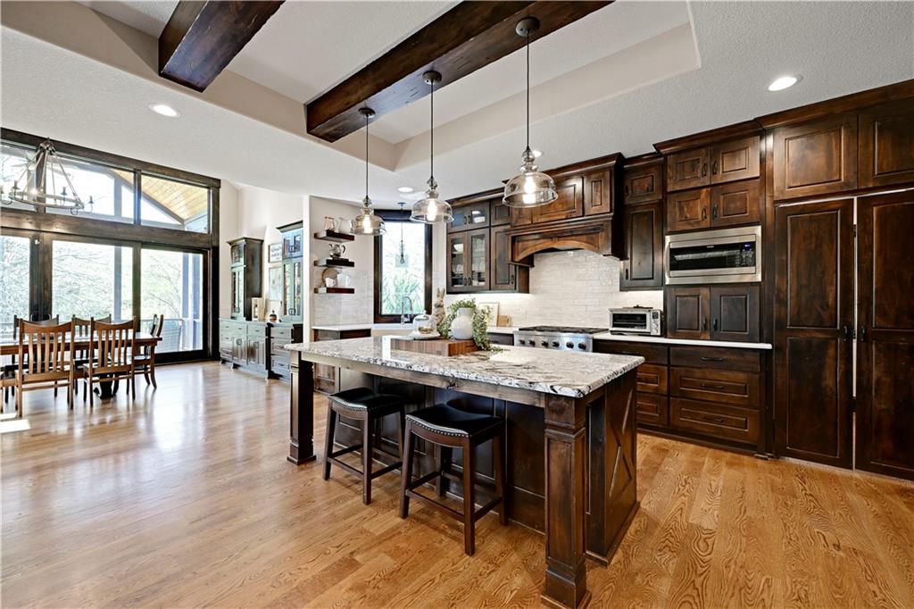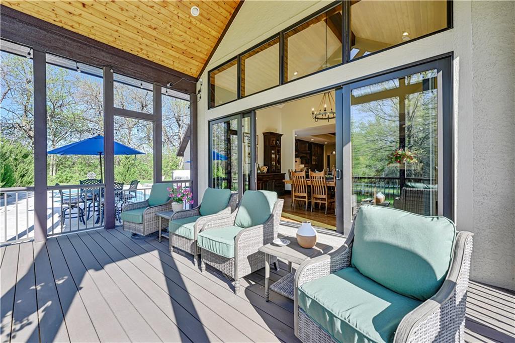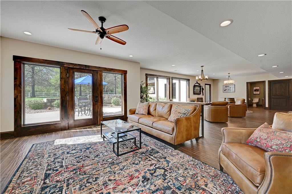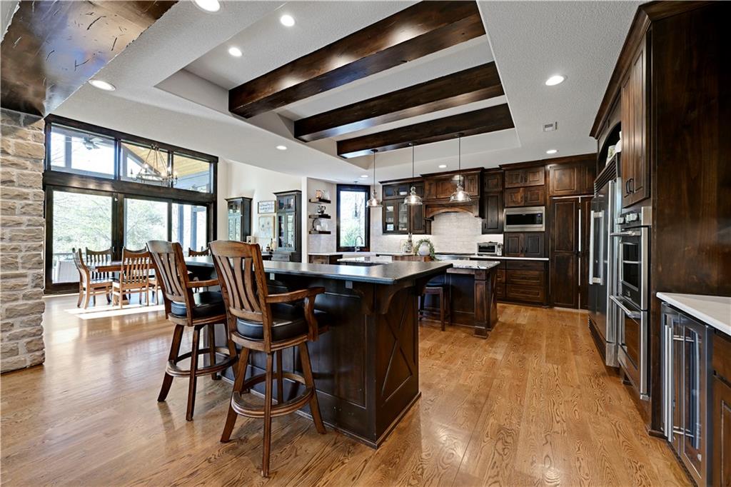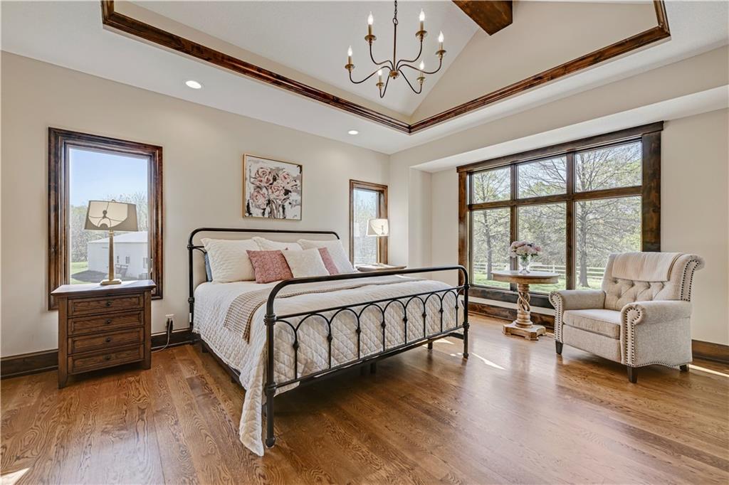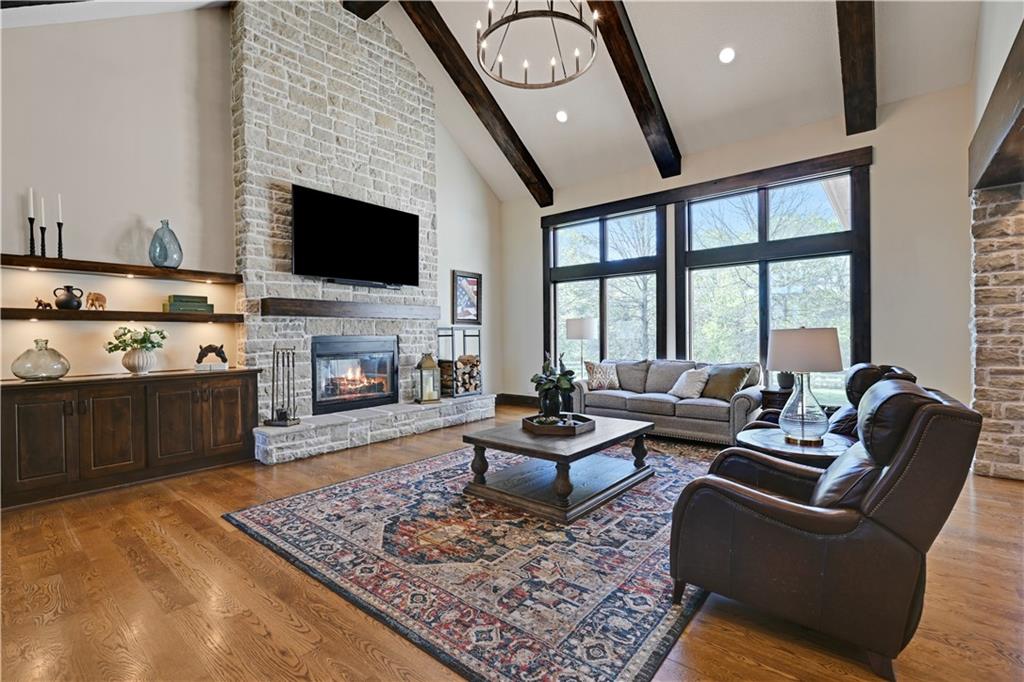 Welcome to this stunning custom reverse 1.5-story estate, perfectly situated on nearly 8 acres of picturesque land. Thoughtfully designed with both luxury and functionality in mind, this home offers an exceptional blend of refined interior spaces and resort-style outdoor living. The main level features a chef’s designer kitchen with high-end finishes and ample space for entertaining, flowing seamlessly into a breathtaking great room highlighted by soaring vaulted ceilings and striking wood beams. The primary suite is a true retreat, complete with a cozy fireplace and a spa-like atmosphere. A dedicated office with an attached full bath provides flexibility for work or guest accommodations. The finished lower level is ideal for entertaining or multi-generational living, boasting a spacious family/media room, multiple seating areas, a wet bar/kitchenette, two additional bedrooms, and two full bathrooms. Step outside to your private oasis, where you’ll find an incredible outdoor living area featuring a fully equipped outdoor kitchen, an in-ground pool, a covered deck, and an expansive patio—perfect for relaxing or hosting gatherings. An additional outbuilding adds versatility and storage options to this already impressive property. This rare offering combines privacy, luxury, and space—creating the perfect place to call home.