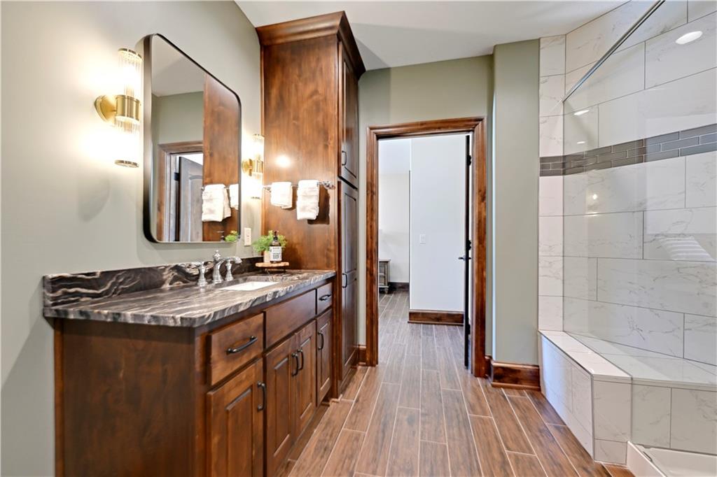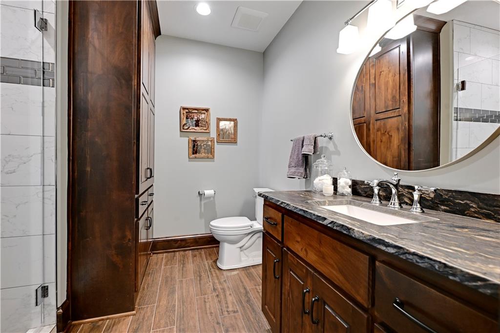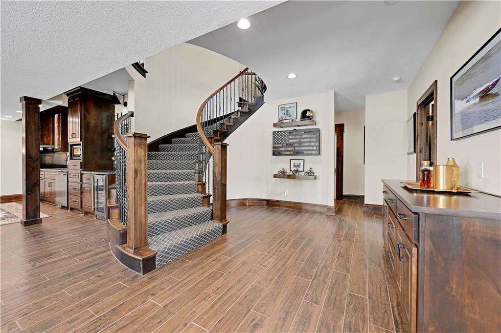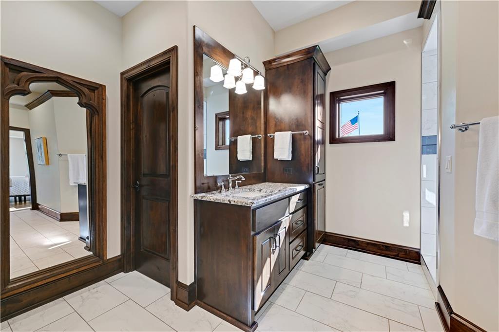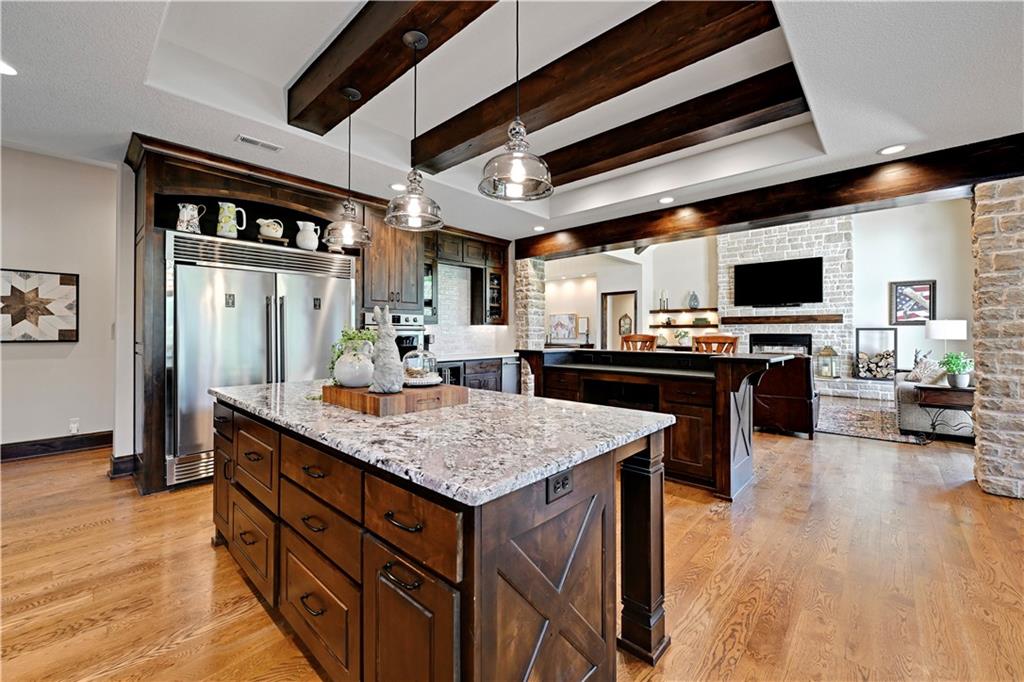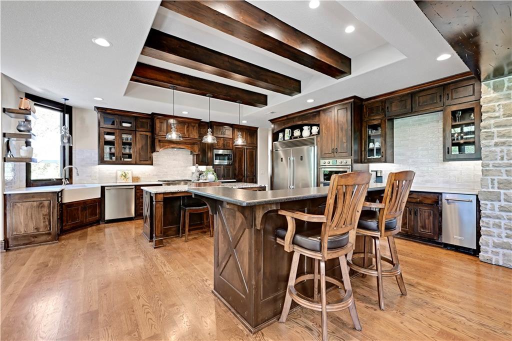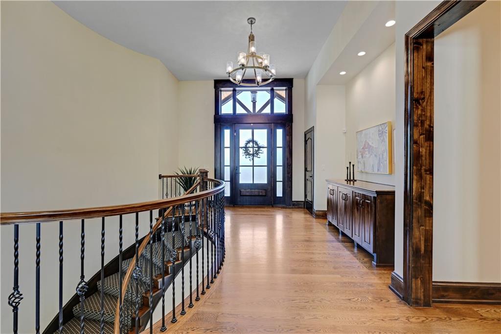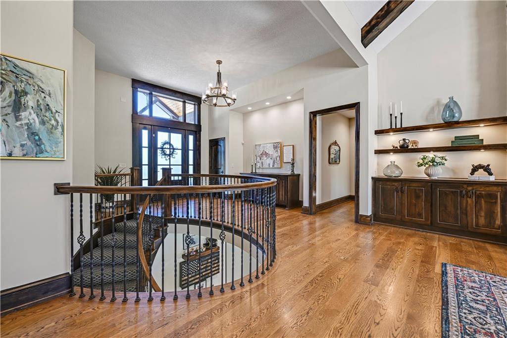 Welcome to this stunning custom reverse 1.5-story estate, perfectly situated on nearly 8 acres of picturesque land. Thoughtfully designed with both luxury and functionality in mind, this home offers an exceptional blend of refined interior spaces and resort-style outdoor living. The main level features a chef’s designer kitchen with high-end finishes and ample space for entertaining, flowing seamlessly into a breathtaking great room highlighted by soaring vaulted ceilings and striking wood beams. The primary suite is a true retreat, complete with a cozy fireplace and a spa-like atmosphere. A dedicated office with an attached full bath provides flexibility for work or guest accommodations. The finished lower level is ideal for entertaining or multi-generational living, boasting a spacious family/media room, multiple seating areas, a wet bar/kitchenette, two additional bedrooms, and two full bathrooms. Step outside to your private oasis, where you’ll find an incredible outdoor living area featuring a fully equipped outdoor kitchen, an in-ground pool, a covered deck, and an expansive patio—perfect for relaxing or hosting gatherings. An additional outbuilding adds versatility and storage options to this already impressive property. This rare offering combines privacy, luxury, and space—creating the perfect place to call home.