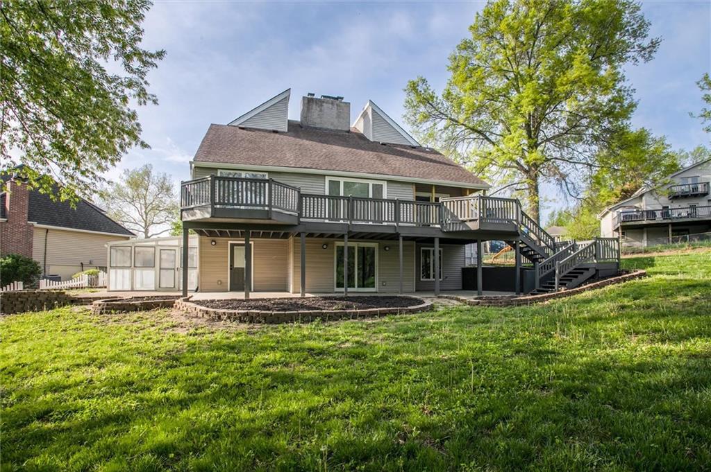 Fabulously modern and truly unique, this beautifully remodeled home is tucked into a family-friendly cul-de-sac in the Northland. A striking floor plan welcomes you with soaring ceilings and a dramatic exposed fireplace that extends to the second-story loft. This 1.5 story floorplan features the primary bedroom & bathroom on the main level, with all finishes updated throughout. The brand-new kitchen shines with stainless steel appliances, granite countertops, and a center island. Just off the kitchen, a generous mudroom offers convenient laundry and ample drop space for backpacks, shoes, and more. Upstairs, you’ll find three additional bedrooms and a full bathroom, with loft views below. The finished basement expands your living space with a fifth bedroom, a third full bathroom, a large family room with a second fireplace, and a versatile bonus room ideal for a playroom, home office, or fitness area. Screened in sunroom is perfect for relaxing or any plant lover. The large, private lot offers multiple outdoor living spaces- including a deck stretching the length of the house and two patios. Subdivision includes pool, tennis courts, pickleball, and clubhouse, and located within the highly regarded Staley School District.
