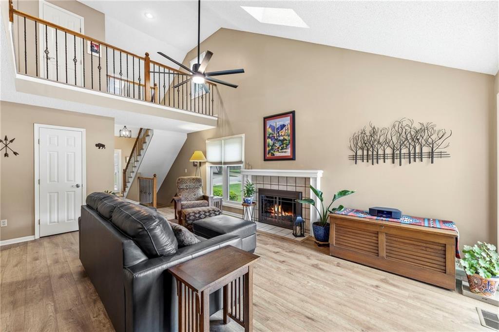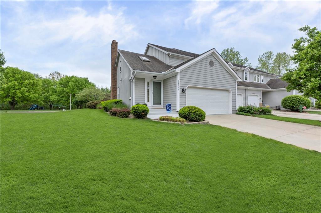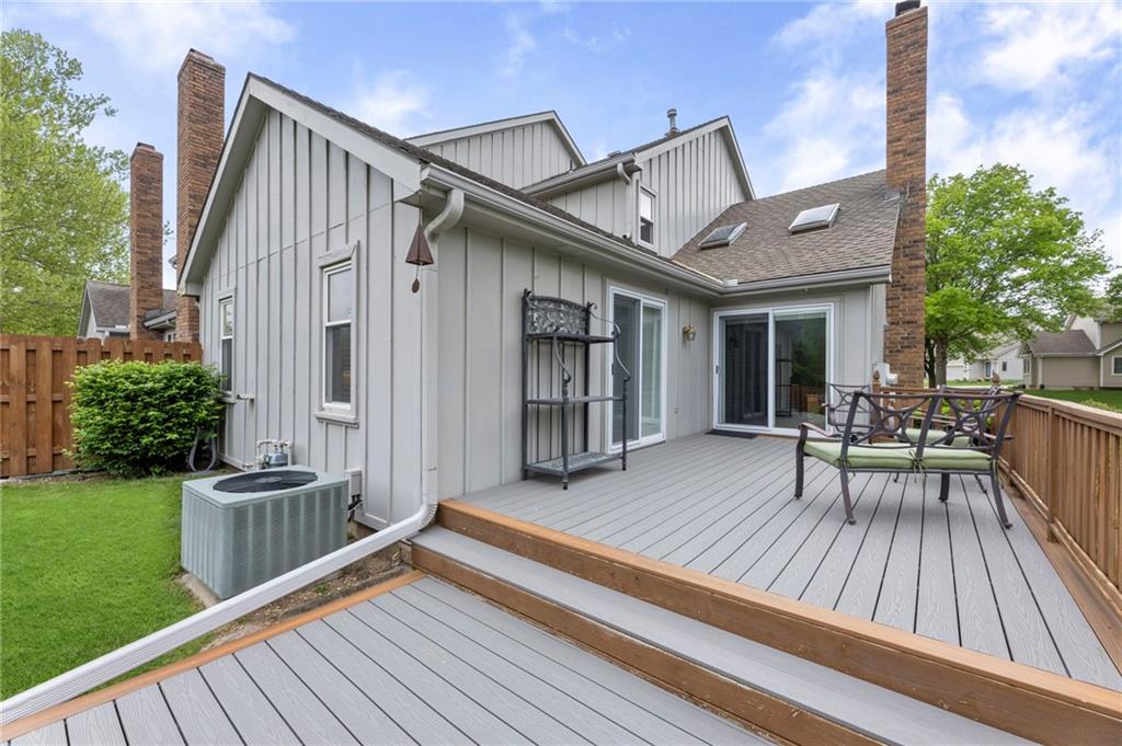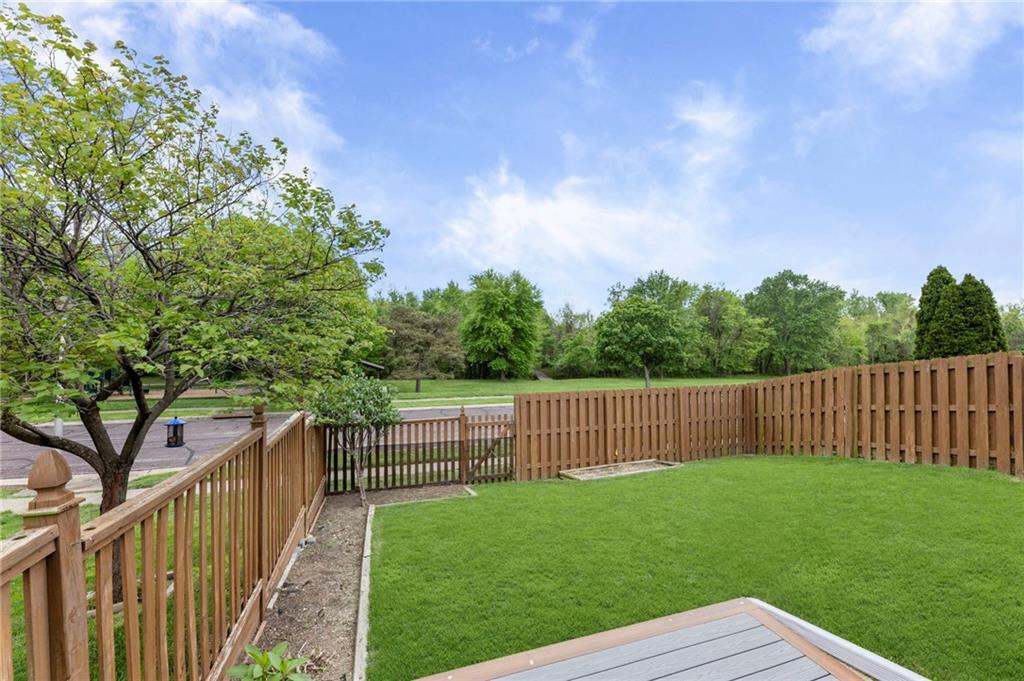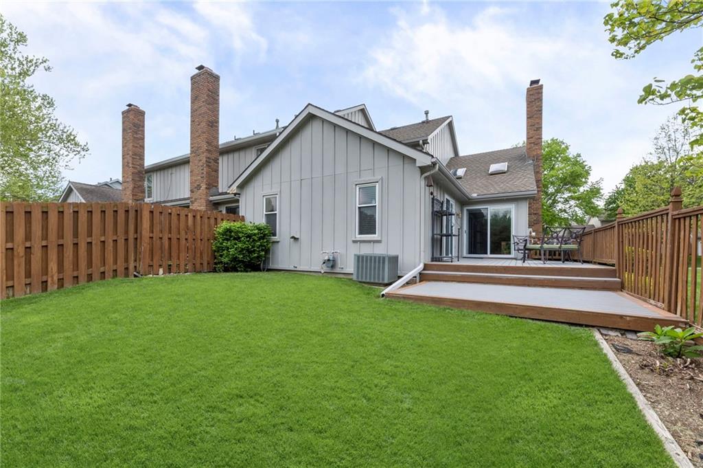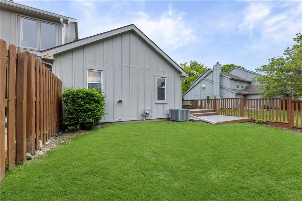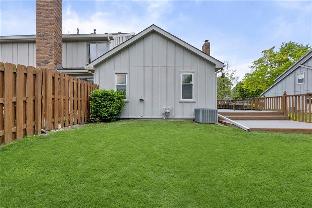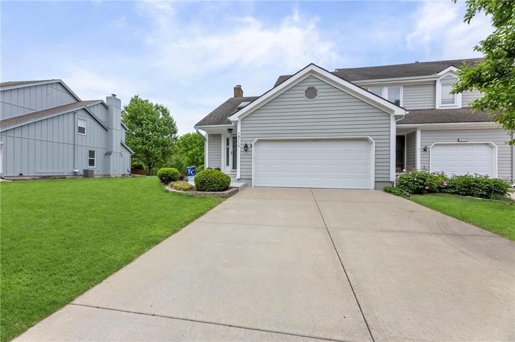 This maintenance-provided gem in the coveted Blue Valley School district combines comfort, convenience, and a truly desirable setting backing to Cross Creek Park and its scenic walking trails. A rare main-floor primary suite offers ease of living, complete with a relaxing whirlpool tub, while the fenced backyard and composite deck create the perfect space to unwind or entertain with a view. Lawn service will mow inside the fence if gate is unlocked! Inside, you’ll find gorgeous hardwood floors, soaring ceilings in the living room, and a stunning fireplace that anchors the space beautifully. The updated kitchen with modern countertops adds both style and functionality. Upstairs has two spacious bedrooms and a full bath, centered around a bright, open landing. The finished basement expands your living space with a dedicated office and built-in shelving—ideal for work or hobbies. Meticulously maintained and move-in ready, this home also includes a Platinum Home Warranty from Old Republic for added peace of mind.