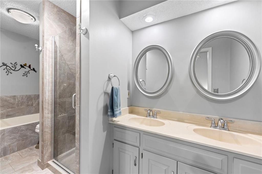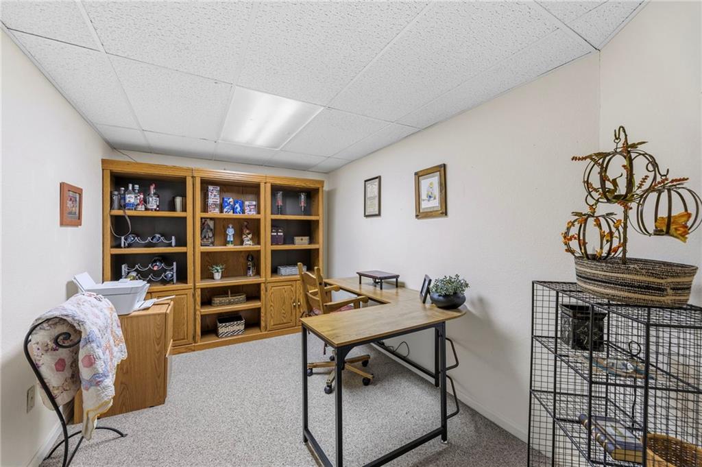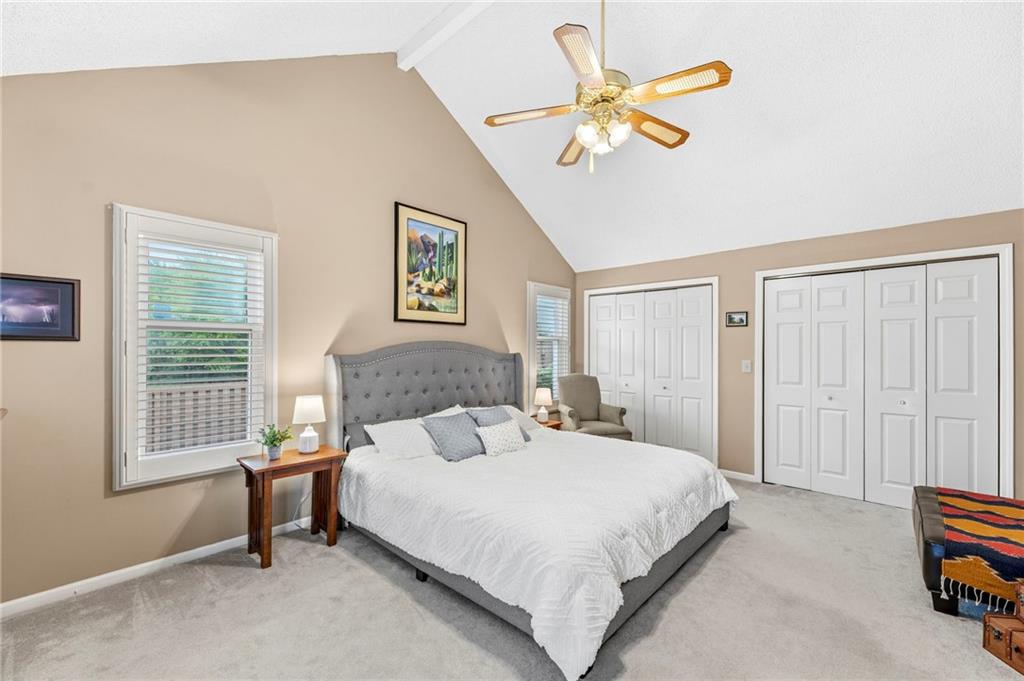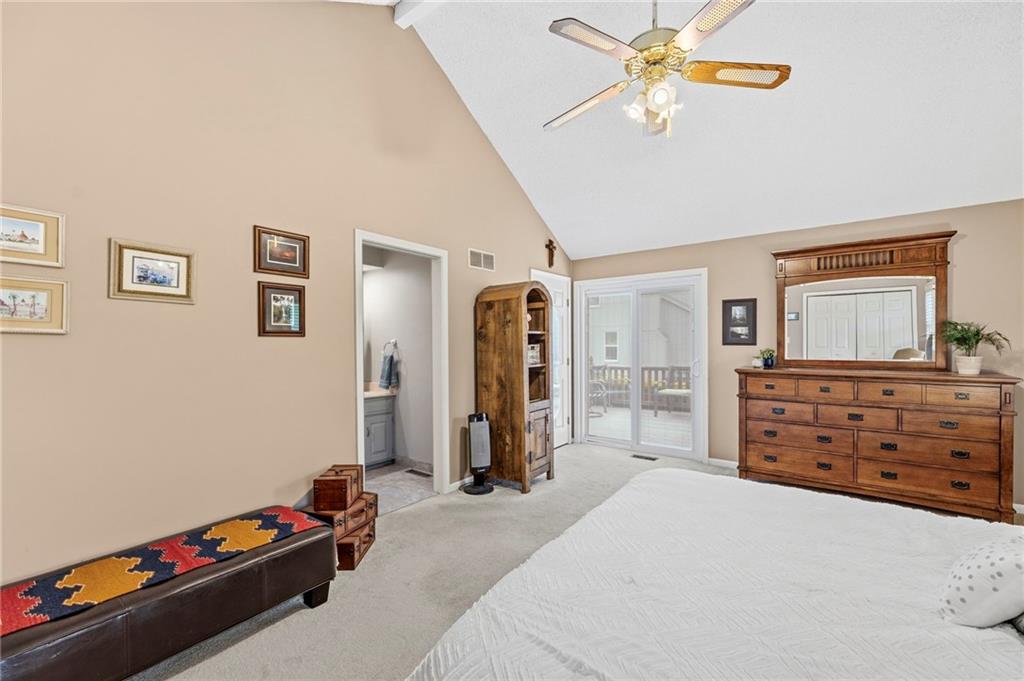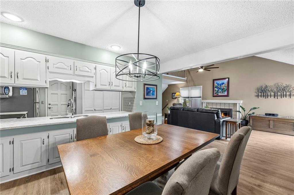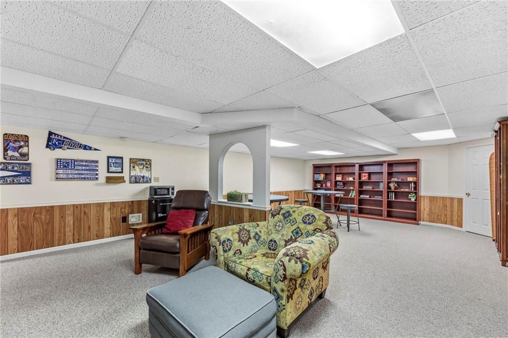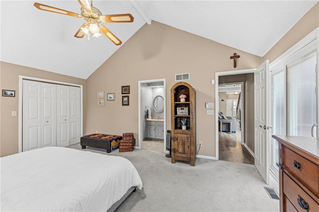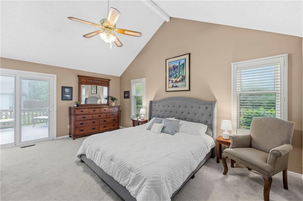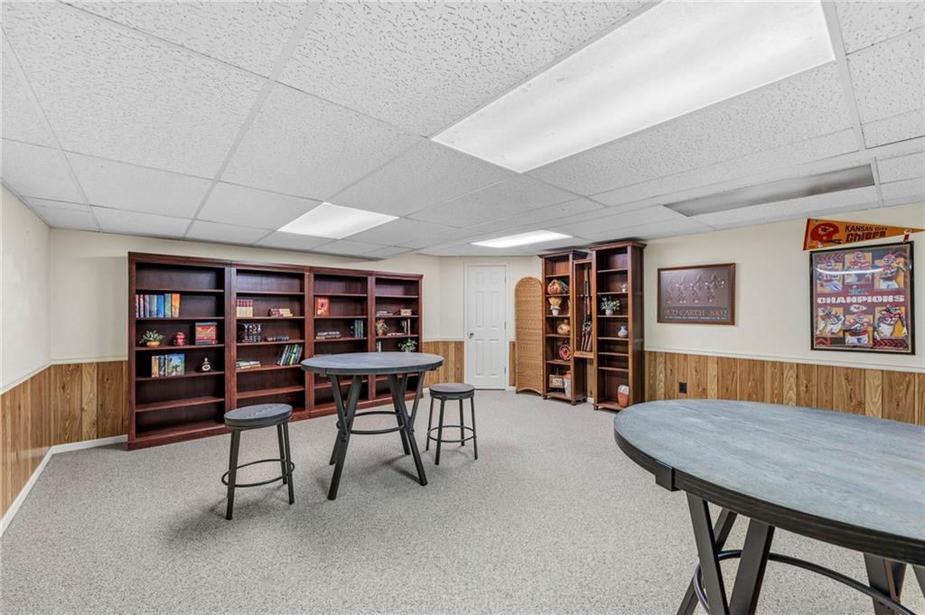 This maintenance-provided gem in the coveted Blue Valley School district combines comfort, convenience, and a truly desirable setting backing to Cross Creek Park and its scenic walking trails. A rare main-floor primary suite offers ease of living, complete with a relaxing whirlpool tub, while the fenced backyard and composite deck create the perfect space to unwind or entertain with a view. Lawn service will mow inside the fence if gate is unlocked! Inside, you’ll find gorgeous hardwood floors, soaring ceilings in the living room, and a stunning fireplace that anchors the space beautifully. The updated kitchen with modern countertops adds both style and functionality. Upstairs has two spacious bedrooms and a full bath, centered around a bright, open landing. The finished basement expands your living space with a dedicated office and built-in shelving—ideal for work or hobbies. Meticulously maintained and move-in ready, this home also includes a Platinum Home Warranty from Old Republic for added peace of mind.