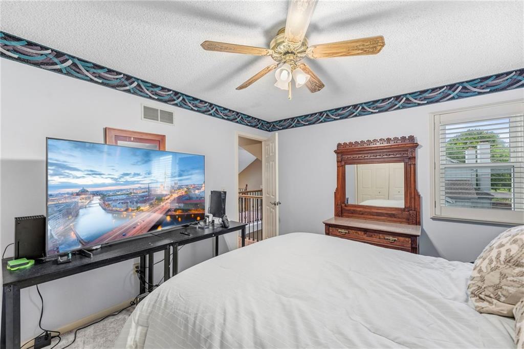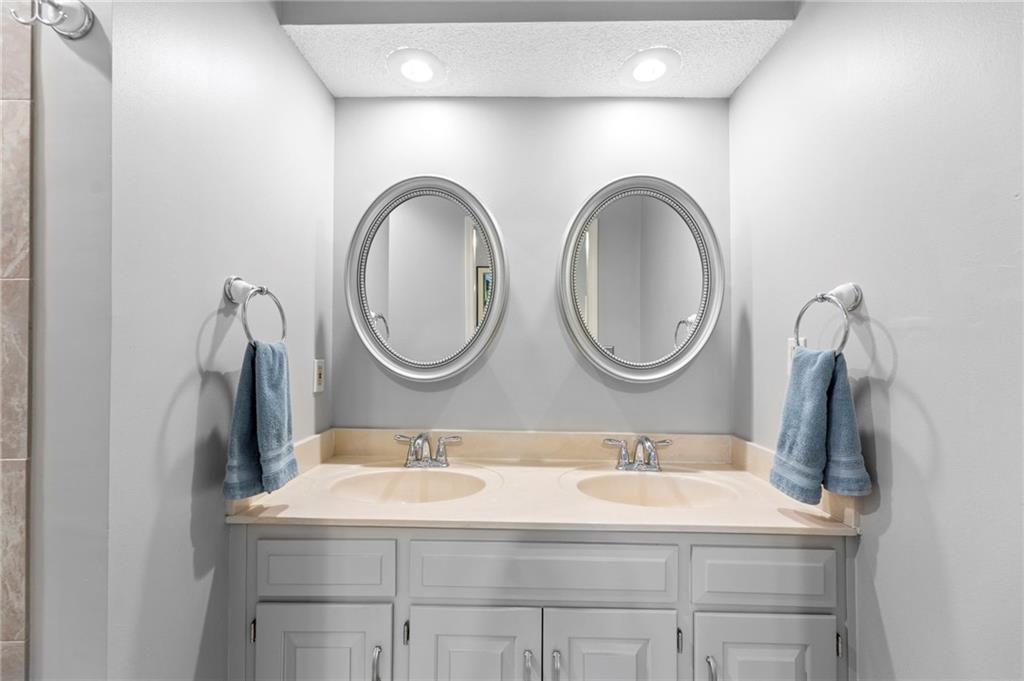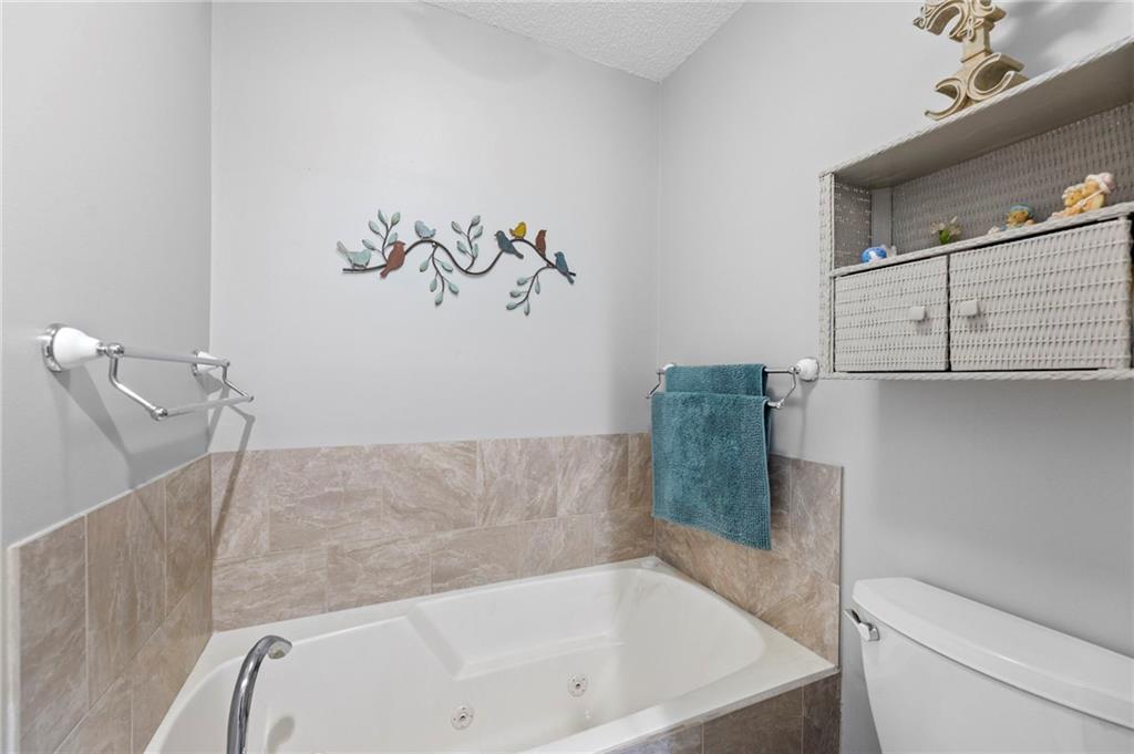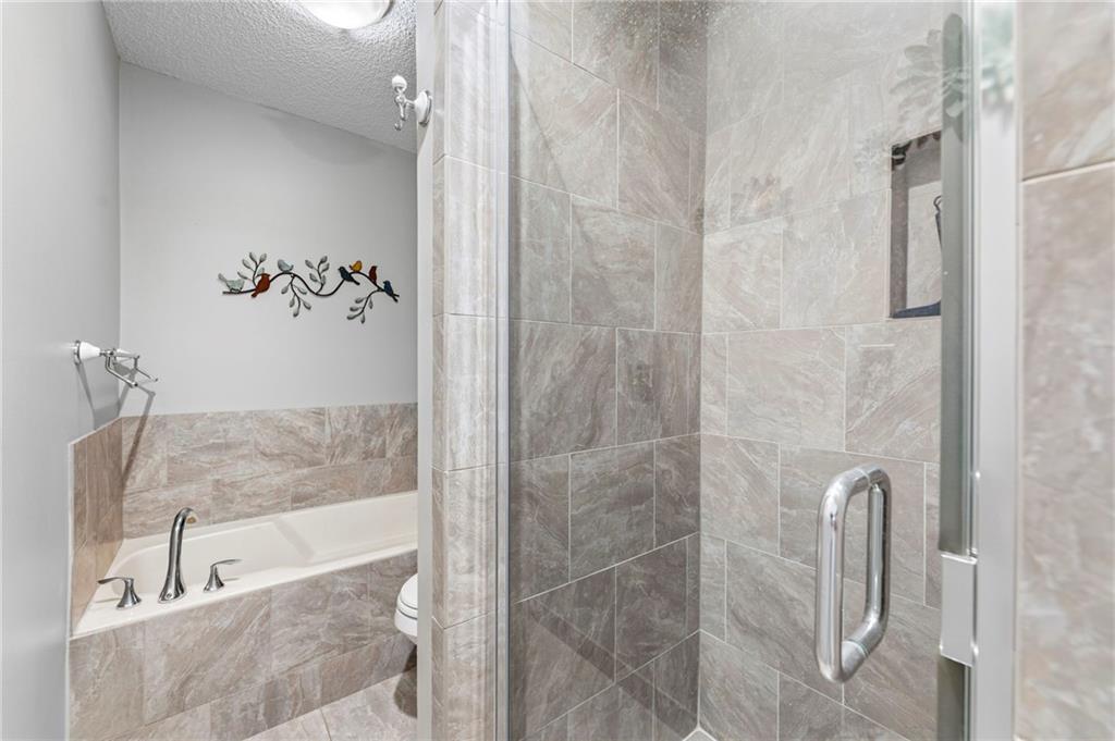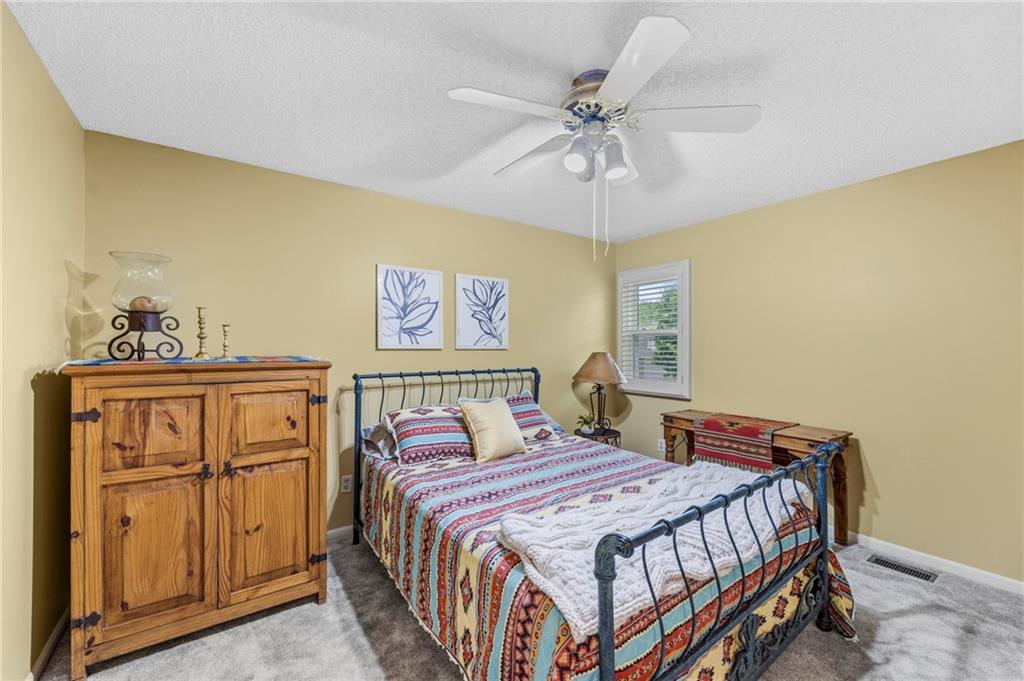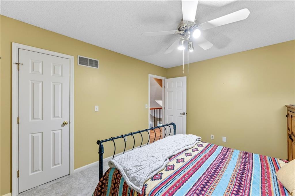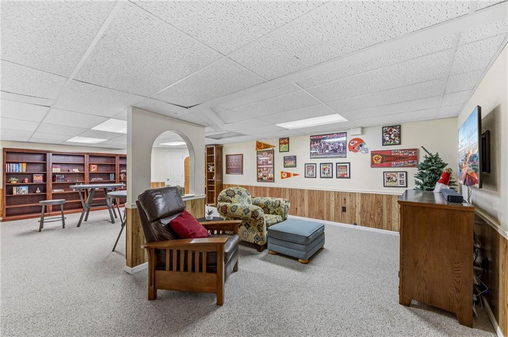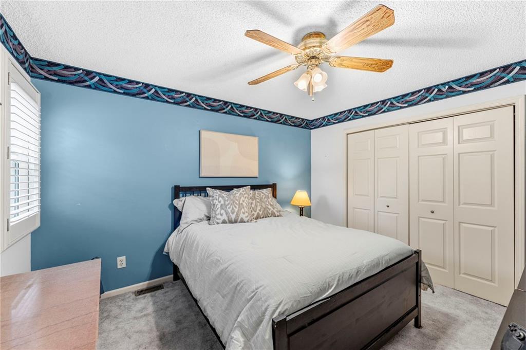 This maintenance-provided gem in the coveted Blue Valley School district combines comfort, convenience, and a truly desirable setting backing to Cross Creek Park and its scenic walking trails. A rare main-floor primary suite offers ease of living, complete with a relaxing whirlpool tub, while the fenced backyard and composite deck create the perfect space to unwind or entertain with a view. Lawn service will mow inside the fence if gate is unlocked! Inside, you’ll find gorgeous hardwood floors, soaring ceilings in the living room, and a stunning fireplace that anchors the space beautifully. The updated kitchen with modern countertops adds both style and functionality. Upstairs has two spacious bedrooms and a full bath, centered around a bright, open landing. The finished basement expands your living space with a dedicated office and built-in shelving—ideal for work or hobbies. Meticulously maintained and move-in ready, this home also includes a Platinum Home Warranty from Old Republic for added peace of mind.