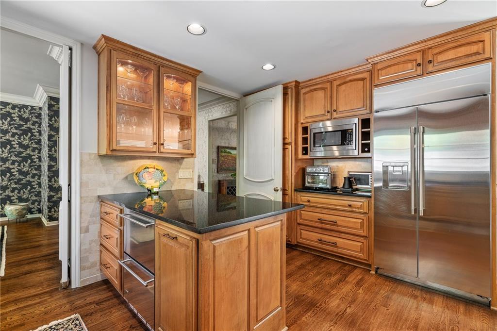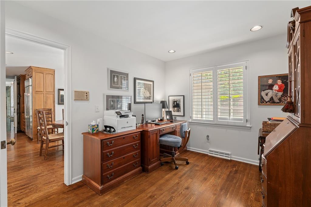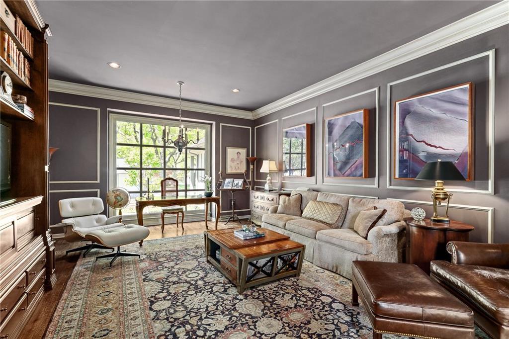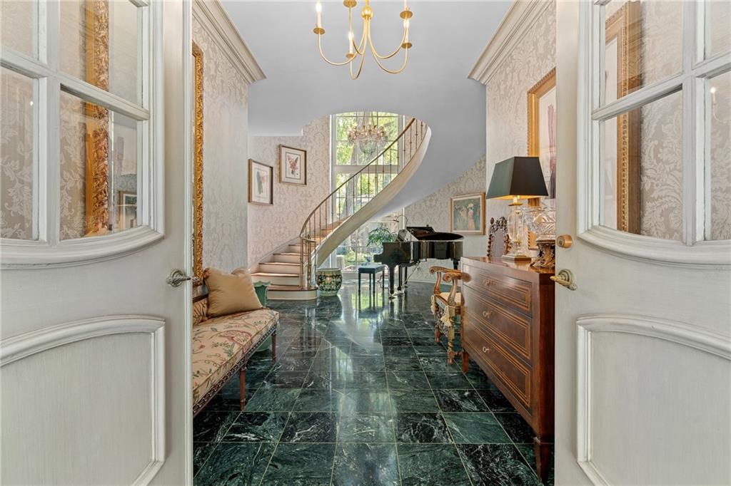 Imagine your own private chateau in the heart of Mission Hills-an extraordinary residence where timeless elegance and impeccable care come together in perfect harmony. From the moment you arrive and are greeted by the sweeping curved staircase in the entry, you know you are in for a treat of grandeur and warmth that really must be experienced in person.Soaring ceilings and beautifully proportioned rooms create and ideal setting for entertaining on any scale, yet the home remains inviting and comfortable for everyday living. At its heart, a truly special feature unfolds: a stunning U-shaped design embracing a brick-paved garden courtyard, complete with pergolas and fountains. This picturesque piazza offers an enchanting backdrop for celebrations, quiet evenings, or unforgettable gatherings under the stars. The spacious family room is a true showplace, featuring a vaulted, beamed ceiling, a striking fireplace as its focal point, and a well appointed wet bar-perfect for effortless entertaining with direct access to the piazza. The main level offers remarkable flexibility, with a serene primary suite featuring a barrel ceiling, fireplace and a beautiful view and access to the piazza. Two additional main-floor bedrooms share a bath, creating the opportunity for dual primary living on the same floor. Upstairs, two more bedrooms share a bath, ensuring there is truly room for everyone. The lovely eat-in kitchen is both functional and inviting, featuring a gas range, wine cooler, refrigerator drawers, and pantry. It opens to another, more intimate courtyard-an ideal setting for grilling, quiet mornings, or a relaxed evening in a private outdoor space. Storage is abundant throughout the home with an impressive number of large closets. This home also features a highly sought-after large three car garage with epoxy flooring. A versatile space just off the kitchen, currently an office with ensuite bath, offers potential for private quarters for live-in assistance. A magical home