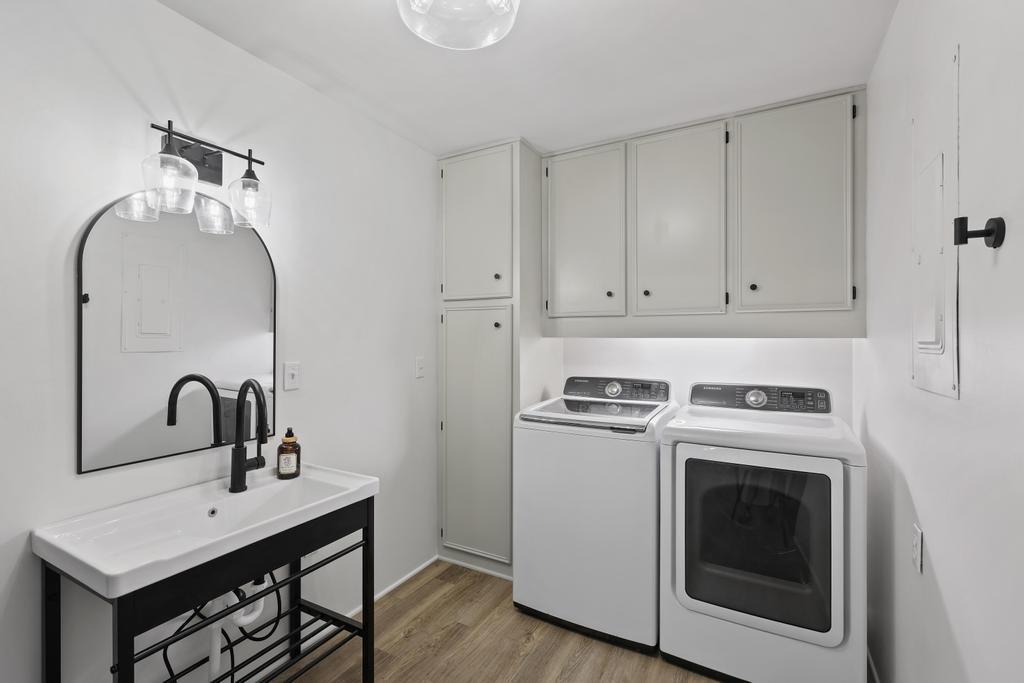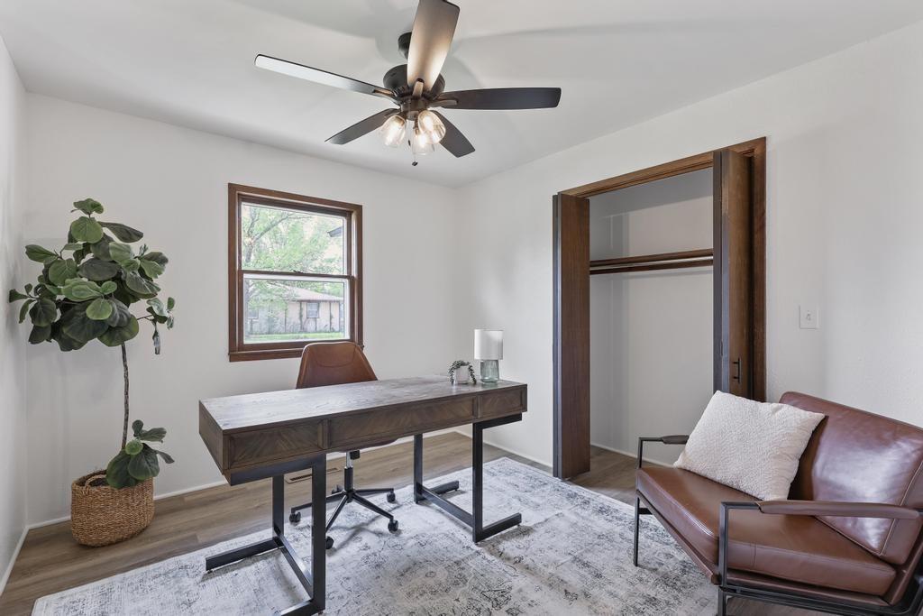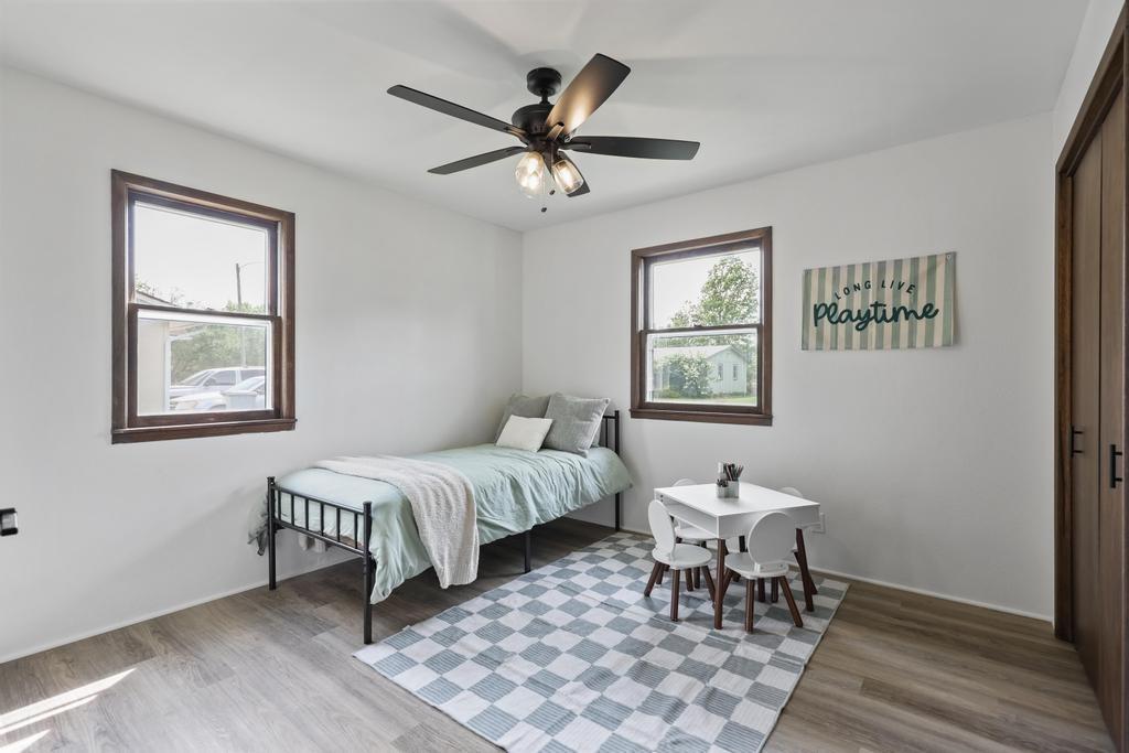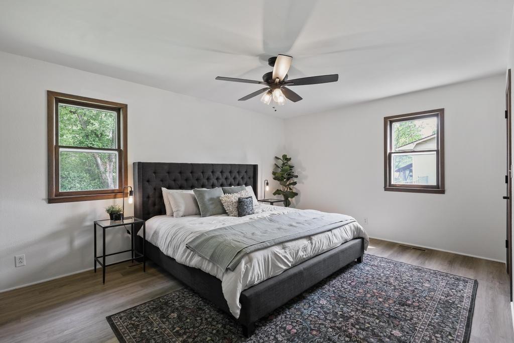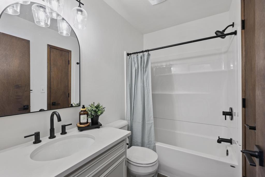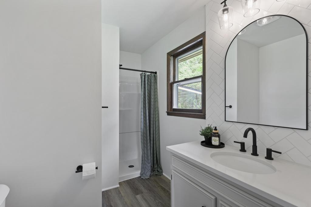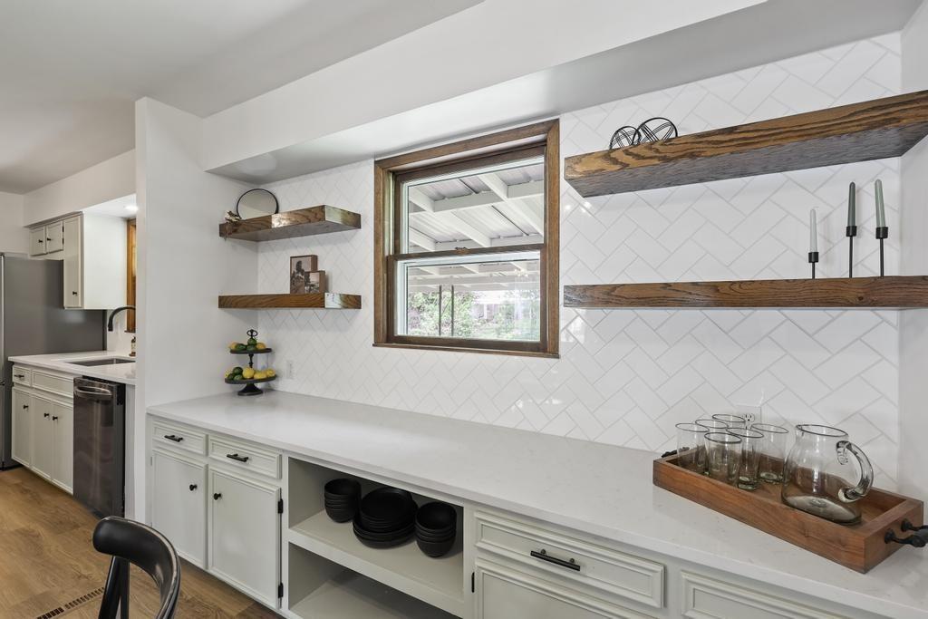 Welcome home to this beautiful fully remodeled 3-bedroom, 2-bath ranch that perfectly blends modern updates with timeless comfort! From the moment you arrive, you’ll appreciate the curb appeal, fresh exterior paint, and the brand new black Class 4 impact-resistant roof that fits perfectly into the striking color scheme and gives you peace of mind. Step inside to discover an aesthetic that perfectly blends creamy white paint, warm wood tones, and matte black fixtures for a coordinated and classy look that accentuates any style. The bright, inviting, and open interior features fresh paint and new LVP flooring throughout. Large windows and a wood burning fireplace are found in the spacious living room, which flows seamlessly to the stunning kitchen and dining area — undoubtedly the heart of the home. Showcasing gorgeous quartz countertops, white herringbone backsplash, abundant cabinetry, and stainless steel appliances (including a gas range!) — this is a kitchen that is as functional as it is pretty! The roomy primary bedroom boasts a walk-in closet and en suite bath, complete with a walk-in shower and herringbone tile details to elevate the look. Two additional bedrooms, and another full bath are found down the same hallway, along with plenty of storage! The attached 2-car garage conveniently connects to the home through the laundry and mudroom that is both functional and fashionable - because it shouldn’t be an exception to the way the rest of the home looks! Outside, you’ll love the large flat lot—ideal for entertaining, gardening, or simply relaxing under the large covered patio overlooking the backyard. This move-in ready home offers style, quality, and convenience all in one. Don’t miss your chance to make it yours!