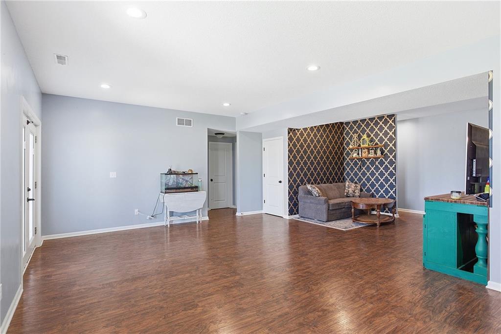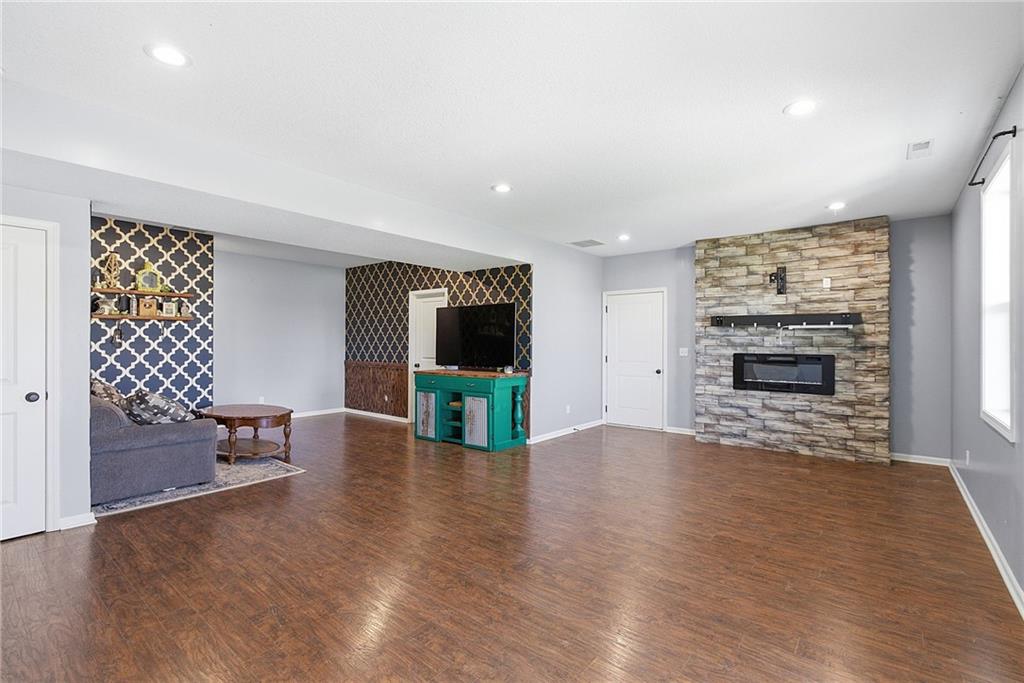 Welcome home to this custom-built 4 bed/3 bath ranch on 3.3 acres, designed with an easy open layout. The kitchen is ready for everyday life and entertaining, with an island, lots of cabinets, granite counters, a pantry, stainless appliances, and tile floors. Cozy up in the great room by the eye-catching rock fireplace. The primary suite feels like a retreat, featuring a big walk-in shower, soaking tub, and a walk-in closet tucked behind barn doors, plus two more bedrooms and a full bath on the main level. Downstairs, the walkout lower level adds even more space with a second rock fireplace, a 4th bedroom, a bath, and an office (or 5th nonconforming bedroom). You’ll love the laundry/pantry off the kitchen—plus a second laundry area in the basement. Step out to the covered patio and enjoy summer days in the 16x32 inground saltwater pool. With abundant wildlife, miles of views from the upper deck, and a peaceful blacktop location between Paola and Louisburg with quick access to Highways 69 and 169, this one checks all the boxes.