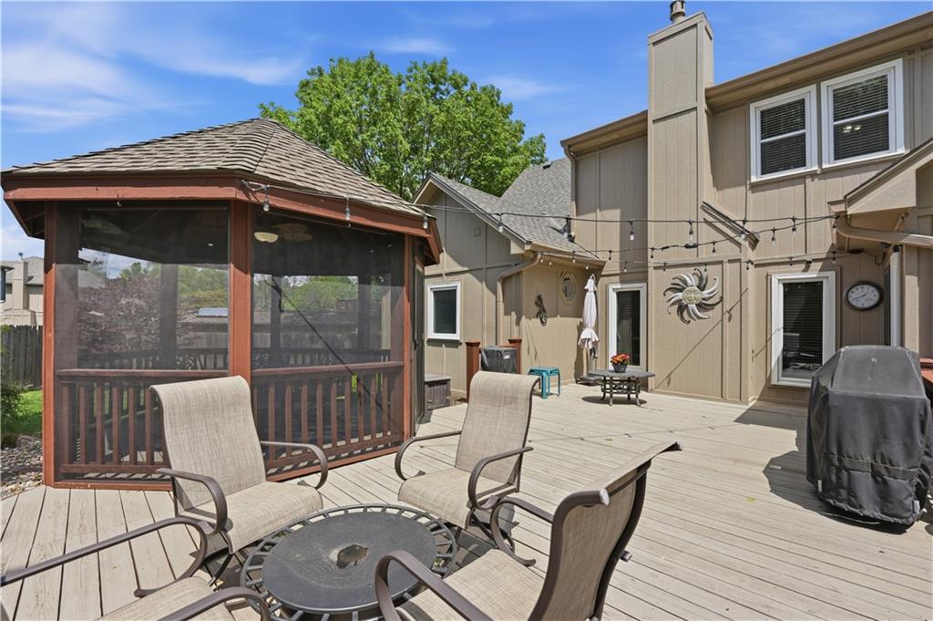 Welcome home to this beautifully updated 1.5-story residence. Featuring 4 bedrooms, 2 full baths, and 2 half baths. This home offers a spacious and flexible layout designed for comfortable living. The main-floor primary bedroom provides convenient, single-level living. The primary bathroom is well-appointed with double vanities, marble tub and a separate onyx shower for added comfort and convenience.The updated kitchen showcases painted cabinets, stainless steel appliances, and a functional layout perfect for everyday living and entertaining. On the main floor is also an office. Upstairs, you’ll find three large bedrooms and a full bath with a double vanity, along with a walk-in attic that provides excellent additional storage space. The finished basement includes approximately 800 square feet of living space and a half bath—ideal for a recreation room. An additional large unfinished area with built-ins offers the perfect space for hobbies, a workshop, or extra storage. Step outside to enjoy the expansive deck and charming screened-in gazebo with a ceiling fan. The backyard also includes a storage shed and a deck box for added functionality. A two-car garage completes the home. Recent upgrades include a new roof and 6 inch gutters installed in August 2025, offering peace of mind for years to come. With its thoughtful updates, generous space, and great indoor and outdoor features, this home is move-in ready and ready to impress.