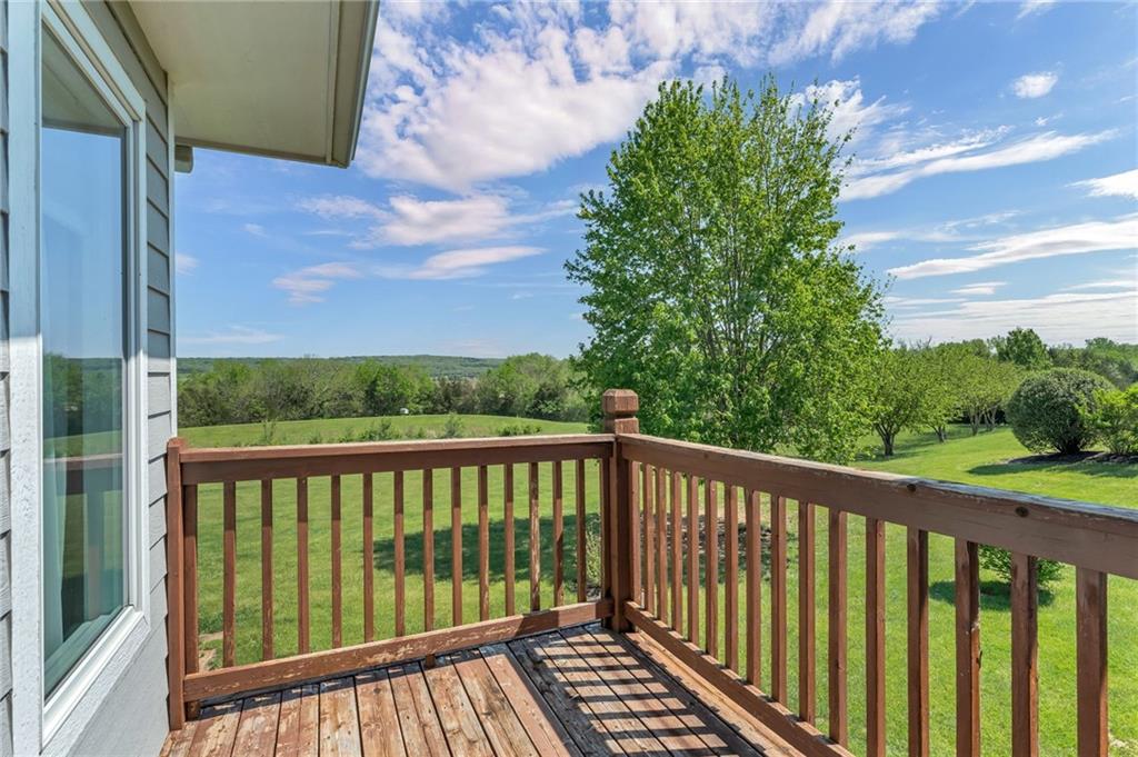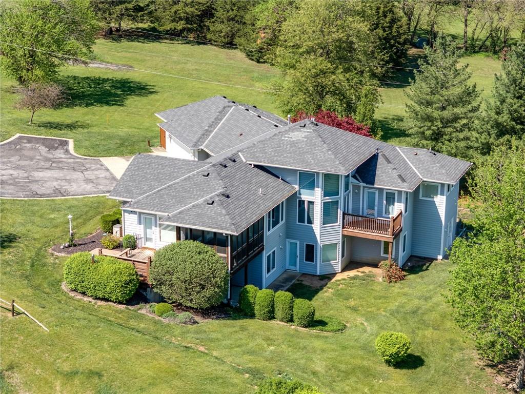 Enjoy peaceful country living just south of Lawrence on 5 scenic acres! This custom-built home showcases beautiful woodwork and quality craftsmanship throughout. The spacious, open main level is filled with natural light from large windows that capture stunning views in every direction. Relax and unwind in the inviting three-season porch, perfect for enjoying the outdoors year-round. The walkout basement features a large family room—ideal for entertaining or gathering—along with plenty of unfinished storage space for all your needs. Outside, you’ll find a pond, wide open space to roam, and a large tool shed for hobbies, equipment, or extra storage. A fantastic opportunity to own a cared for home with room to breathe, just minutes from town!