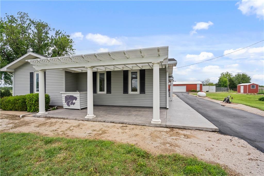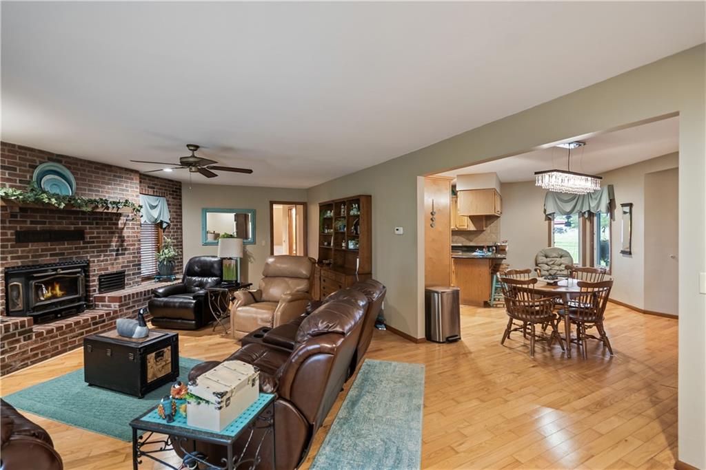 If you’ve been dreaming of a little space to spread out without giving up comfort, this one feels like home the minute you pull in. Set on 9.13 acres, this 3 bedroom, 2 bath ranch offers 1,793 square feet of easy, single-level living with room to breathe inside and out. Step through the door and you’re welcomed by warm hardwood floors that run throughout the home, creating a cozy, connected feel. The living area centers around a wood-burning fireplace, perfect for slow evenings and gathering with family or friends. The kitchen brings a touch of modern style with granite countertops, and all appliances stay, making the move-in process simple. Both bathrooms have been updated with LVP flooring for durability and style, while central HVAC keeps things comfortable year-round. Updated windows and insulated siding help create a quieter, more efficient space, even with the convenience of nearby highway access. Outside is where this property really starts to tell its story. Whether you're working, tinkering, or just need extra storage, the detached 2 car garage/shop is ready to go with two overhead doors and its own wood-burning stoves. There’s also an additional outbuilding with an overhead door and lean-to, plus a small shed for all the extras. Dog pens are already in place and will stay, making it easy for your four-legged companions to settle in too. You’ll find yourself drawn to the outdoor spaces, from the covered east-facing patio that’s perfect for morning coffee to the pergola patio on the south side, ideal for winding down at the end of the day. With a roof that’s only 5 years old and low-maintenance vinyl siding, the big items are already taken care of. This is the kind of place where you can slow down a bit, enjoy the land, and make it your own, whether that means gardening, hobbies, or simply enjoying the quiet of country living.