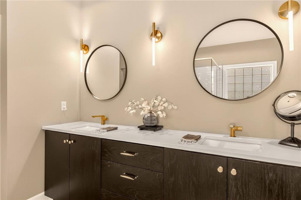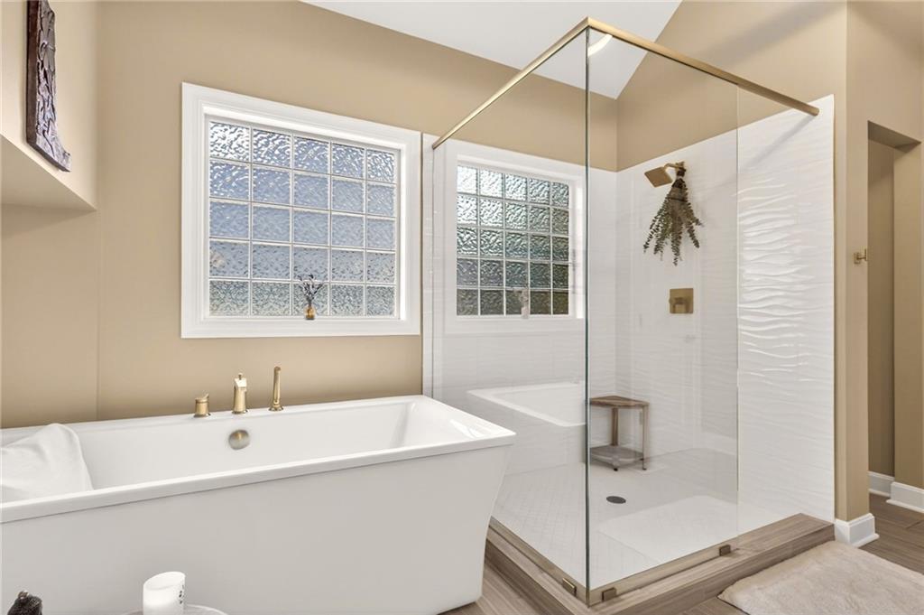 Welcome home to this show-stopping 1.5-story in the highly coveted Copperleaf community! Perfectly positioned in the Liberty School District, this one-of-a-kind property offers over 5,000 sq ft, 6 bedrooms, 4.1 baths, & a 3-car garage—backing to a private greenway for the ideal blend of space, serenity, and convenience near schools, shopping, & dining. Step inside to an inviting, light-filled open floor plan featuring formal dining & living spaces, a cozy hearth room, and a beautifully reimagined kitchen. Designed to impress, the kitchen boasts new appliances, updated countertops, tile backsplash, freshly painted cabinetry, an oversized island, and a walk-in pantry, perfect for everyday living and entertaining alike. Rich hardwood floors span the main level, complemented by a stylishly retiled fireplace and elevated finishes throughout. The main-level primary suite is a true retreat, highlighted by a completely remodeled and expanded, one-of-a-kind spa-like bathroom with an enhanced, modern, and functional flow! Enjoy Kohler fixtures, a custom vanity, 6-foot soaking tub, oversized walk-in shower, and added storage. A second main-level bedroom and half bath provide ideal flexibility for guests or a private office. Upstairs, you’ll find a spacious loft, a second primary suite with en-suite bath and walk-in closet, plus two additional bedrooms and bath. The finished walkout lower level is built for entertaining, featuring a large family room, wet bar with granite counters, and a media room with custom built-ins & a hidden playroom, sixth bedroom, and full bath. Extensive updates deliver worry-free living, including a new roof, gutters with leaf guards, hot water heater, insulation, carpet, garage door, fresh interior paint, professional landscaping & comprehensive water management with French drains. BONUS: Enjoy 3 seasons of relaxation on the screened-in deck overlooking a peaceful, private backyard. Homes like this don’t come along often—schedule your showing today!