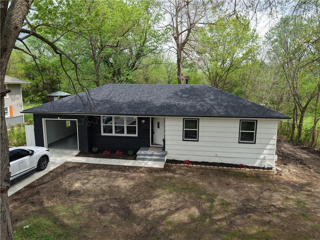 Completely Reimagined | Half-Acre Lot | Prime Raytown Location Practically brand new and fully reimagined from top to bottom, this stunning home delivers true peace of mind with major upgrades already completed — including a new roof, plumbing, electrical, gutters, windows, and modern lighting throughout. Every detail has been thoughtfully designed to blend style, comfort, and functionality. At the heart of the home is a show-stopping kitchen featuring quartz countertops, sleek finishes, and an open-concept layout perfect for both everyday living and entertaining. The fully finished basement significantly expands your living space, offering a spacious TV/media room, dedicated office area, and a full bathroom — ideal for today’s work-from-home lifestyle or hosting guests. Step outside to enjoy the rear deck overlooking a generous half-acre lot, providing the perfect setting for relaxing, entertaining, or future outdoor possibilities. A one-car garage adds everyday convenience. Located in the heart of Raytown, this home offers the perfect balance of neighborhood charm and city convenience. Just minutes from new and growing shopping options, and approximately 15 minutes to Country Club Plaza, Leawood, and Waldo — you’ll enjoy easy access to some of the most desirable areas in the metro. Commuting is effortless with quick, 5-minute access to Interstate 470. Blending the feel of new construction with the charm of an established, sought-after neighborhood, this home is truly move-in ready and built to impress.