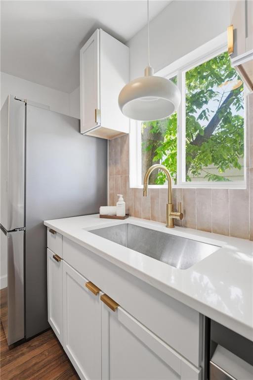 This charming 1930s bungalow has been thoughtfully updated while preserving its one-of-a-kind character. Nestled on a corner lot in Spring Valley, this 3 bed/2 bath home offers 1,478 sq ft with the ease of main-level living. The main floor features hardwood & tile floors, a cozy fireplace, and a modern kitchen with solid quartz countertops, modern cabinets, stainless steel appliances, electric stove, refrigerator, dishwasher, and W/D — all included. The main-level primary suite boasts a walk-in closet & double vanity bath. Upstairs, a private bedroom and loft space add versatility for guests, a home office, or flex living with it's own entrance from the back. Step outside to a welcoming front porch, back deck, fire pit & fully fenced backyard — perfect for entertaining. Detached 1-car garage, extra driveway parking & solar energy generation round out this truly unique find. The location is premium being one block from Woodside Racquet Club, walking distance to Westport & the Country Club Plaza, and just minutes from KU Medical Center & St. Luke's Hospital.