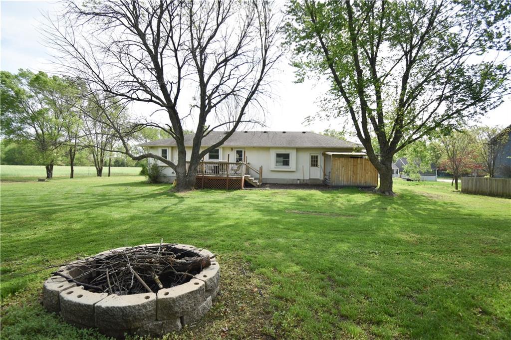 Two bedrooms and a bathroom upstairs and potential non-conforming Master Suite with bathroom downstairs. Kitchen with pantry and backyard deck access for easy entertaining. Large Living Room, attached garage and beautiful yard with view of farmland to the North. Located at the end of the cul-de-sac so minimal traffic. Large garden plot, ready to plant. Quiet neighbors with an easy commute to Harrisonville, Kansas City, or Truman Lake.
