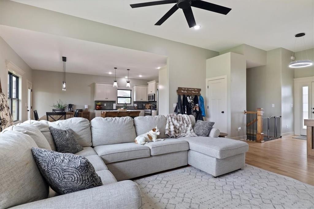 This beautifully designed reverse 1.5-story home offers space, style, and functionality in every detail. This 4-bedroom, 3-bathroom home features a finished lower level and an open layout ideal for both everyday living and entertaining. There is also a 5th non-conforming bedroom downstairs. Step inside to real hardwood floors and a bright, inviting great room with soaring vaulted ceilings and expansive windows that overlook peaceful green space. The spacious kitchen is a standout with ample cabinetry, modern finishes, and a large walk-in pantry—perfect for hosting or staying organized. The main level offers comfortable living with a well-designed primary suite, while the finished basement provides additional living space, bedrooms, and flexibility for guests or recreation. The home is also wheelchair accessible, featuring a convenient ramp in the garage for ease of entry. Since purchasing, thoughtful upgrades have been added, including a fully fenced backyard for privacy and convenience. The lower level has been enhanced with sheetrock to create a 5th non-conforming bedroom, offering even more usable space. A 220-volt outlet has also been installed for a tanning bed, providing versatility for specialized equipment or future needs. Located in The Vintage, residents enjoy access to a community pool and a charming paved walking trail that winds along a scenic creek through the wooded area behind the subdivision—perfect for relaxing strolls and enjoying nature. Don’t miss your chance to own this spacious, move-in ready home with added upgrades and flexible living space—schedule your showing today!