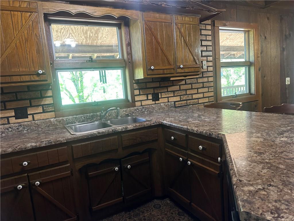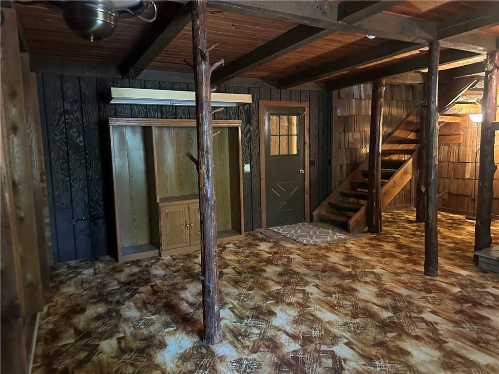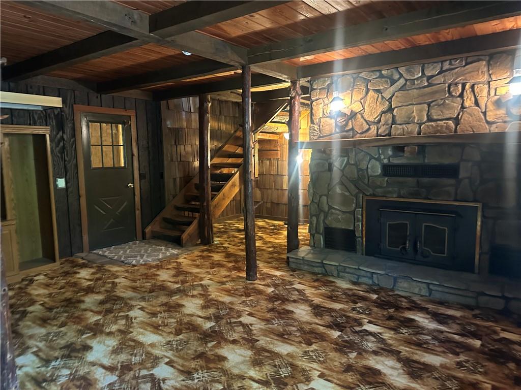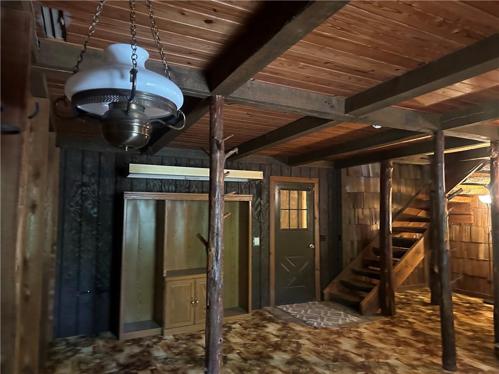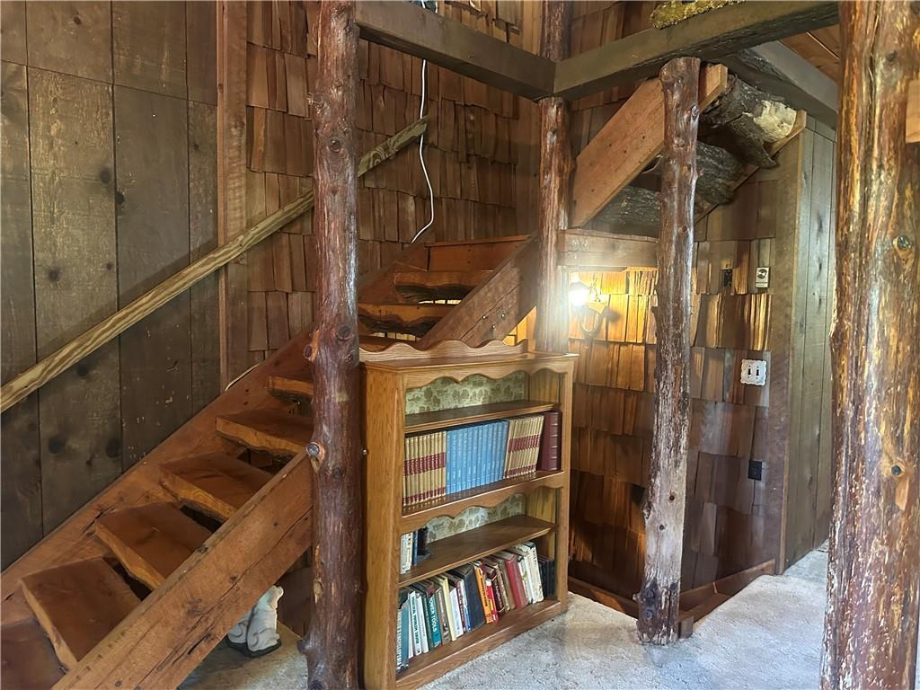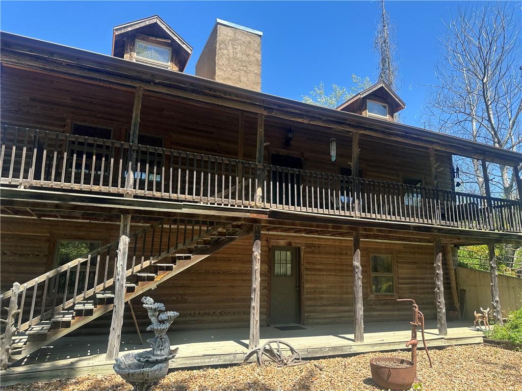 LOOKING FOR RUSTIC WITH HAND HEWN POST AND SHAKE INTERIOR WALL COVERING AND CULTURED STONE ENTRIES 2 BEAUTIFUL CULTURED STONE FIREPLACES ON LOWER AND SECOND LEVEL. COVERED DECK OVERLOOKING THE STOCKED LAKE WHERE THE HOME SETS W/LAKEVIEW. IF LOOKING FOR A HOME FOR MULTIPLE CAR COLLECTION, RV OR BOAT THERE ARE 4 GARAGES PLUS A HUGE WORKSHOP WITH LOTS OF SHELVING AND ACCESSIBLE FROM WITHIN THE HOME AND INCLUDES AIR COMPRESSOR HOOK-UP AND A STORM SHELTER, GARAGES AND OTHER EARTH BERM. MOST UNUSUAL LOG STYLE MULTI-FLOOR CABIN WITH HAND HEWN POSTS THROUGHOUT. SUCH A GREAT PLACE AND APPROX. 4 MILES FROM WARRENSBURG AND APPROX 8-9 MILES TO I-70. MANY TREES. SOME UPDATING WILL BRING THIS BEAUTIFUL UNIQUE HOME TO DATE. THE WORKSHOP IS A MAN'S DREAM. THE GREAT ROOM OR LR HAS GREAT VAULTED AREA WITH TRUSSES AND A HUGE LIGHT THAT CAME FROM A FORMER LOCAL RESTAURANT AND MOST FITTING FOR THE AREA.