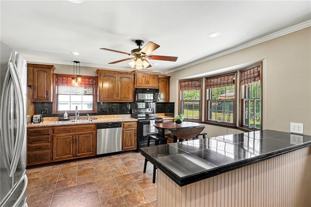 Welcome home to this impeccably maintained, "super clean" split-level gem boasting over 2,500 finished square feet of versatile living space! The top-level primary suite is a true showstopper, featuring an updated full ensuite bath with custom tile work, two walk-in closets, built-in vanity and a massive bonus room—perfect for a nursery, home office, or the ultimate dressing room. On the second level, beautiful hardwoods flow through three spacious bedrooms and a second full bath updated with custom tile finishes on the floor and shower surround. The heart of the home is filled with natural sunlight where the open eat-in kitchen meets a cozy family room complete with wood floors and a wood-burning stove. You'll find additional gathering space in the formal dining room off the kitchen and a large front living room with windows looking out to the covered front porch where you'll find plenty of space for seating. Step outside through the walk-out in the family room to a large patio and sprawling backyard, ready-made for summer BBQs and all your outdoor fun! Need more space? The lower level offers a large finished multipurpose room, a half bath, and ample storage. Plus, don't miss the bonus attic storage for all your seasonal gear! This well-maintained home offers incredible value and plenty of room to grow. See it today before it’s gone!