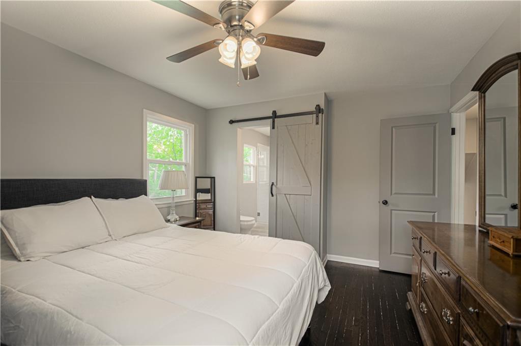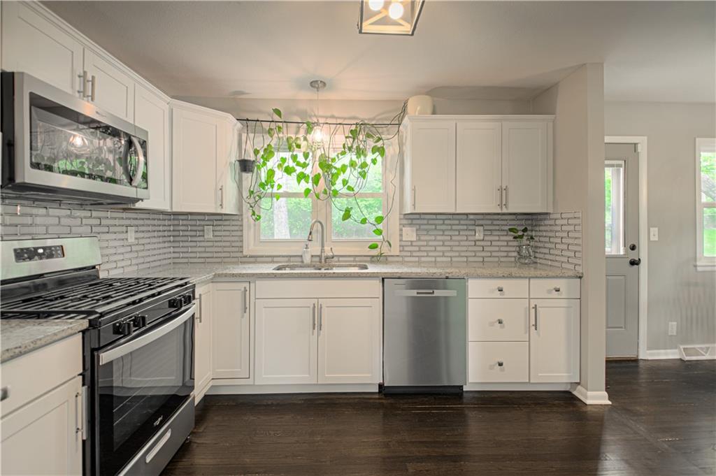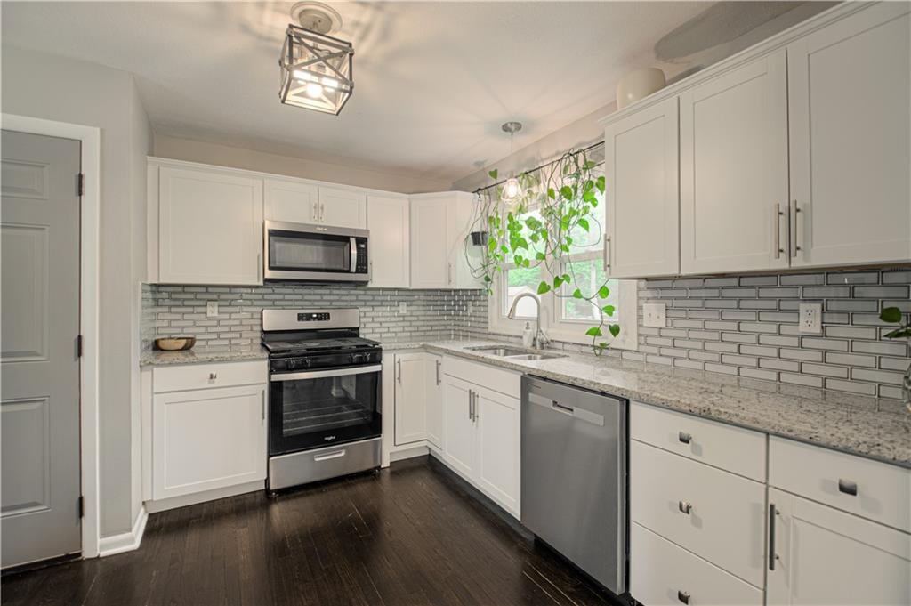 Completely move-in ready! Don’t miss all of the 2023 updates!!Throughout the home, you’ll find beautiful wood floors, new lighting, updated door handles, and refinished interior doors. All three bedrooms feature new ceiling fans, doors, closet doors, closet systems.Both bathrooms have been extensively updated. The primary bathroom includes new tile flooring, shower, vanity, toilet, mirror, lighting, and fixtures, along with a modern barn door. The hallway bathroom has also been refreshed with new tile flooring, vanity, updated shower/tub area, toilet, and fixtures. The kitchen has been beautifully refreshed with new cabinets, hardware, granite countertops, stainless steel appliances (gas range, dishwasher, and microwave), updated sink and faucet, tile backsplash, and added water line for the refrigerator—plus a stylish new pendant light to finish the space. The exterior has not been overlooked—featuring new exterior paint, custom shutters, updated landscaping, new exterior lighting, new garage door openers, and an asphalt driveway. Make sure you step out back to enjoy a night around the fire pit.