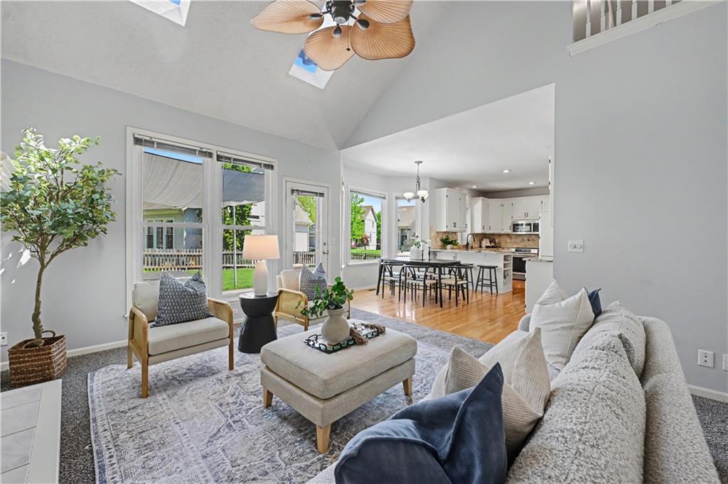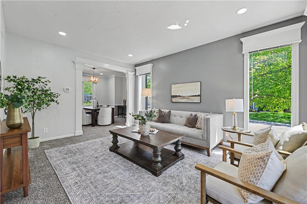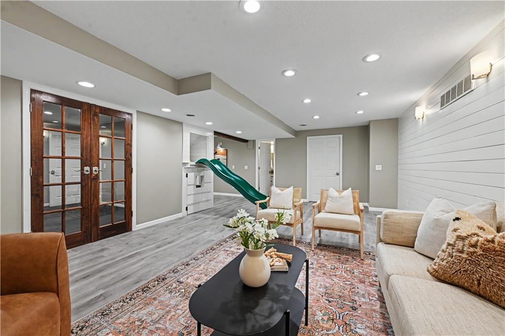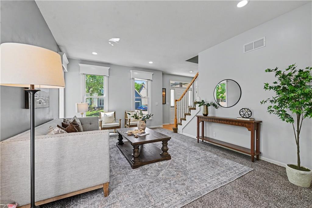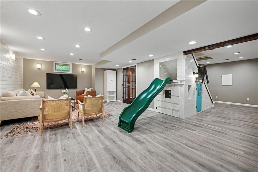 Situated on a corner lot in Overland Park with quick access to I-435 and Highway 69, this two-story home offers a well-designed layout with updates inside and out. The exterior has seen significant improvements, including new windows installed throughout the home in December 2023, along with exterior wood rot repair and fresh paint completed in November 2025. A new garage door was also installed in November 2025. The outdoor space was enhanced in June 2023 with a paver patio and seating walls, creating a functional area for entertaining, along with an added driveway and a new sprinkler system. Inside, all new carpet was installed in April 2026, giving the home a clean, updated feel. Upstairs features four bedrooms and three fully remodeled bathrooms. The primary suite has been redesigned into a spa-like retreat, while the second bedroom includes its own updated en suite. The hallway bath has also been completely renovated, providing a cohesive and move-in-ready upper level. The main floor offers flexibility with two living areas. The front living space can serve as a sitting room, office, or additional gathering area, complemented by a formal dining room and an eat-in kitchen. A convenient half bath is also located on this level. The recently remodeled basement adds valuable living space, ideal for a theater or media room. It also includes a half bath, a bonus room suited for a home gym or office, and a finished under-stair nook currently designed as a children’s play area with a removable slide. This move-in ready home has been tastefully updated with a consistent, modern feel throughout.