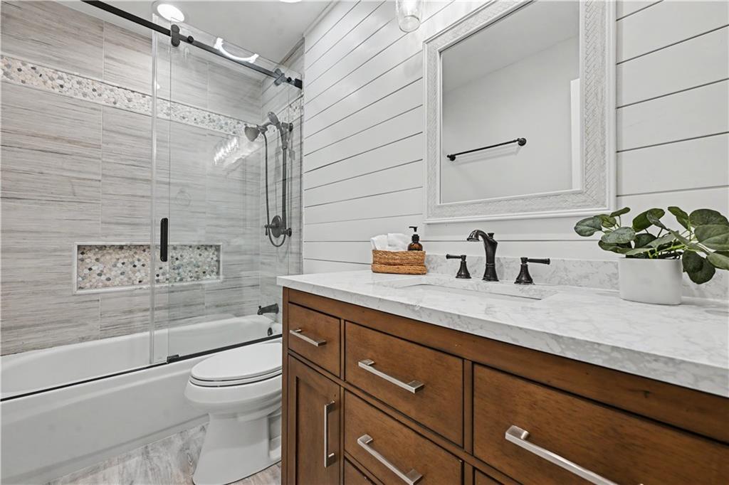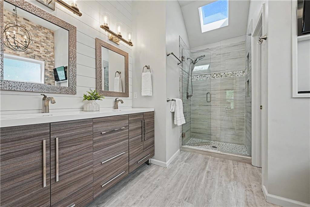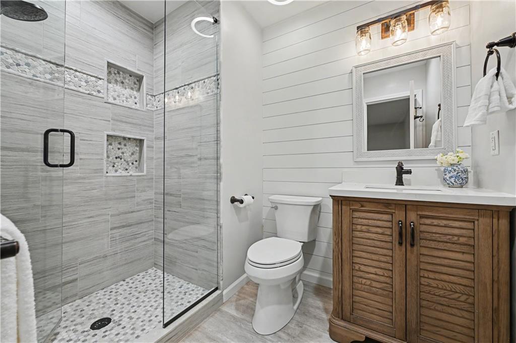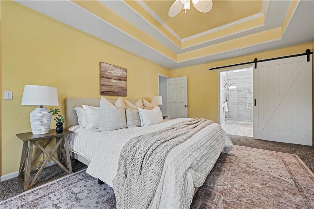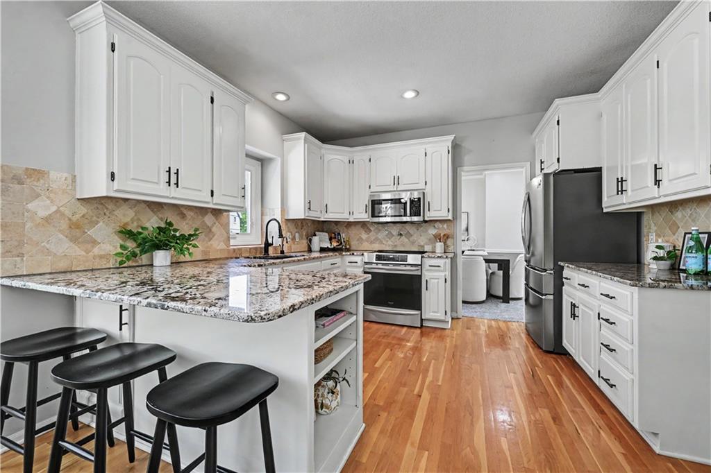 Situated on a corner lot in Overland Park with quick access to I-435 and Highway 69, this two-story home offers a well-designed layout with updates inside and out. The exterior has seen significant improvements, including new windows installed throughout the home in December 2023, along with exterior wood rot repair and fresh paint completed in November 2025. A new garage door was also installed in November 2025. The outdoor space was enhanced in June 2023 with a paver patio and seating walls, creating a functional area for entertaining, along with an added driveway and a new sprinkler system. Inside, all new carpet was installed in April 2026, giving the home a clean, updated feel. Upstairs features four bedrooms and three fully remodeled bathrooms. The primary suite has been redesigned into a spa-like retreat, while the second bedroom includes its own updated en suite. The hallway bath has also been completely renovated, providing a cohesive and move-in-ready upper level. The main floor offers flexibility with two living areas. The front living space can serve as a sitting room, office, or additional gathering area, complemented by a formal dining room and an eat-in kitchen. A convenient half bath is also located on this level. The recently remodeled basement adds valuable living space, ideal for a theater or media room. It also includes a half bath, a bonus room suited for a home gym or office, and a finished under-stair nook currently designed as a children’s play area with a removable slide. This move-in ready home has been tastefully updated with a consistent, modern feel throughout.
