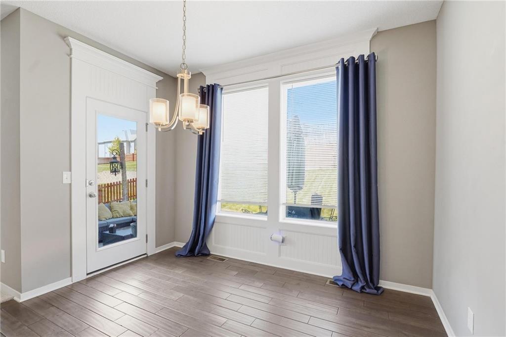 This beautifully maintained 4-bedroom, 3.1-bath home offers the perfect blend of comfort, style, and everyday functionality in a highly desirable Olathe location. From the moment you arrive, the charming front porch sets a welcoming tone, leading into a bright and airy interior with soaring ceilings and an inviting entryway. The main living area is filled with natural light and features a cozy fireplace, creating an ideal space for both relaxing and entertaining. The open-concept layout flows seamlessly into the kitchen, where granite countertops, a large island, ample cabinetry, and a new microwave make both cooking and gathering effortless. Fresh new carpet enhances the home’s clean, updated feel, while thoughtful design elements throughout provide both style and practicality. Upstairs, the spacious primary suite offers a peaceful retreat with a tray ceiling and a well-appointed en-suite bath. Additional bedrooms provide flexibility for family, guests, or home office needs. A versatile loft area with built-in shelving adds even more functional living space. Step outside to enjoy the newly landscaped yard with freshly laid sod, offering plenty of room to relax or play. The outdoor living area is perfect for entertaining, complete with a patio and outdoor TV for enjoying evenings at home. The unfinished basement presents a fantastic opportunity to customize additional living space to suit your needs. Ideally situated near shopping, dining, and everyday conveniences while still offering a quiet, neighborhood feel, this home combines location, community, and livability in one exceptional package.