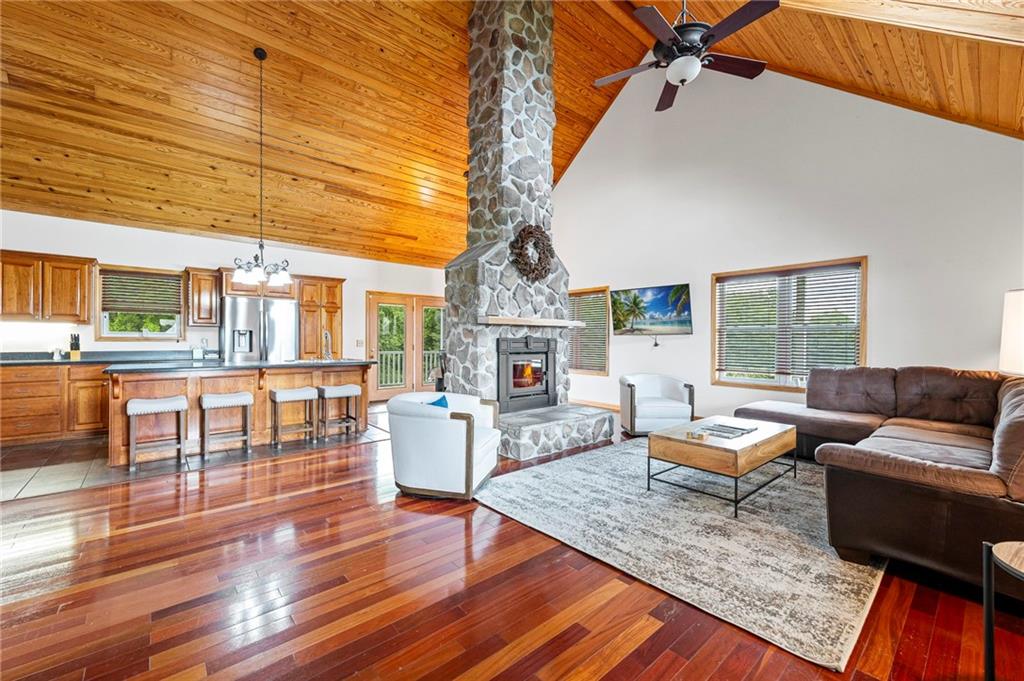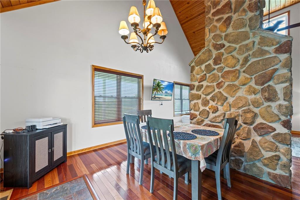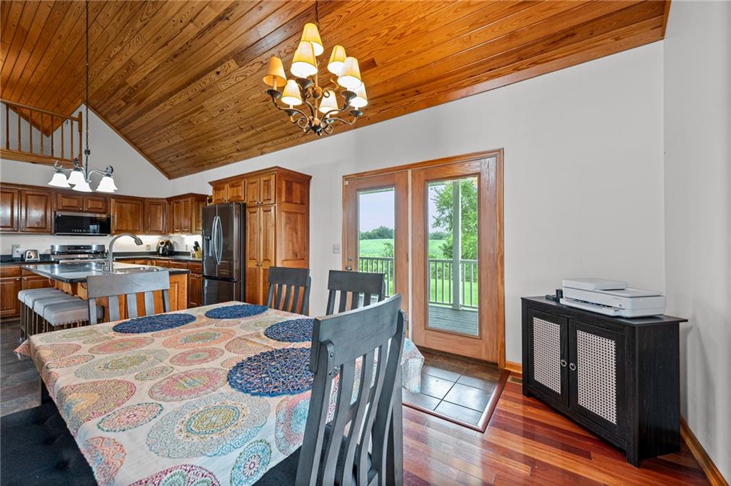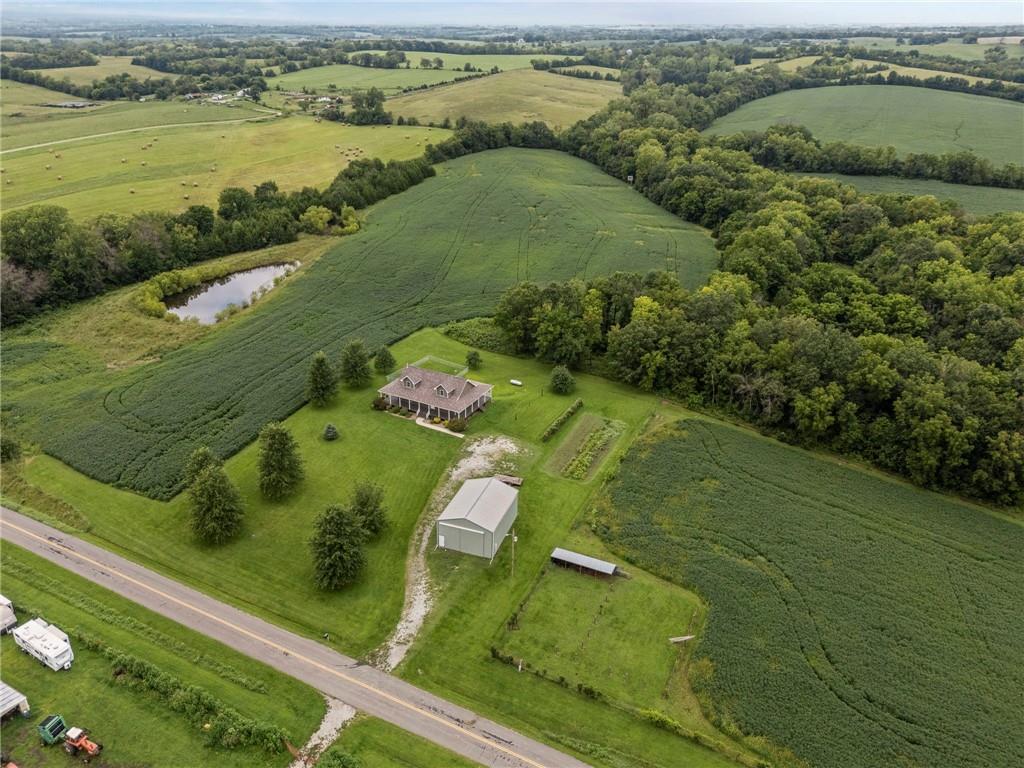 Escape to your own slice of paradise with this stunning 4-bedroom, 3-bath home nestled on 10 picturesque acres. Designed for comfort and connection with nature, this one-of-a-kind property features a spacious wrap-around deck perfect for morning coffee, sunset views, and everything in between. Step inside to find a warm and inviting living space with a breathtaking floor-to-ceiling fireplace, creating a cozy centerpiece for gatherings year-round. The open layout and expansive windows bring in natural light and offer beautiful views of your private haven. Half of the land boasts mature woods teeming with wildlife, offering peace, privacy, and exceptional hunting or hiking opportunities. The other half is productive row crop ground, giving you flexibility for farming, leasing, or expanding your homestead vision. Enjoy fresh fruit from your established fruit trees and grapevines, and discover the joy of country living with deer, turkey, and wildlife right outside your door. Whether you're looking for a family home, a weekend retreat, or a private estate, this property delivers serenity, space, and endless possibilities. Don't miss your chance to own this perfect getaway—where comfort meets nature, and every day feels like a vacation.