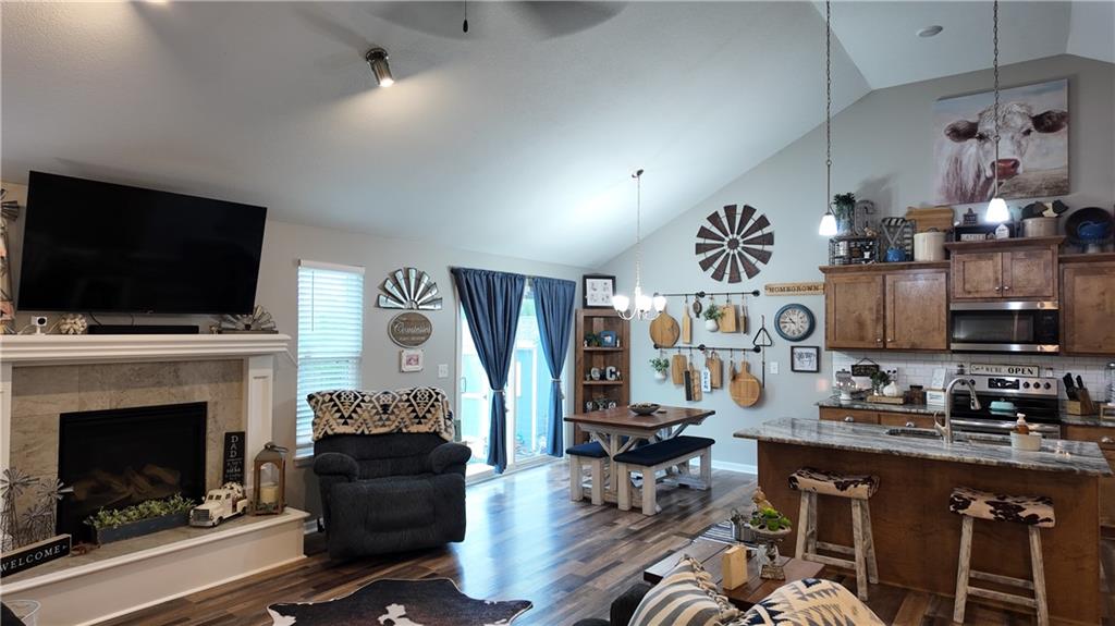 This beautifully maintained 5-bedroom, 3-bath home offers the perfect blend of space, functionality, and modern upgrades. With three bedrooms upstairs and two conforming bedrooms in the fully finished basement, there’s plenty of room for family, guests, or a home office setup. The open-concept main living area features a cozy gas fireplace and flows seamlessly into the kitchen, complete with stainless steel appliances, granite countertops, and stylish finishes throughout. Luxury vinyl plank (LVP) flooring runs through the entire home, providing durability and a clean, modern look. The spacious primary suite boasts a vaulted ceiling in the master bath, along with a relaxing jetted tub—perfect for unwinding at the end of the day. Downstairs, the fully finished basement offers incredible additional living space, including a large family room, two bedrooms, and a full bathroom—ideal for entertaining or multi-generational living. Car enthusiasts, hobbyists, or anyone needing extra workspace will love the custom garage featuring 12-foot ceilings, 220V power, a loft for additional storage, and a third bay door that opens to the backyard. The extended third driveway pad provides even more parking flexibility. Outside, enjoy a fully fenced backyard complete with a large shed for extra storage. The home’s exterior was freshly painted just two years ago, adding to its curb appeal and overall value. This home truly checks all the boxes—space, upgrades, and versatility—ready for you to move in and make it your own.