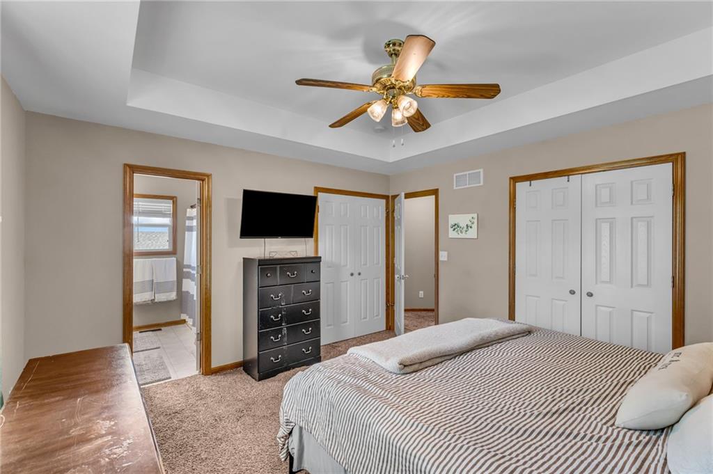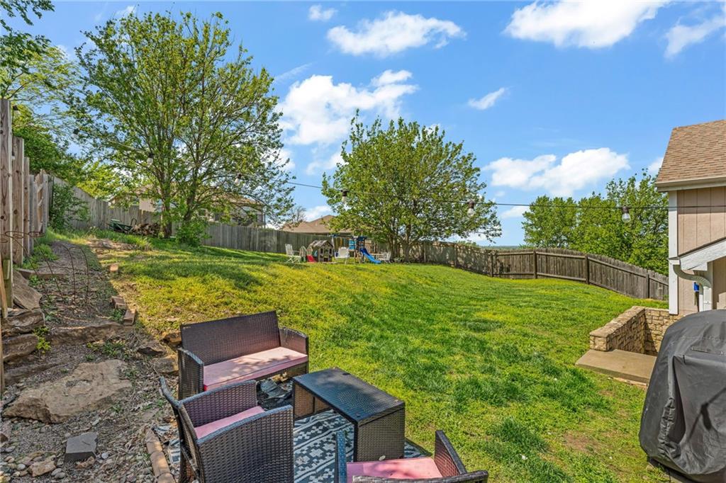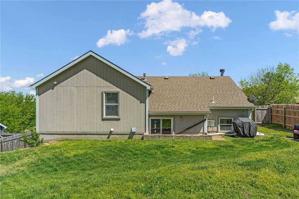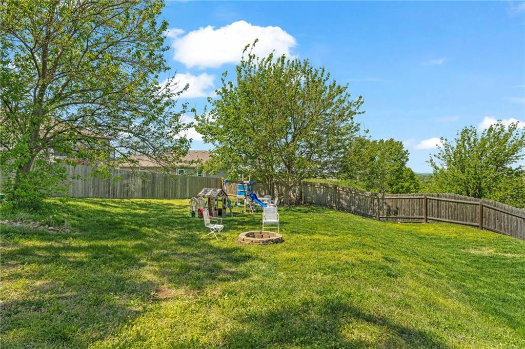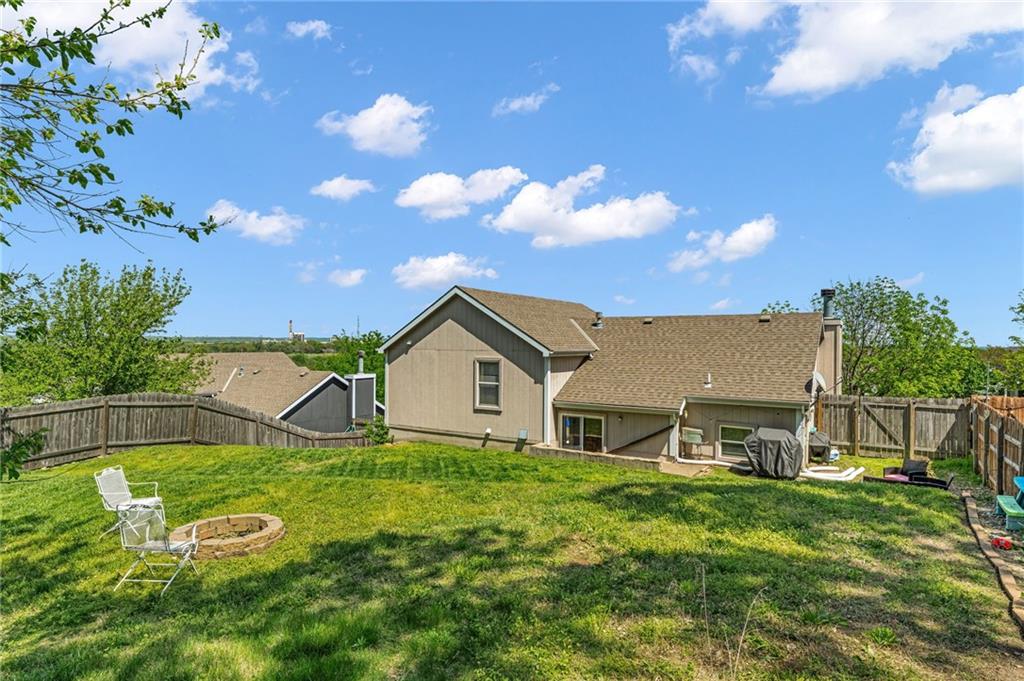 Welcome to this charming 4BR/3BA home in west Lawrence, an easy stroll from Stonegate Park. Comfortable and clean with new lighting fixtures throughout and some new paint, this practical layout features a kitchen (all appliances stay) open to a nice dining space and a lovely living room with vaulted ceilings and wood-burning fireplace to gather around. The primary bedroom has double closets and a great ensuite bathroom with double vanity, while a 4th bedroom in the basement would also make a perfect office, playroom or flex space. Lots of room to roam or relax around the firepit in the deep fenced backyard. Newer HVAC for years of peace of mind ahead. Deerfield/West/Free State schools. Lets go!