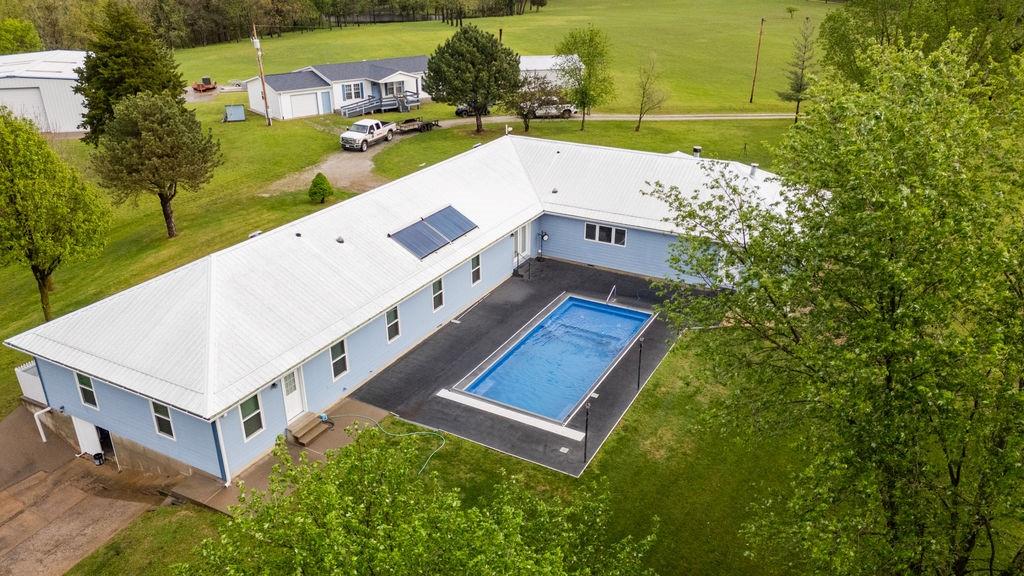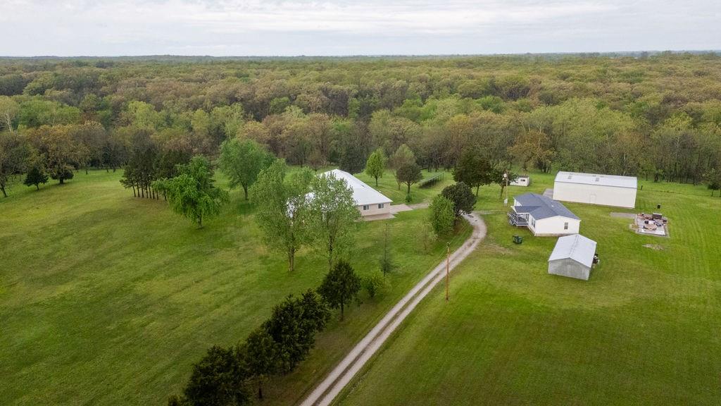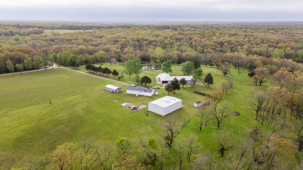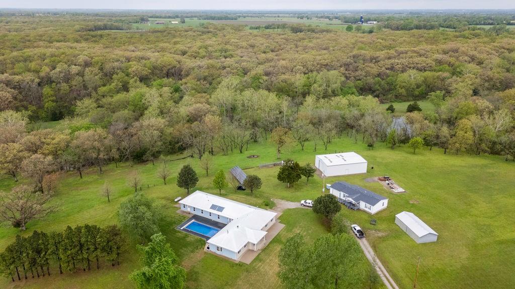 This premier 79 +/-acre estate in Saint Clair County, with multiple homes and outbuildings, is a family's dream come true. A luxurious 3,883 square foot 4 bed, 2.5 bath home is intentionally set on top of a hill overlooking a large pond out front and mature timber with a wet-weather creek behind the house for a stunning 360-degree view. Walking inside, you are greeted with a large family room, a fireplace, and a kitchen fit for a chef. A large 6-burner range is surrounded by custom granite countertops, and the large windows provide natural lighting along with a great view of the pool out back. The master bedroom is designed for a place of refuge and relaxation with large windows, a wood-burning stove, a jacuzzi tub, a walk-in shower, double sinks, and private access to the pool. A large family room on the other side of the kitchen provides a great space for entertaining, with access to the pool out back and an adjoining theatre room to continue the fun after a long day in the pool. Three large bedrooms can be found just down the hall, along with a large bathroom that has an oversize walk in shower with marble tile and countertop throughout. An attached 2-car garage gives access to vehicles regardless of the weather and storage space for the solar batteries powered by the 48-panel solar array outside. A partial walk-out basement provides extra space for storage, hobbies, and protection during storms. Next to the house is a spacious 40’x60’ shop with concrete floors, electricity, a 1/2 bath, and an indoor racquetball court. The second home is a cozy 2 bed, 2 bath manufactured home with an attached garage and is handicap accessible, making it ideal for all guests. The 20’x30’ shop next door provides ample space for lawn equipment, dirtbikes, ATVs, or extra work space for projects. The third house is a cottage-style 1 bed, 1.5 bath, just down the hill, and its location and privacy make it ideal for a short-term rental.