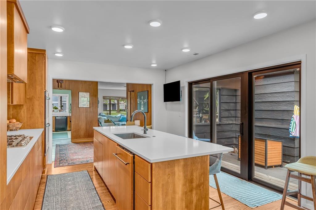 Set along one of Lawrence’s most storied corridors, 1506 University Drive is a study in what it means to live well — steps from the University of Kansas campus, yet removed enough from the ordinary to feel entirely your own. The home’s midcentury bones have been thoughtfully elevated: original wood-paneled rooms, clean geometric lines, and an effortless indoor-outdoor flow that feels both curated and lived-in. Inside, a fully renovated chef’s kitchen anchors the heart of the home — warm wood cabinetry to the ceiling, white quartz waterfall island, professional-grade appliances, and hardwood floors that glow underfoot. The reimagined primary suite is a private retreat: a generous bedroom paired with a spa-caliber bath featuring double vanity, walk-in shower, soaking tub, and a dedicated walk-in closet. Beyond the walls, a resort-style saltwater pool commands the rear garden — a crystalline centerpiece around which evenings unfold slowly. String lights, mature oaks, raised garden beds, and a fully fenced yard complete the picture. Whether you arrive for the football Saturdays or the daily ceremony of a morning walk to campus, this home understands exactly who you are.