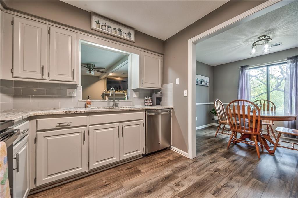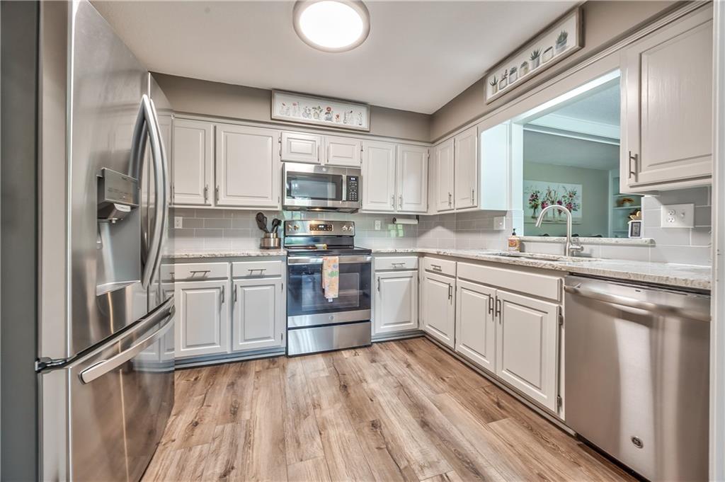 One level living** NO STAIRS** Over 1,000 sq ft. in this exceptional unit, newer SS appliances, WD included, Newer paint, popcorn ceiling removed! This seller had everything refreshed and renovated before moving in. High end Granite counter tops accent the fresh white cabinets and tile backsplash, with a convenient pass through to the family room. The LVP greets you at the entry, down the hall and completes the kitchen and dining area. Nothing to do, **Move in ready*** SEE IT TODAY, It may not last long. In addition to Lakeview complex amenities this is a great area with Library, city park and pool on Johnson Dr. HOA go to: www.mylakeviewhoa.org for info