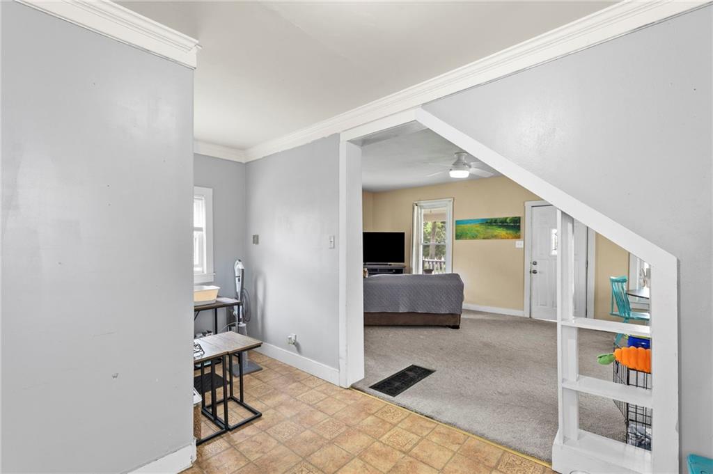 Nestled in a prime location just a short stroll from the charm of the historic Paola square, this adorable two-bedroom, two-bathroom home offers a perfect blend of modern convenience and classic appeal. The main level welcomes you with an expansive family room that flows effortlessly into an open concept kitchen and dining area with loads of cabinets and all appliances staying, creating an ideal layout for both daily living and effortless entertaining. Main level bathroom features a huge, tiled shower. Upstairs, you will find two generously sized bedrooms and a second full bathroom, providing a private and comfortable retreat. Car enthusiasts or those seeking extra storage will appreciate the wonderful, newer two-car attached garage that adds significant value to the property. The home's exterior has been meticulously maintained, featuring a comprehensive refresh in 2020 that included scraping and repainting the siding along with the installation of new gutters, newer windows 2022 and central heat and air. Beyond the walls, a lovely yard awaits, offering the perfect backdrop for summer barbecues and outdoor relaxation. This move-in-ready gem combines a fantastic layout with a sought-after neighborhood setting; don't miss your chance to own a piece of Paola history, as a home this well-cared-for truly won't last long on the market.
