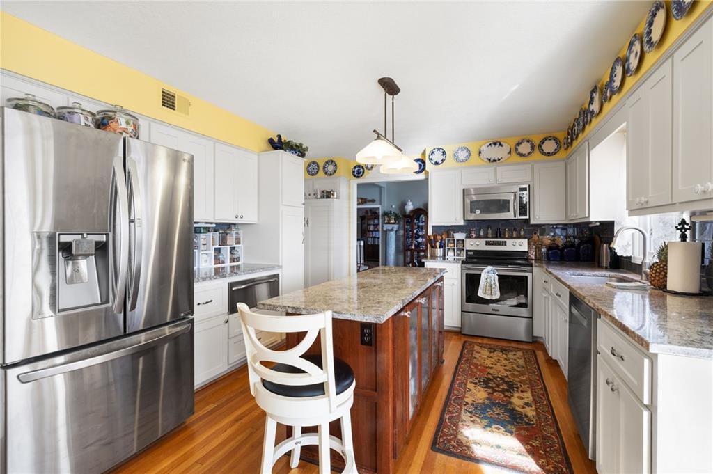 If you want a home that supports your lifestyle and has investment potential, this master-crafted Northland residence in Brookhill is the rare exception! This home offers nearly 4,300sqft of space, starting with a gourmet chef’s kitchen featuring granite countertops, a large island, stainless appliances, and a warming oven for perfect hosting. The main floor flow is natural and unhurried, with high ceilings and a sun-drenched living room anchored by a classic fireplace and custom stained-glass accents. A dedicated office on this level provides the perfect retreat. Upstairs, you will find four large bedrooms, including an oversized primary suite with an expansive walk-in closet, a private skylight, and a heated tile bathroom floor. Another hard to find feature is the fully finished walkout basement that offers an impressive self-contained living suite. This is a complete second home with its own full kitchen, full bath, serving bar, and a large fifth bedroom. Whether for multi-generational living or potential rental income to offset your mortgage, this suite provides a massive financial advantage as a short-term rental, especially with the World Cup coming to Kansas City this summer. All fixtures, including the tankless water heater, are premium American Standard quality. Outside, you enter a private sanctuary that feels like your own park. This fully fenced English-garden retreat includes arbors, wrought iron, and three separate Trex decks. Situated just 25 minutes from both downtown Kansas City and the airport, this home is a true green-energy standout with owned solar panels and no remaining payments. While neighbors worry about utility rates, you will enjoy remarkably low overhead. From the quiet gardens to the HOA pool, every detail has been maintained with an obsession for quality. This is a rare property with immense space, beauty, and financial upside. Click "Contact Johnnie" today for more details and to schedule your private tour!