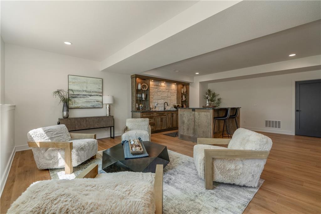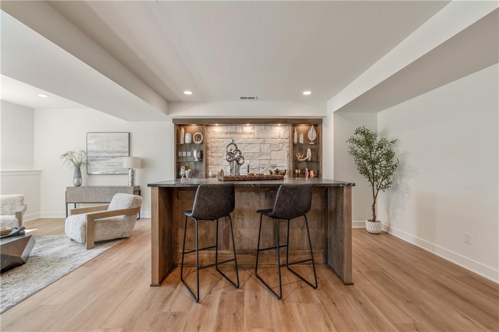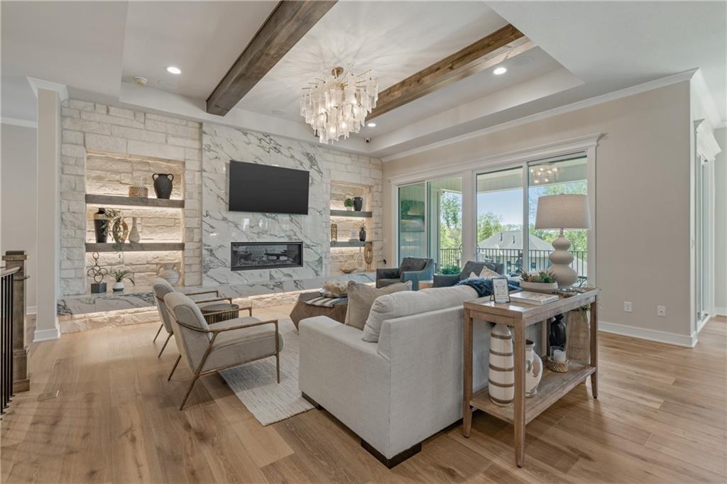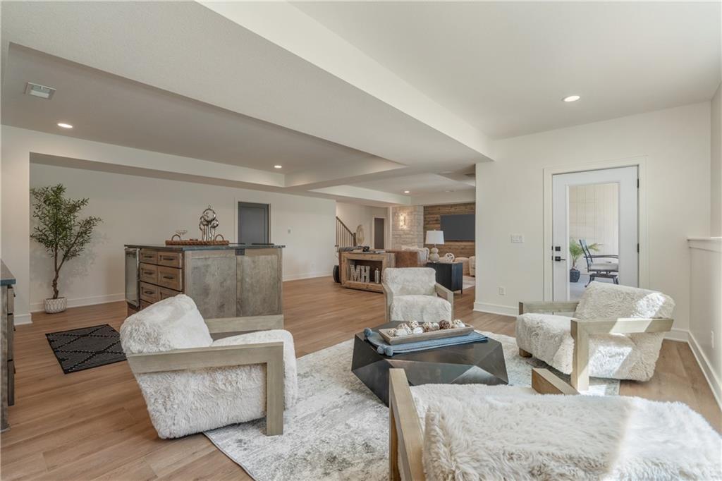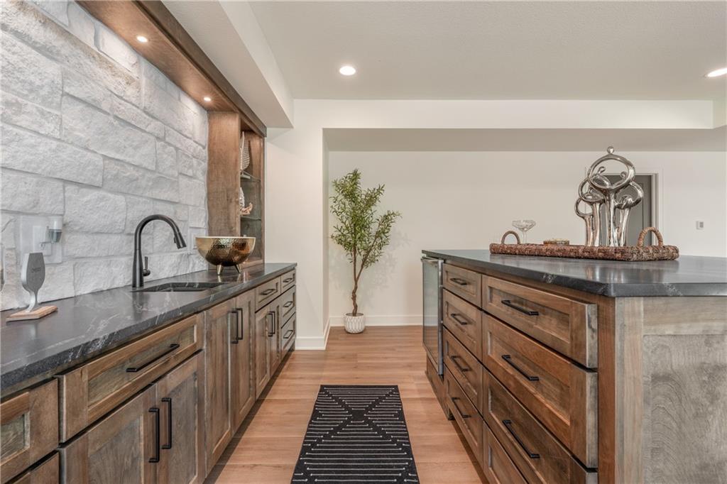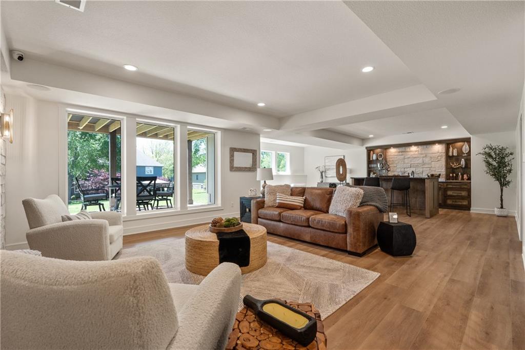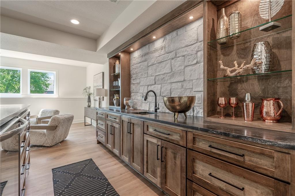 Introducing the Santa Rosa by McGraw Homes, a beautifully designed reverse 1.5-story located in the highly sought-after Park Ridge Mano, Lee’s Summit’s premier maintenance-provided community. Known for exceptional craftsmanship and thoughtful design, McGraw Homes delivers another standout with this 4-bedroom, 3-bath home offering 3,819 square feet of finished living space. The main level features an open-concept layout with two bedrooms, including a spacious primary suite, and showcases a stunning kitchen complete with a beverage center, oversized walk-in pantry with custom pullouts, and a convenient butler’s pantry, perfect for both everyday living and entertaining. The living room is a true focal point, highlighted by a gorgeous tile fireplace, indirect lighting, and oversized sliding glass doors that lead to a covered deck, creating a seamless indoor-outdoor experience. The finished walkout lower level offers incredible additional living space with two more bedrooms, a large rec room, and an impressive stylish bar area ideal for hosting guests or relaxing at home. Enjoy the ease of maintenance-provided living with lawn care, snow removal, and trash service included, along with access to neighborhood amenities such as pools, fitness center, clubhouse, and more.