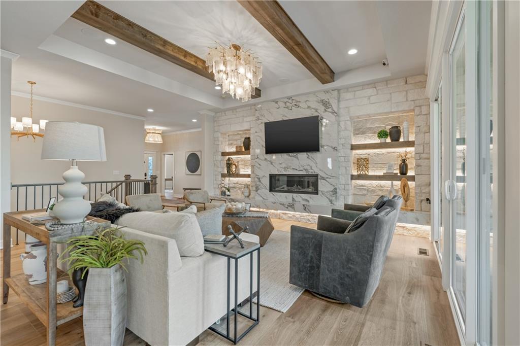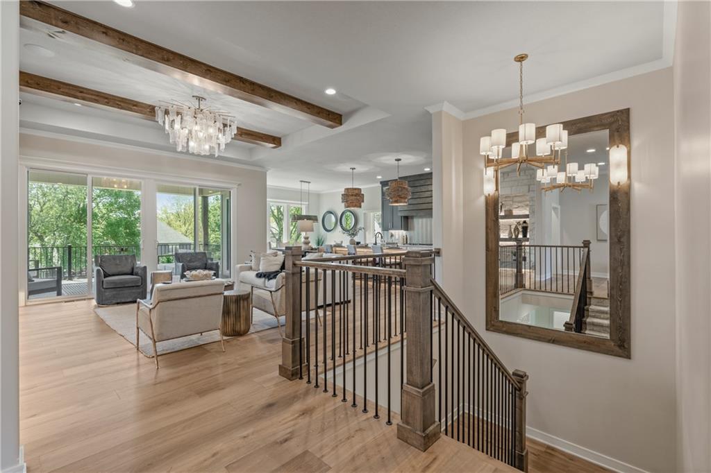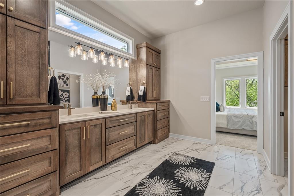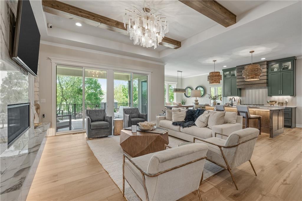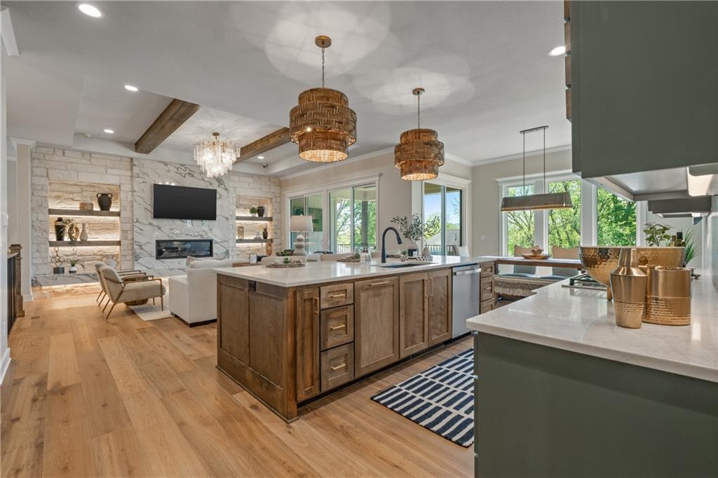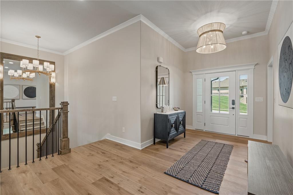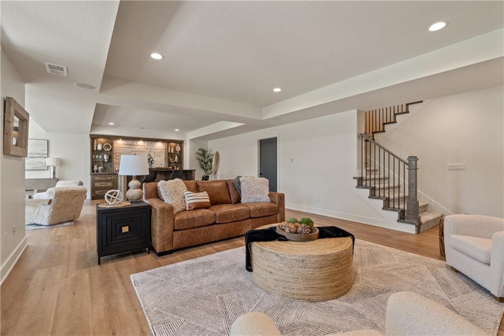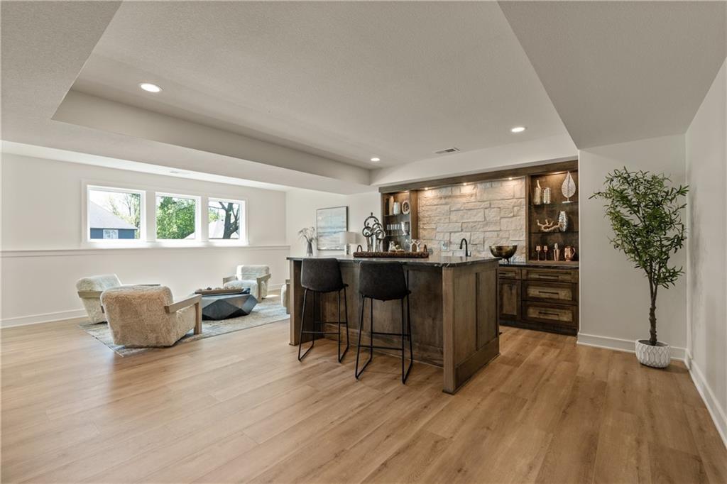 Introducing the Santa Rosa by McGraw Homes, a beautifully designed reverse 1.5-story located in the highly sought-after Park Ridge Mano, Lee’s Summit’s premier maintenance-provided community. Known for exceptional craftsmanship and thoughtful design, McGraw Homes delivers another standout with this 4-bedroom, 3-bath home offering 3,819 square feet of finished living space. The main level features an open-concept layout with two bedrooms, including a spacious primary suite, and showcases a stunning kitchen complete with a beverage center, oversized walk-in pantry with custom pullouts, and a convenient butler’s pantry, perfect for both everyday living and entertaining. The living room is a true focal point, highlighted by a gorgeous tile fireplace, indirect lighting, and oversized sliding glass doors that lead to a covered deck, creating a seamless indoor-outdoor experience. The finished walkout lower level offers incredible additional living space with two more bedrooms, a large rec room, and an impressive stylish bar area ideal for hosting guests or relaxing at home. Enjoy the ease of maintenance-provided living with lawn care, snow removal, and trash service included, along with access to neighborhood amenities such as pools, fitness center, clubhouse, and more.