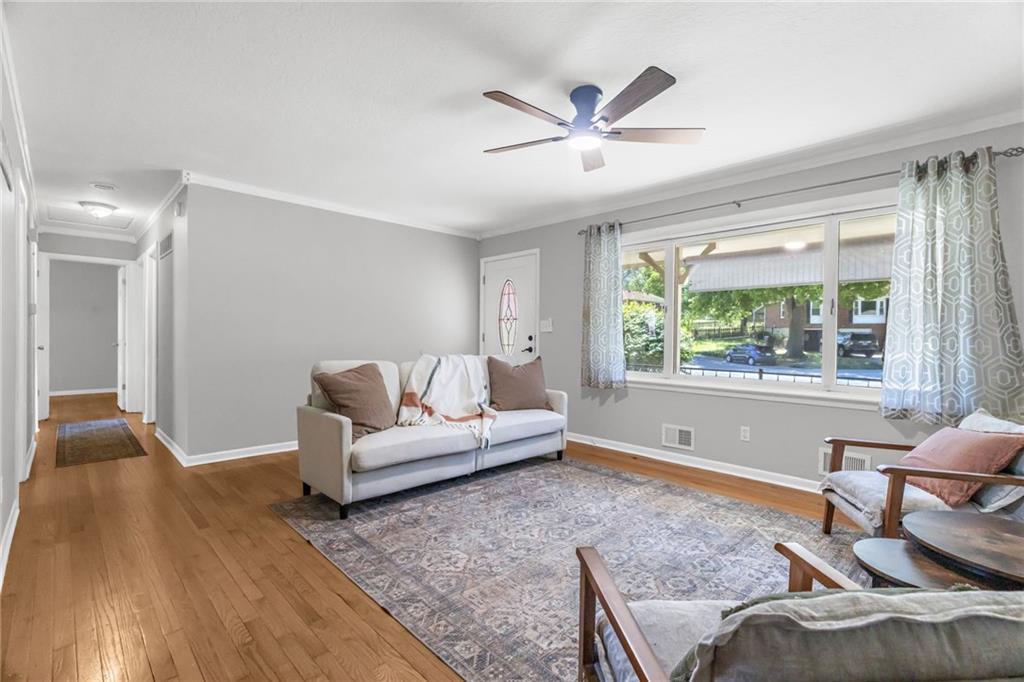 Charming all-brick ranch nestled on a spacious corner lot! This well-maintained 3-bedroom home offers comfortable main-level living with a functional layout and timeless appeal. Step inside to find beautiful hardwood floors, a light-filled living room, and a cozy family room featuring a fireplace—perfect for relaxing or entertaining. The eat-in kitchen provides ample space for everyday dining, while the sunroom offers a great bonus area to enjoy morning coffee or unwind year-round. All bedrooms are conveniently located on the main level for easy living. Additional highlights include a full basement with interior access, ideal for storage or future finishing, plus a 1-car attached garage. Outside, enjoy the fully fenced yard, covered front porch, and established landscaping with garden space and mature fruit plantings. Situated in a desirable neighborhood with easy access to shopping, dining, and schools, this move-in ready home is a fantastic opportunity you won’t want to miss!